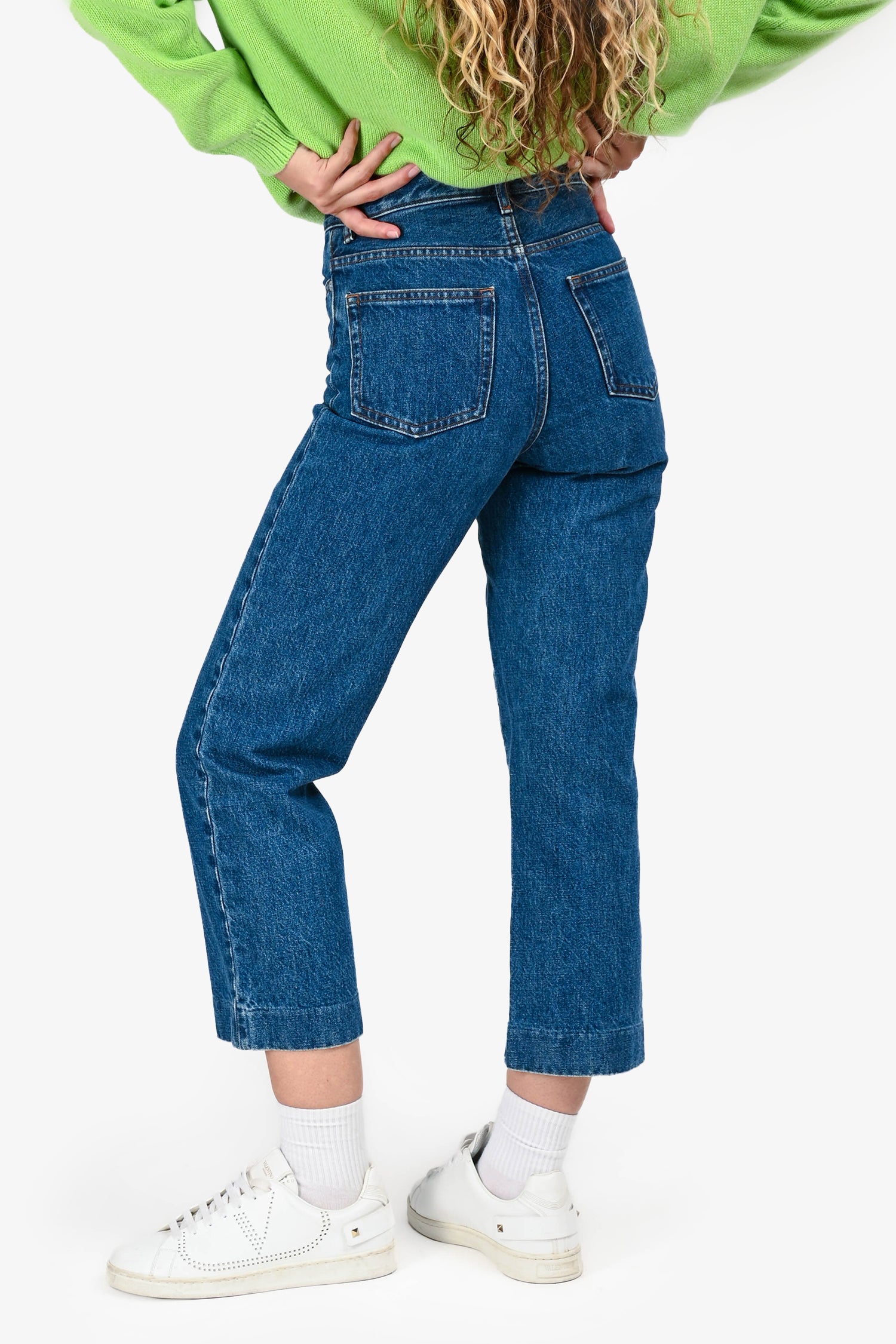 Refresh availabilityA.P.C. Blue Crop Jeans. Classic five-pocket styling. Zip fly with button closure. Belt loops. Contrast stitching.