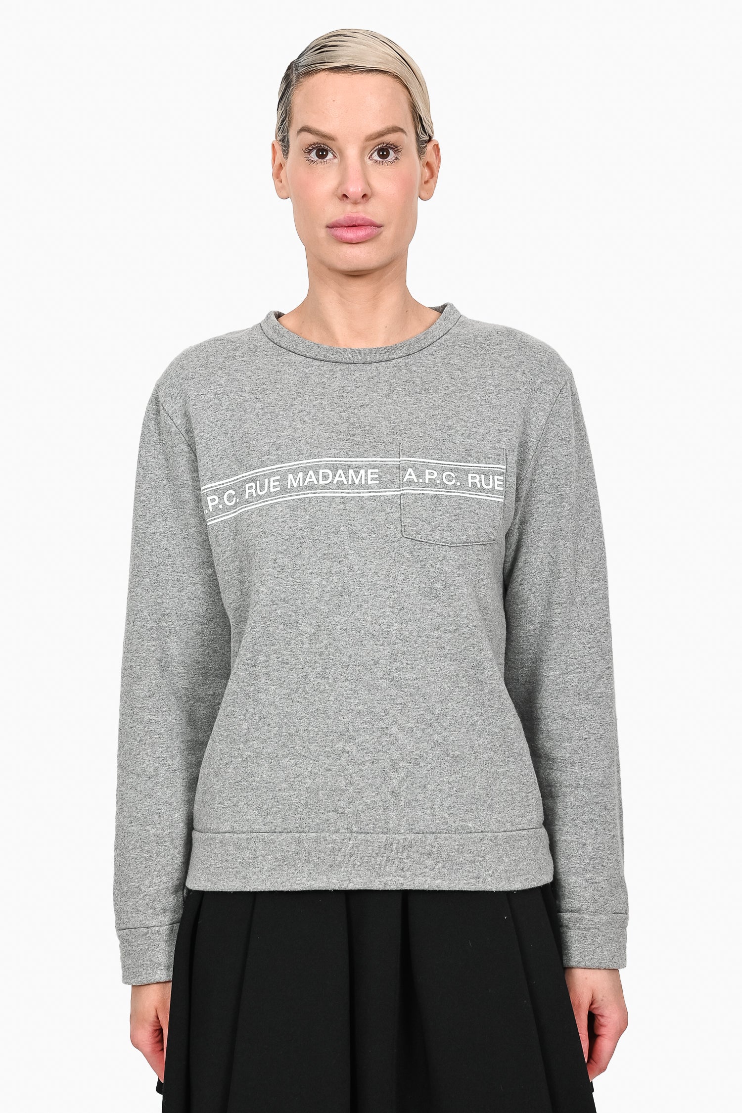 A.P.C. Grey Cotton 'Rue Madame' Crewneck Sweater Size S