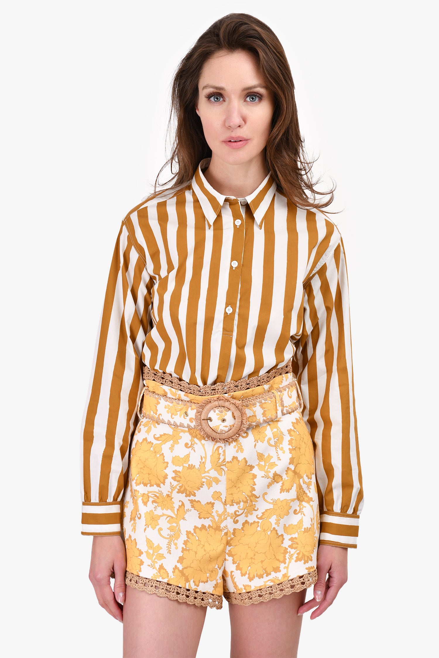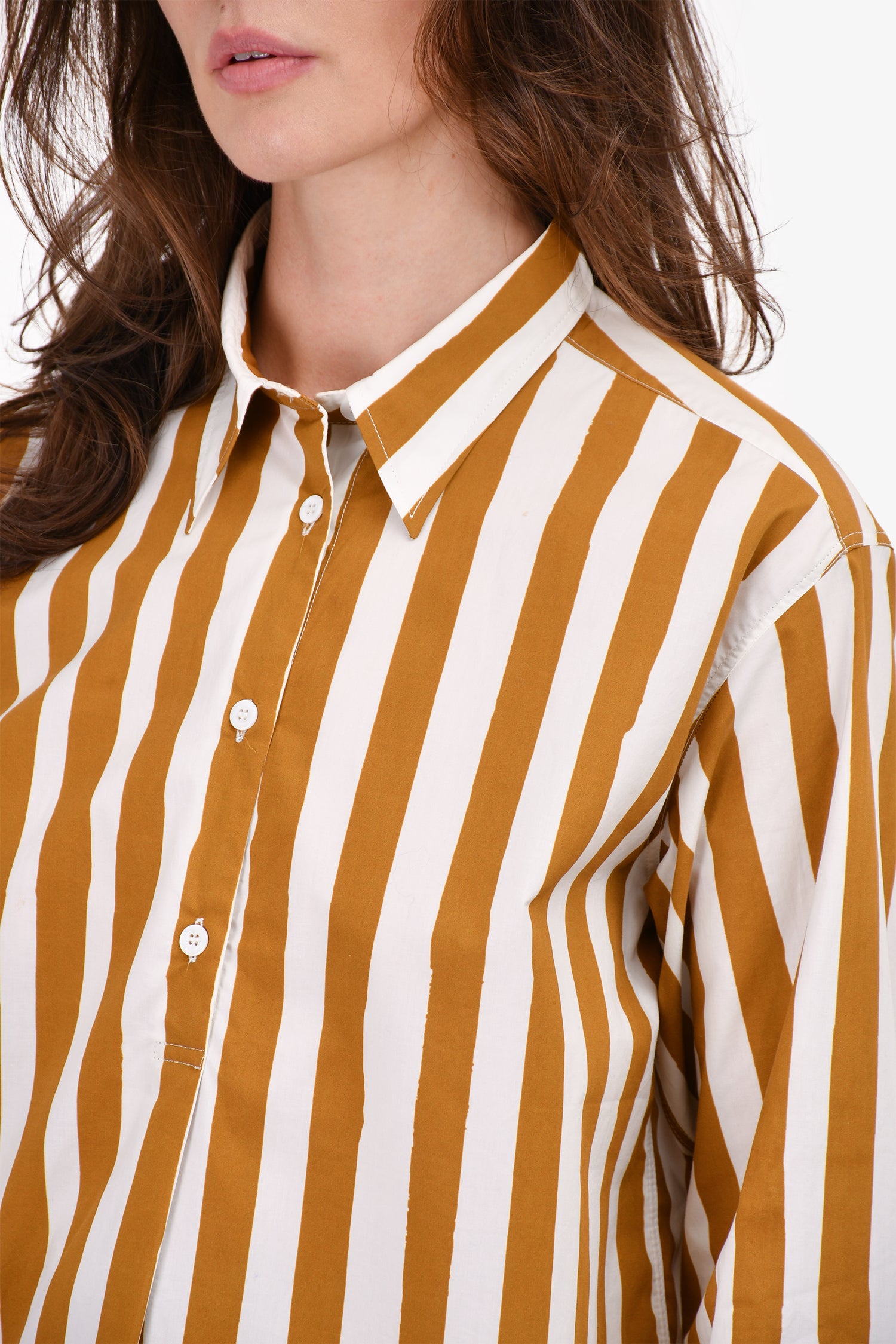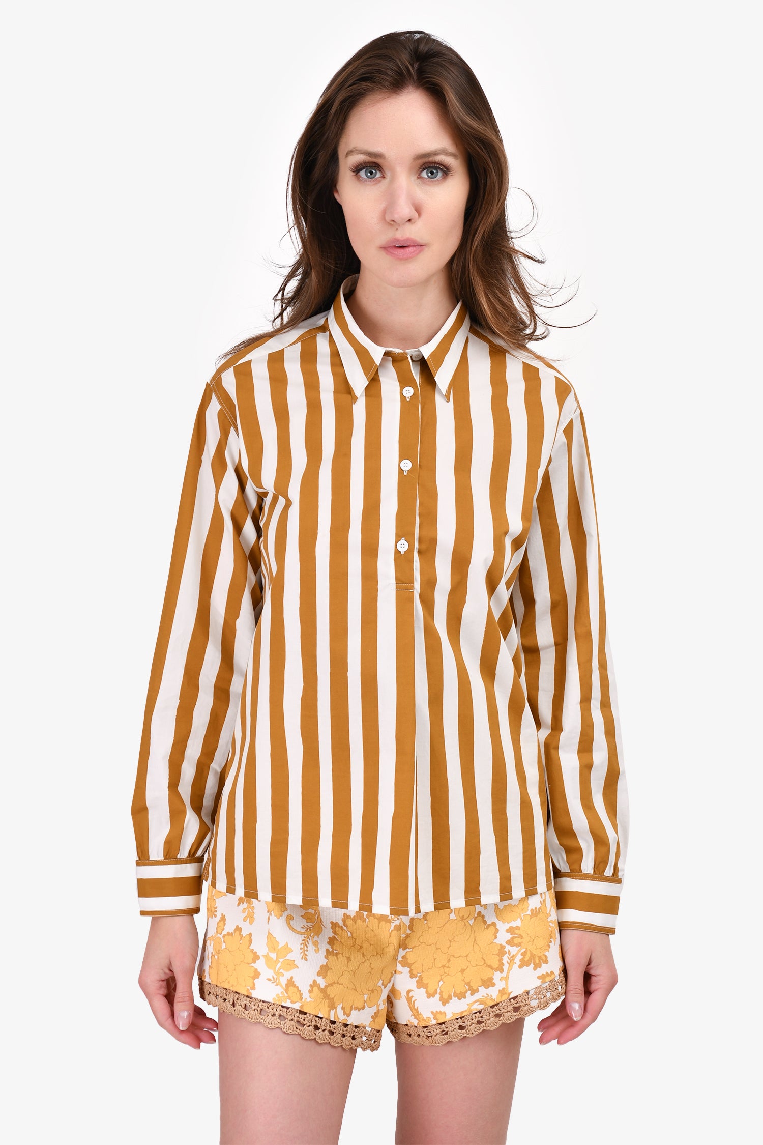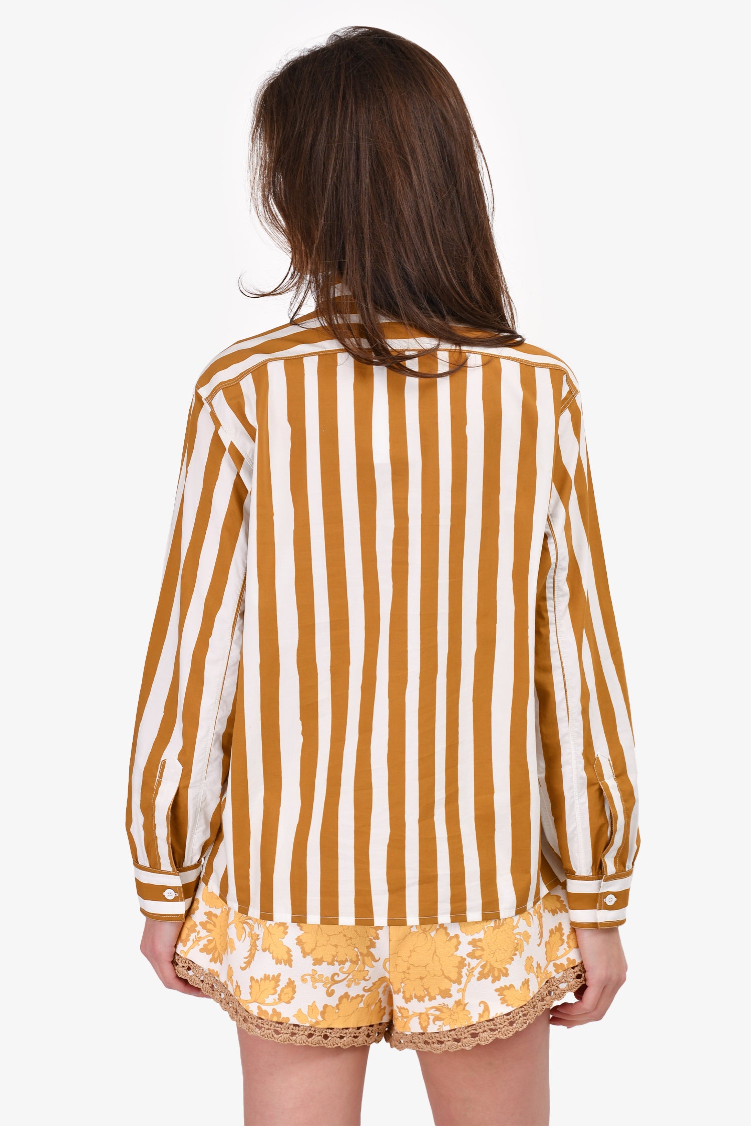 Refresh availabilityA.P.C. White/Brown Stripe Button Down Collared Shirt. Button closure on the cuffs.