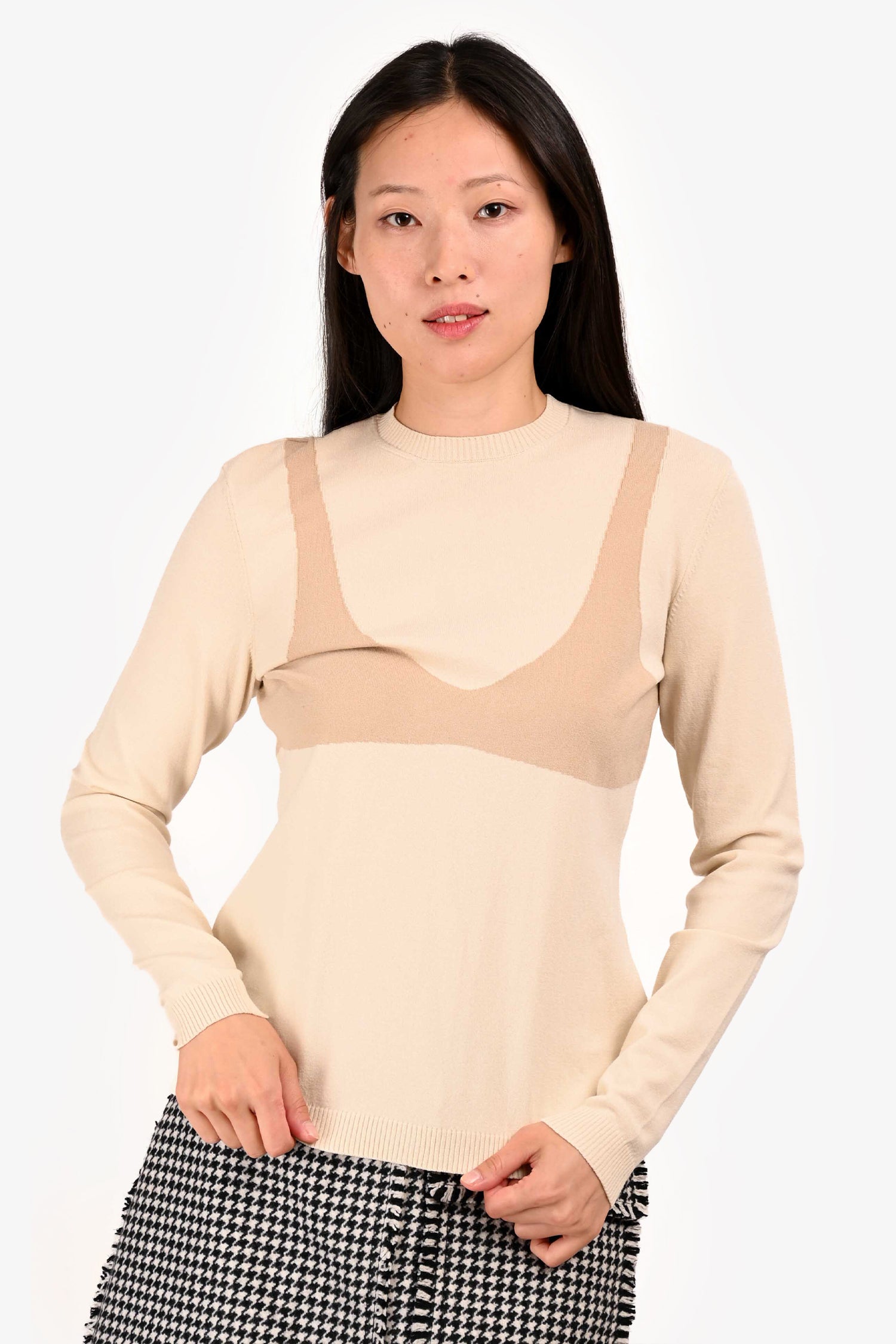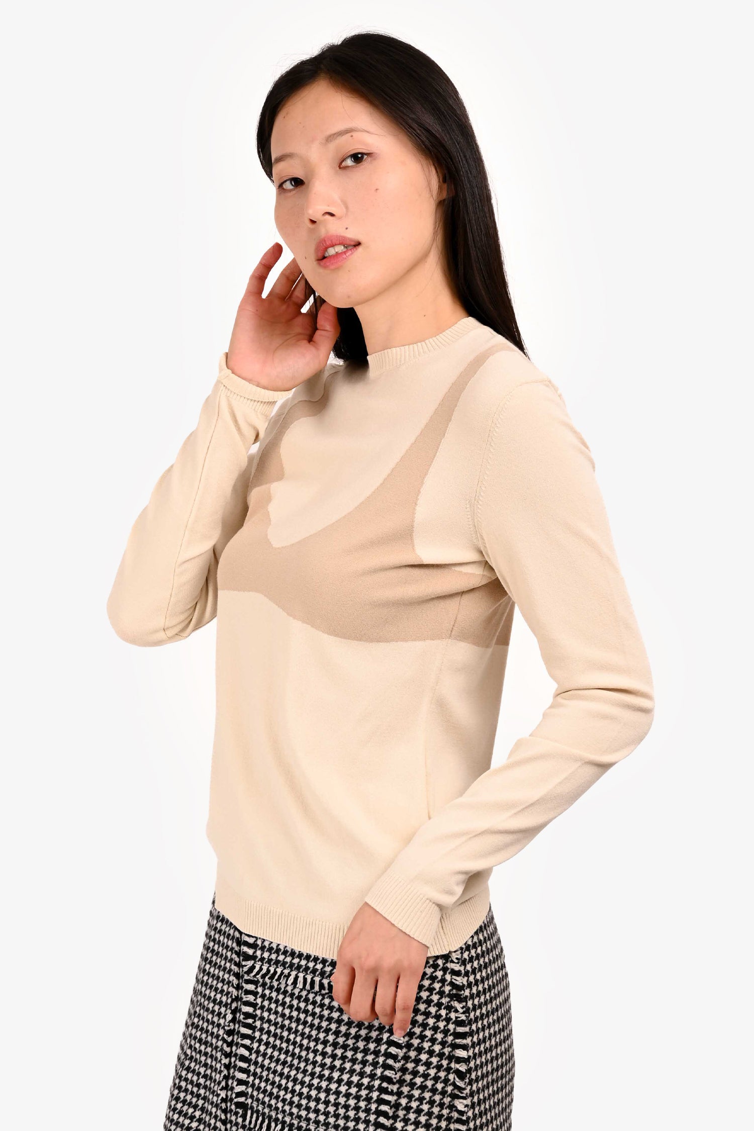Refresh availabilityA.W.A.K.E Mode Beige Sweater. Round neck. Pull-on. Ribbed neck, cuffs and hem. Tonal stitching.