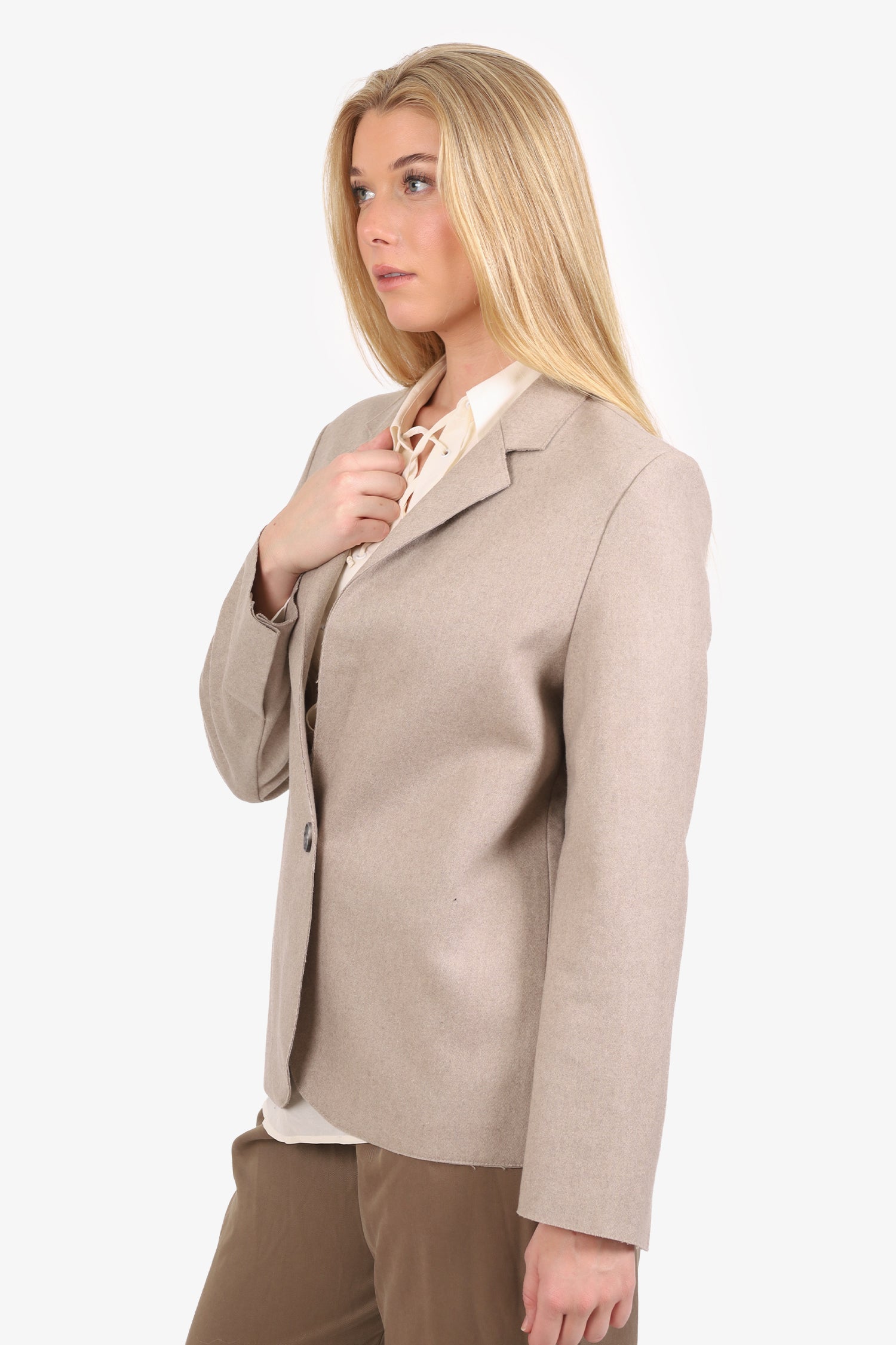 Acne Beige Wool/Cashmere Single Breasted Raw Edge Blazer Size 36