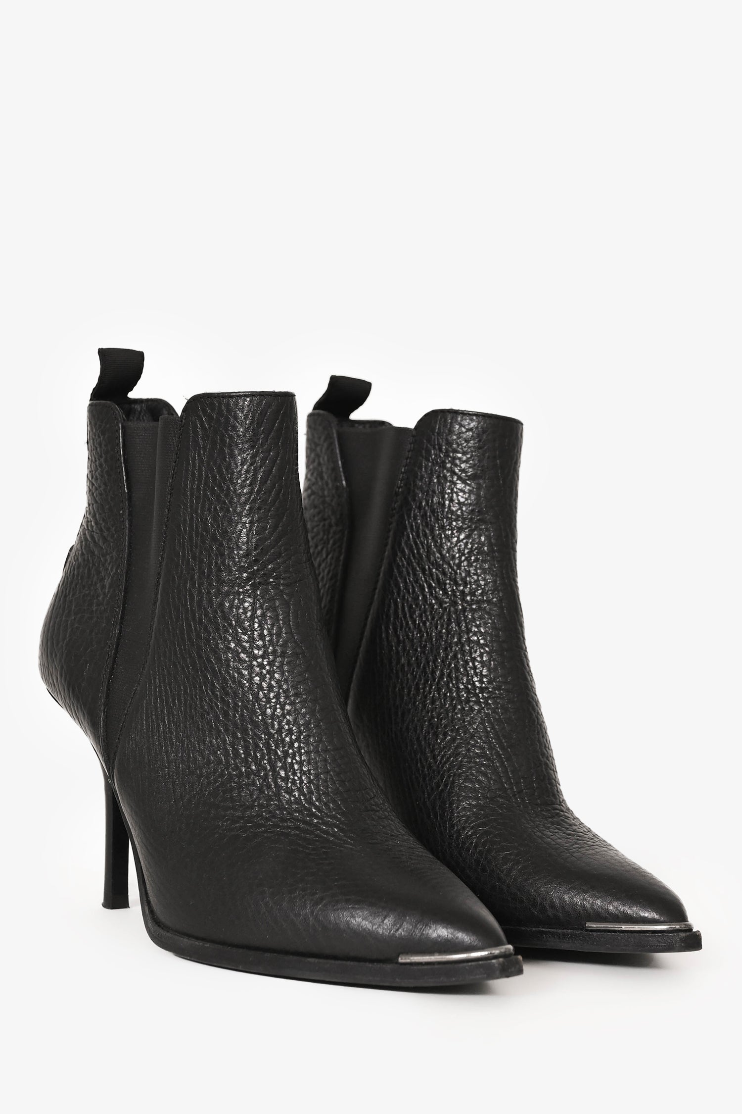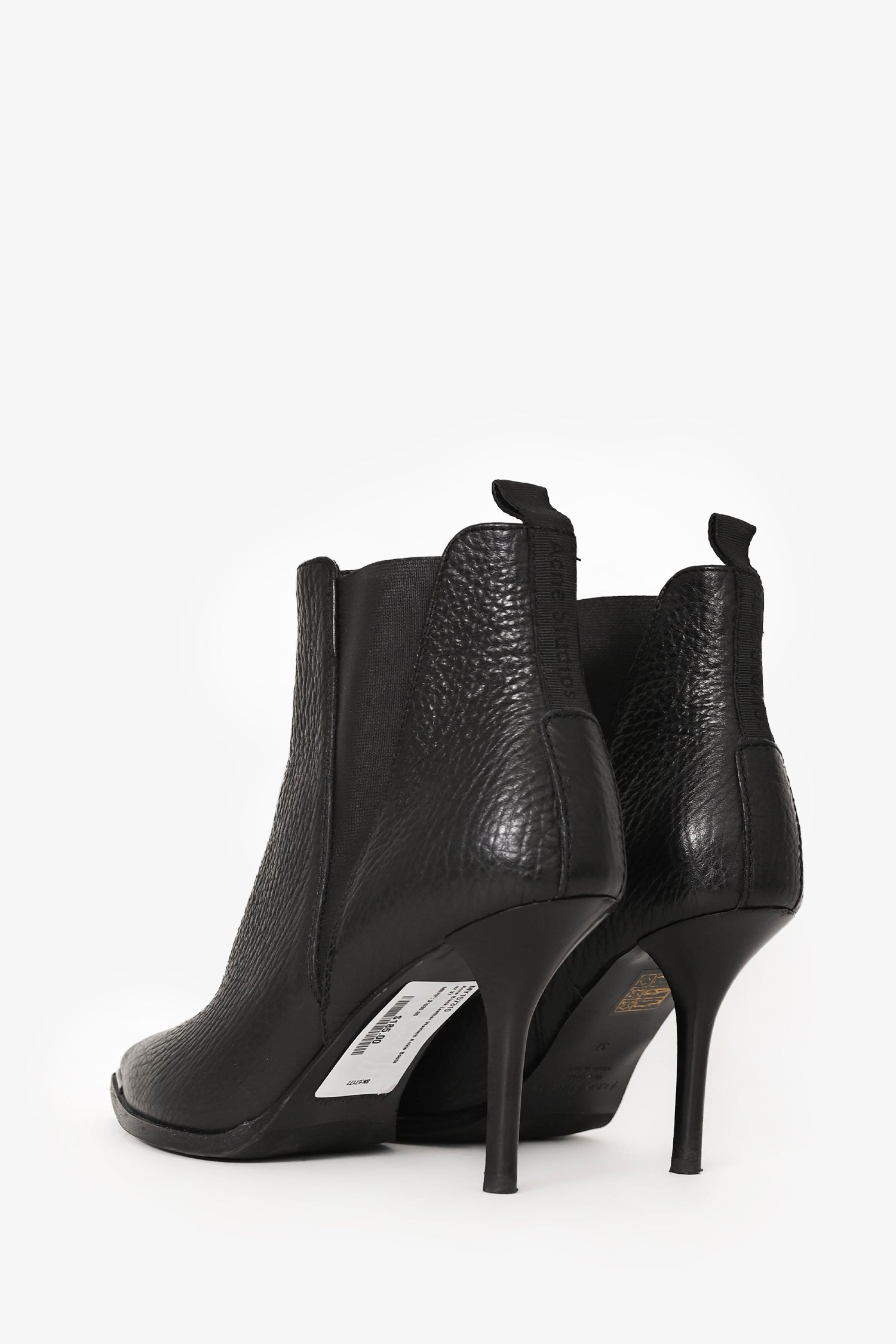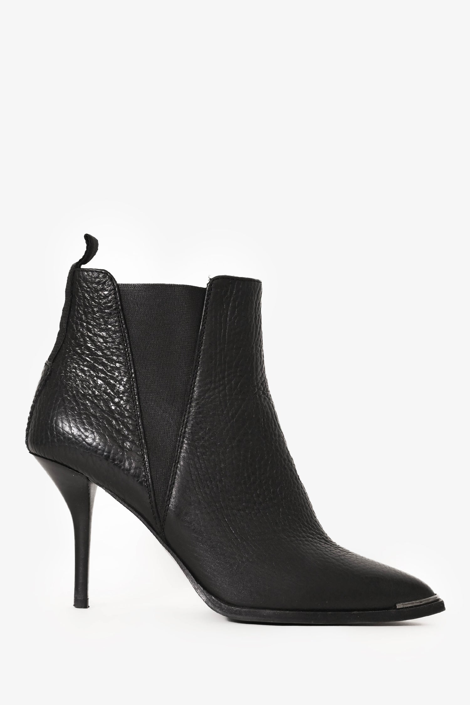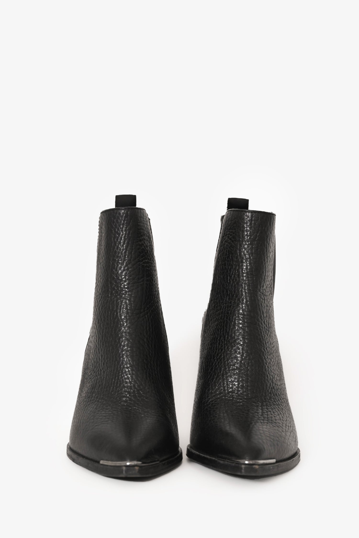 Refresh availabilityAcne Black Leather Western Ankle Boots. Pull-on. Pointed toe. Elasticized trims on the sides. Tonal stitching.