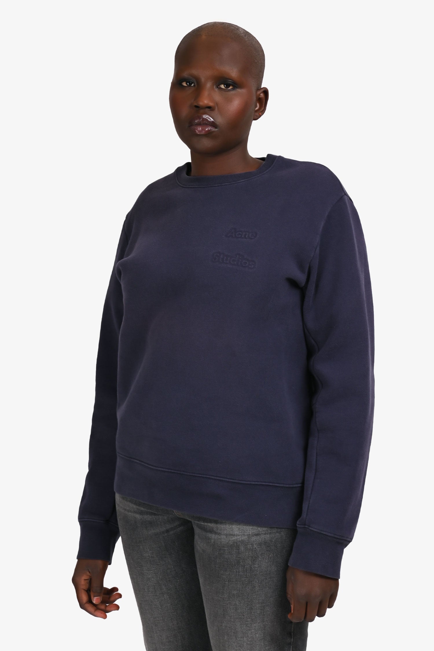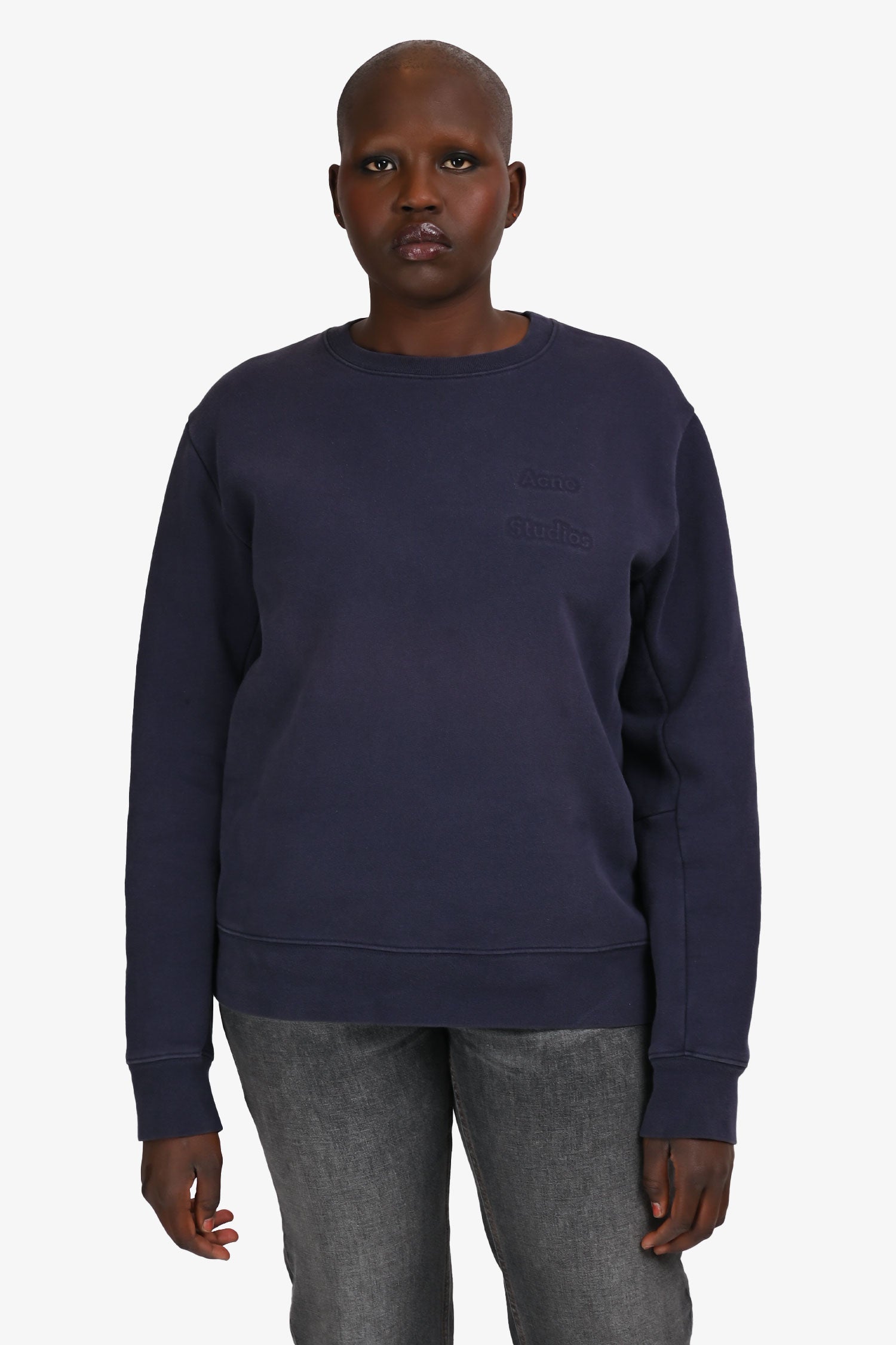 Refresh availabilityAcne Studio Navy Logo Sweater. Pull on. Crewneck. Tonal stitching.