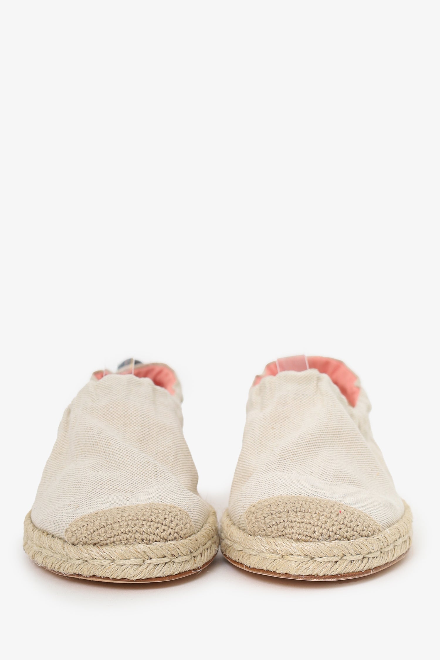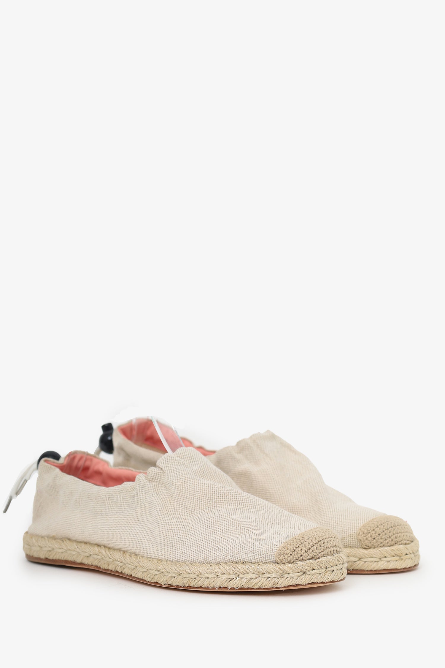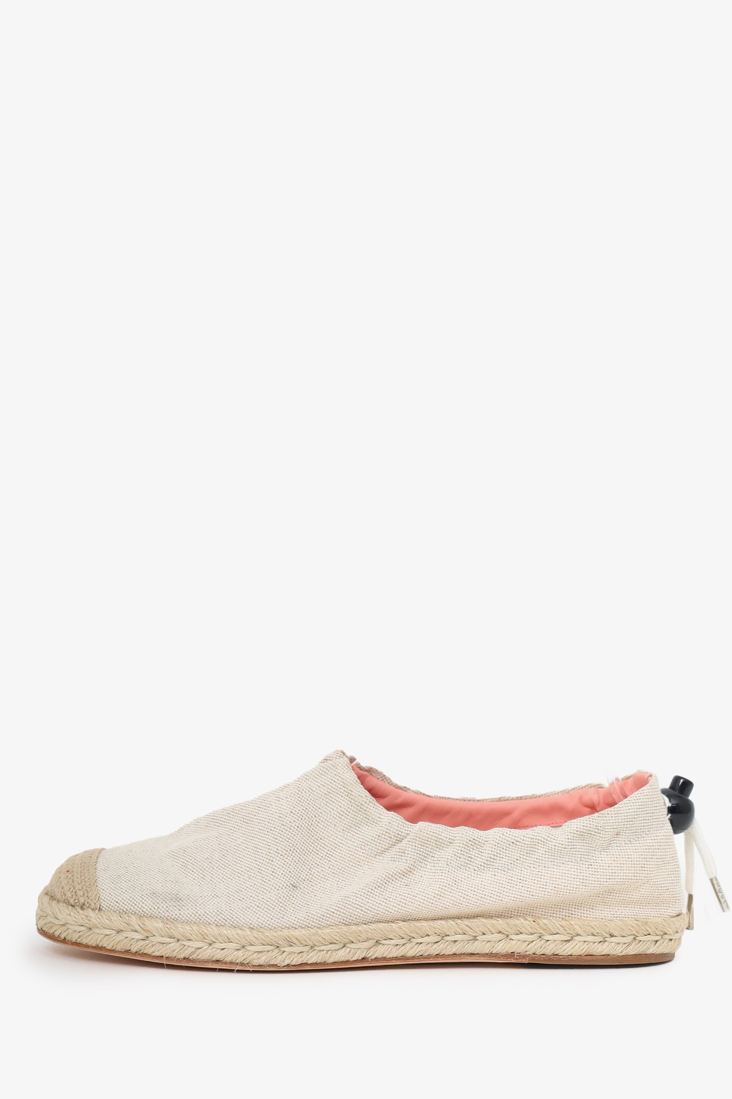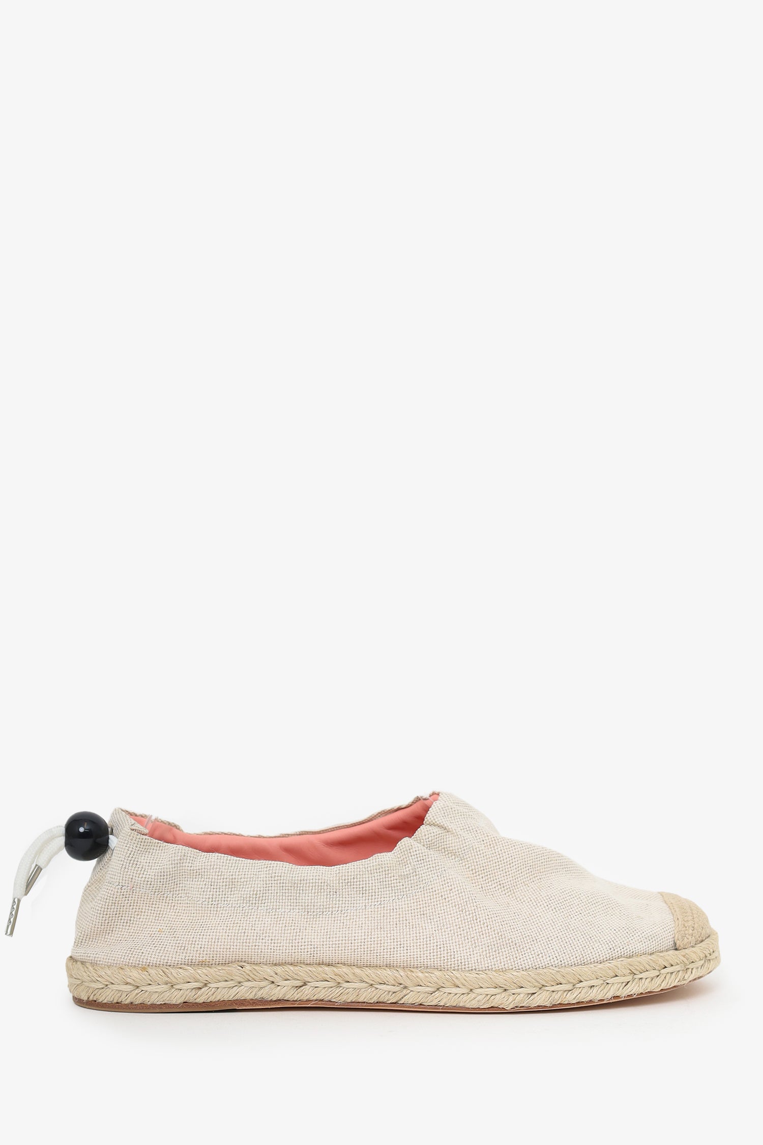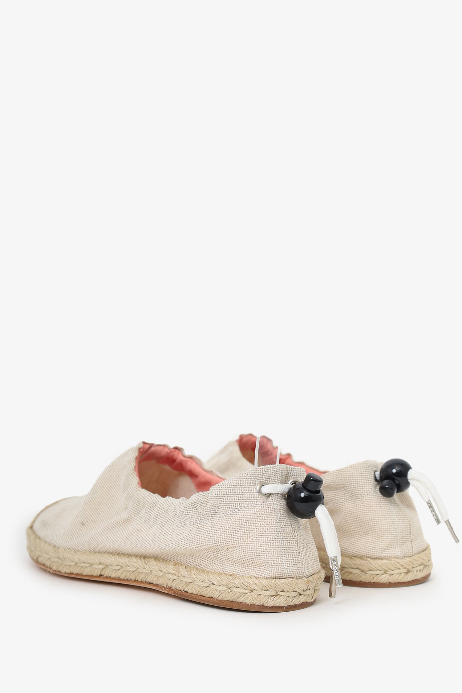 Refresh availabilityAcne Studios Beige Canvas Drawstring Flats. Slip on with rear drawstring closure. Round toe. Espadrille detailing. Tonal Stitching. Silver-tone hardware.