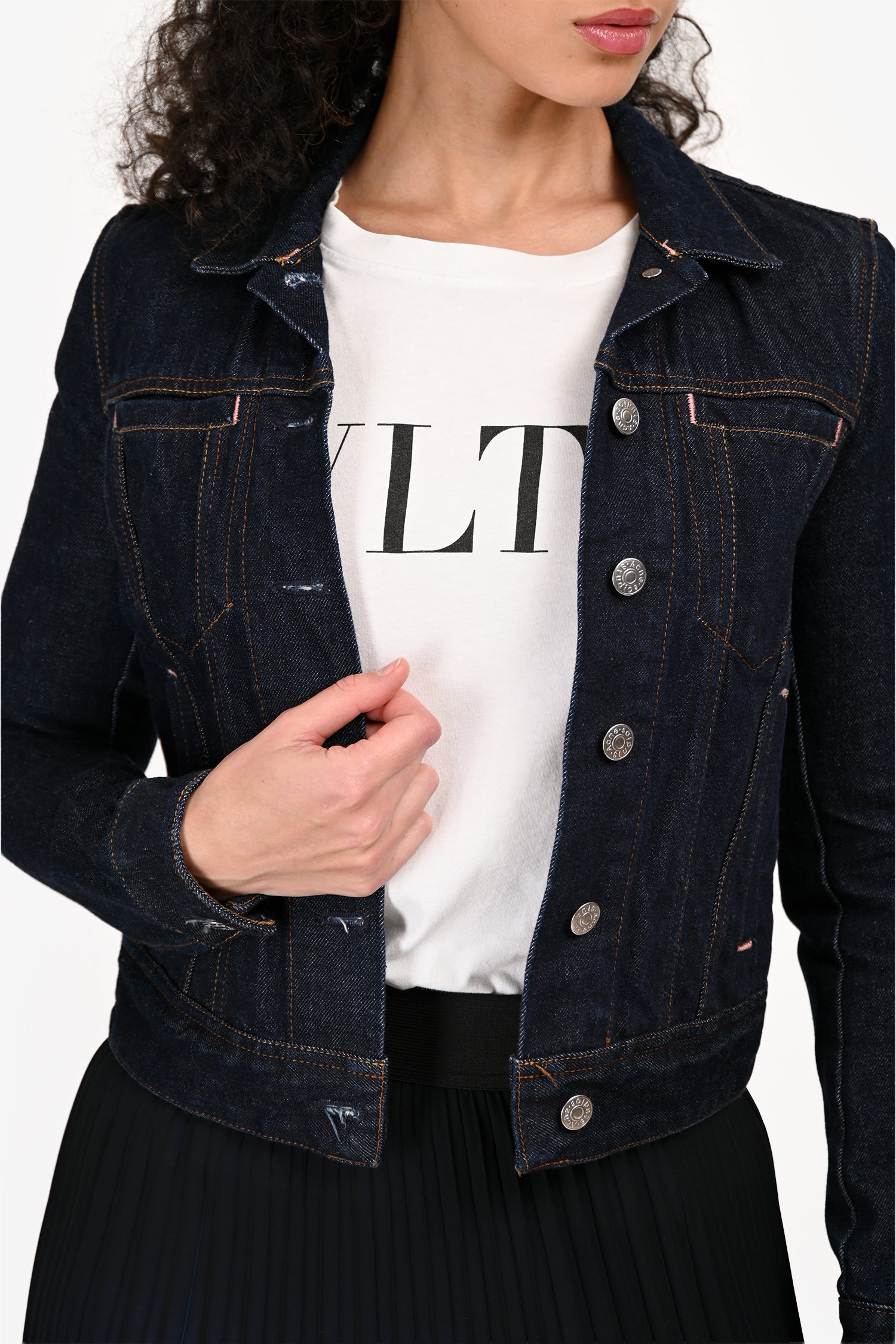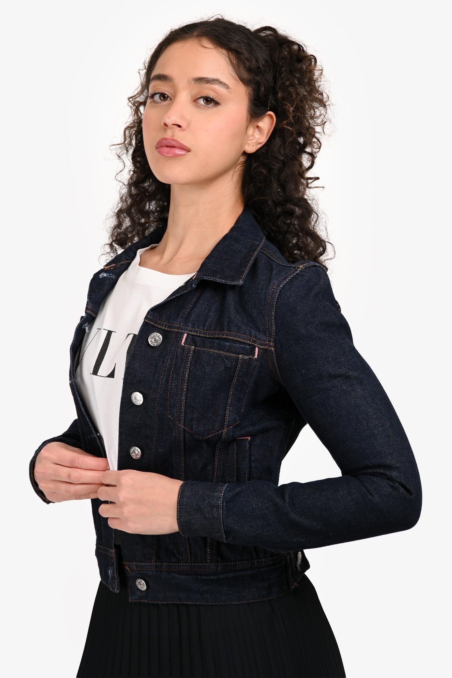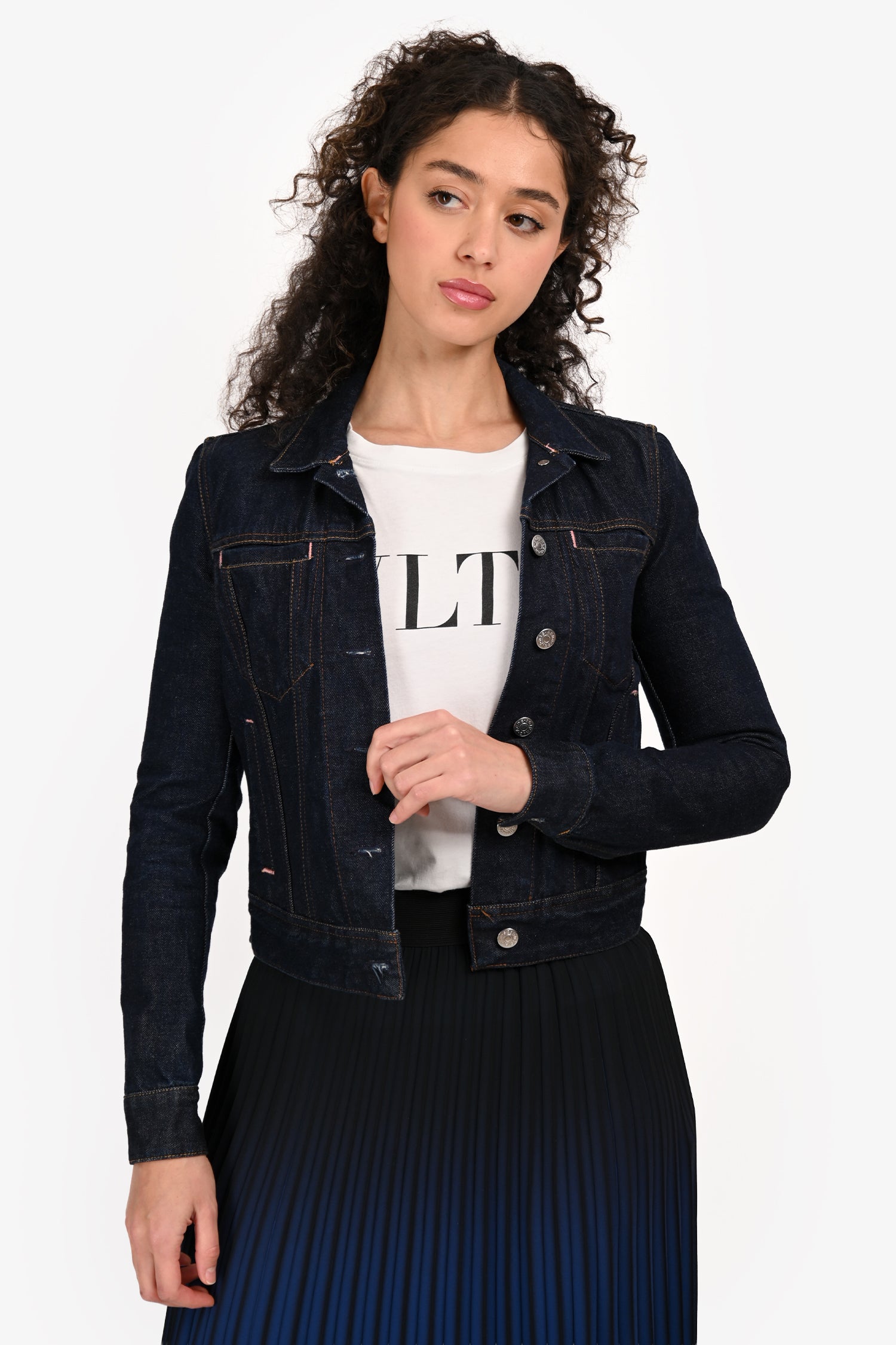 Refresh availabilityAcne Studios Bla Konst Dark Blue Denim Jacket. Pull-on. Pointed collar. Button closure in the front. 4 exterior slip pockets. Silver-tone hardware. Contrast stitching.