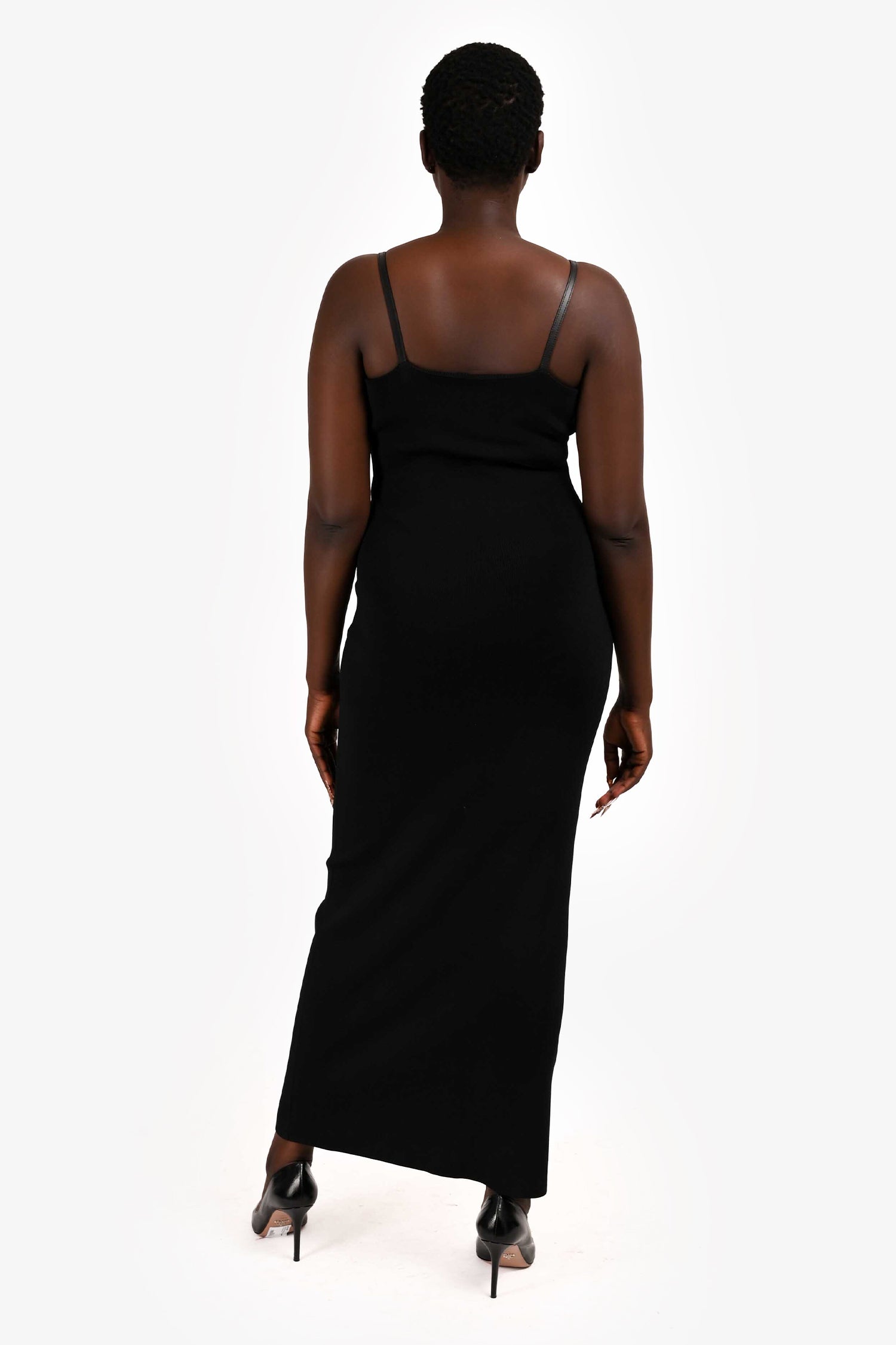Acne Studios Black Ribbed Silver Logo Leather Strap Maxi Dress Size L