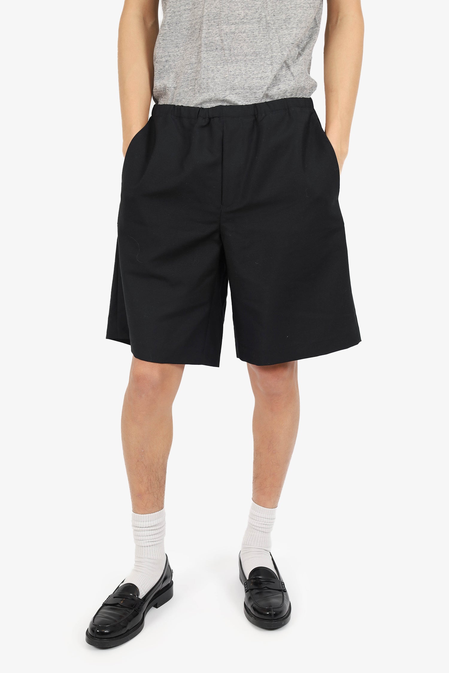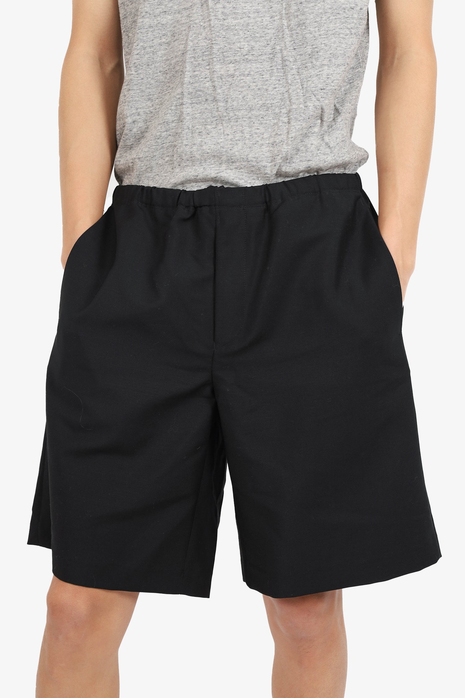 Refresh availabilityAcne Studios Black Wool Shorts. Pull-on. Interior waist drawstring. Front zip closure. 2 front slip pockets. 2 rear pockets: 1 faux and 1 button-up closure. Tonal stitching. Unlined.
