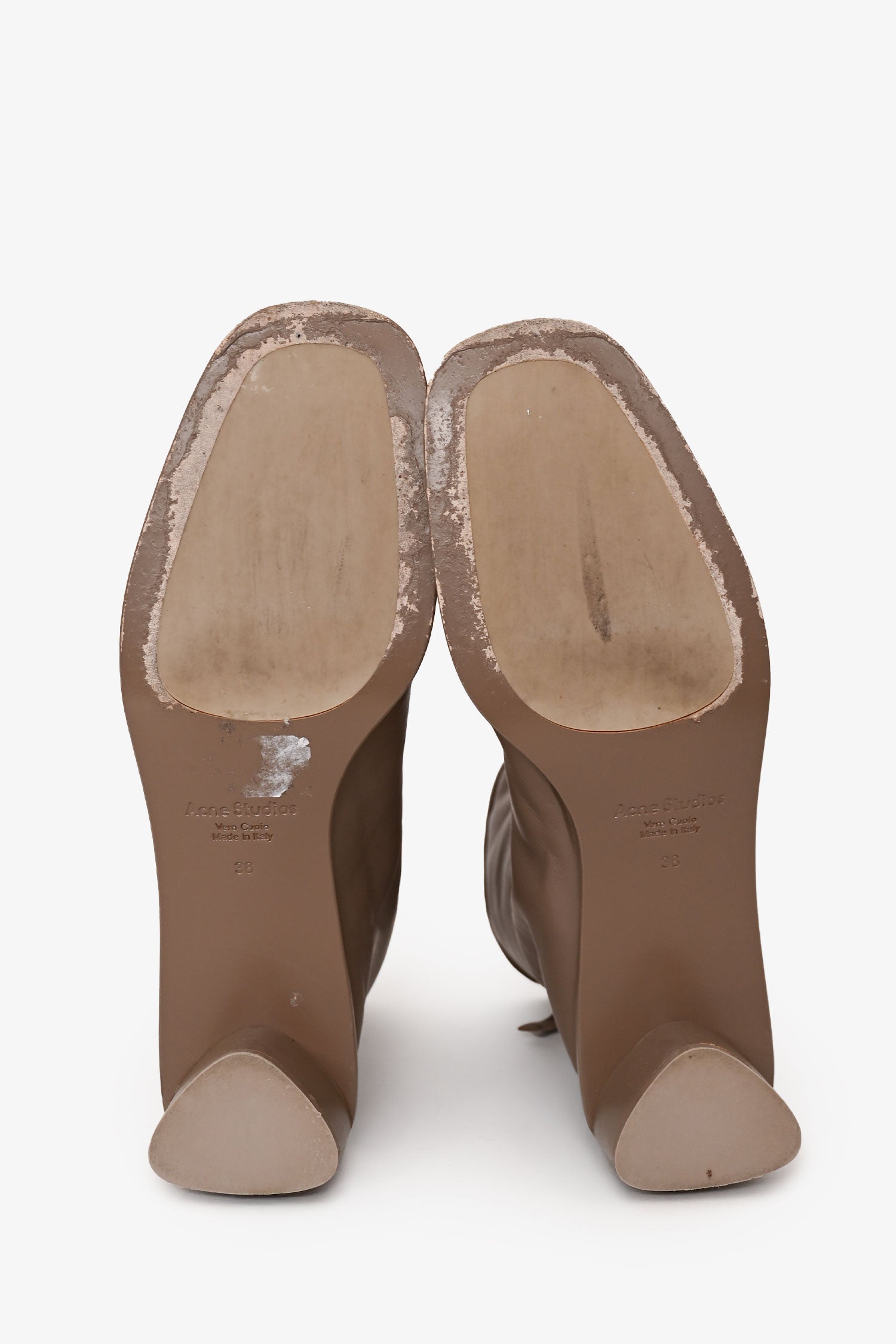 Acne Studios Taupe Logo Leather Square Toe Ankle Boots Size 38
