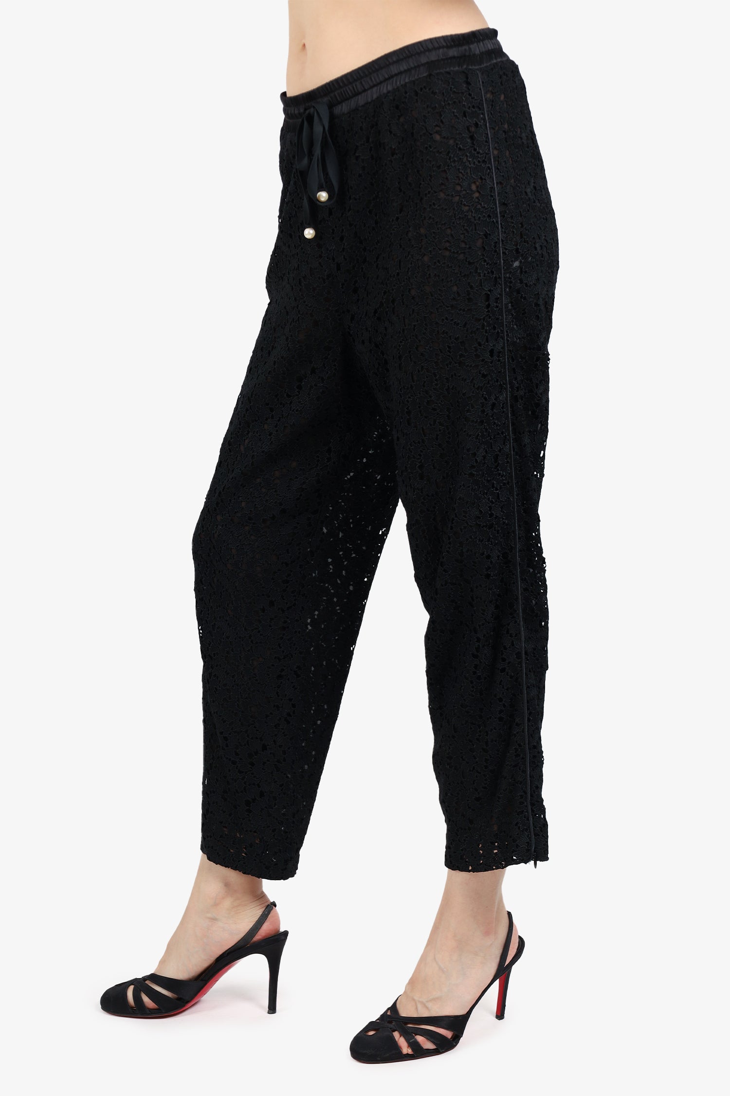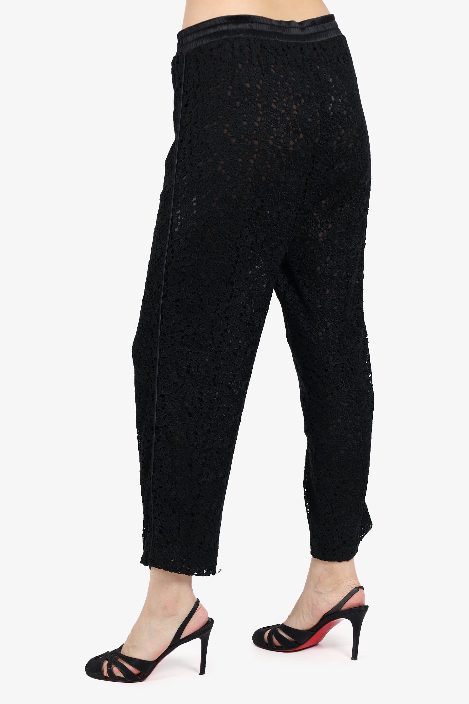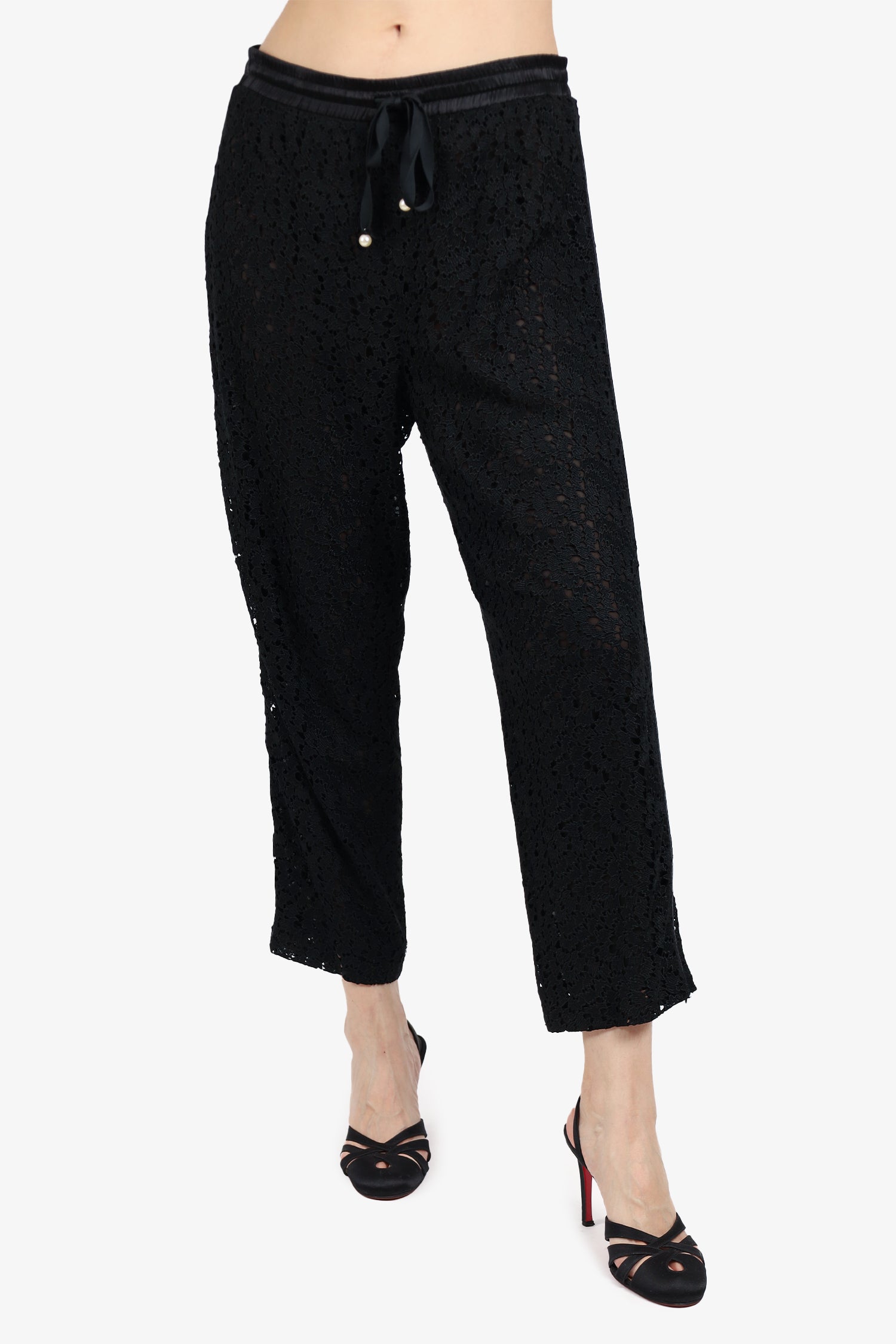 Refresh availabilityAdam Lippes Black Lace Pants. Front tie closure. Elasticated waist band. Lined. Tonal stitching.