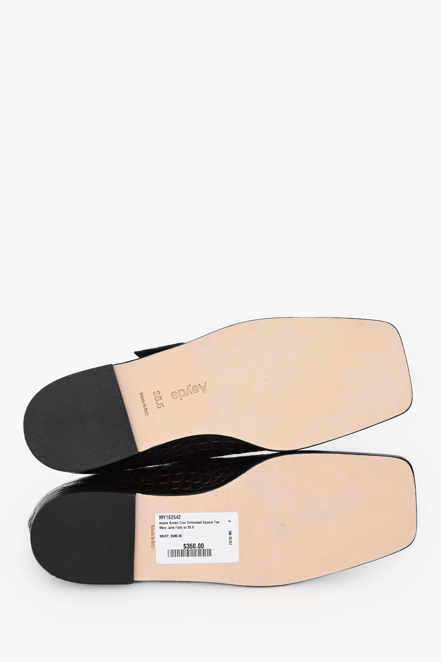 Aeyde Brown Croc Embossed Square Toe Mary Jane Flats Size 35.5