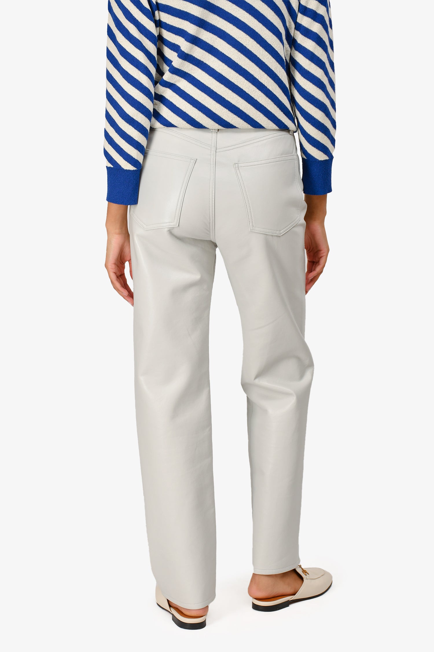 Refresh availabilityAgolde Light Grey Leather Pants. Front zip and button closure. Front slip pockets. 2 rear slip pockets. Tonal stitching.