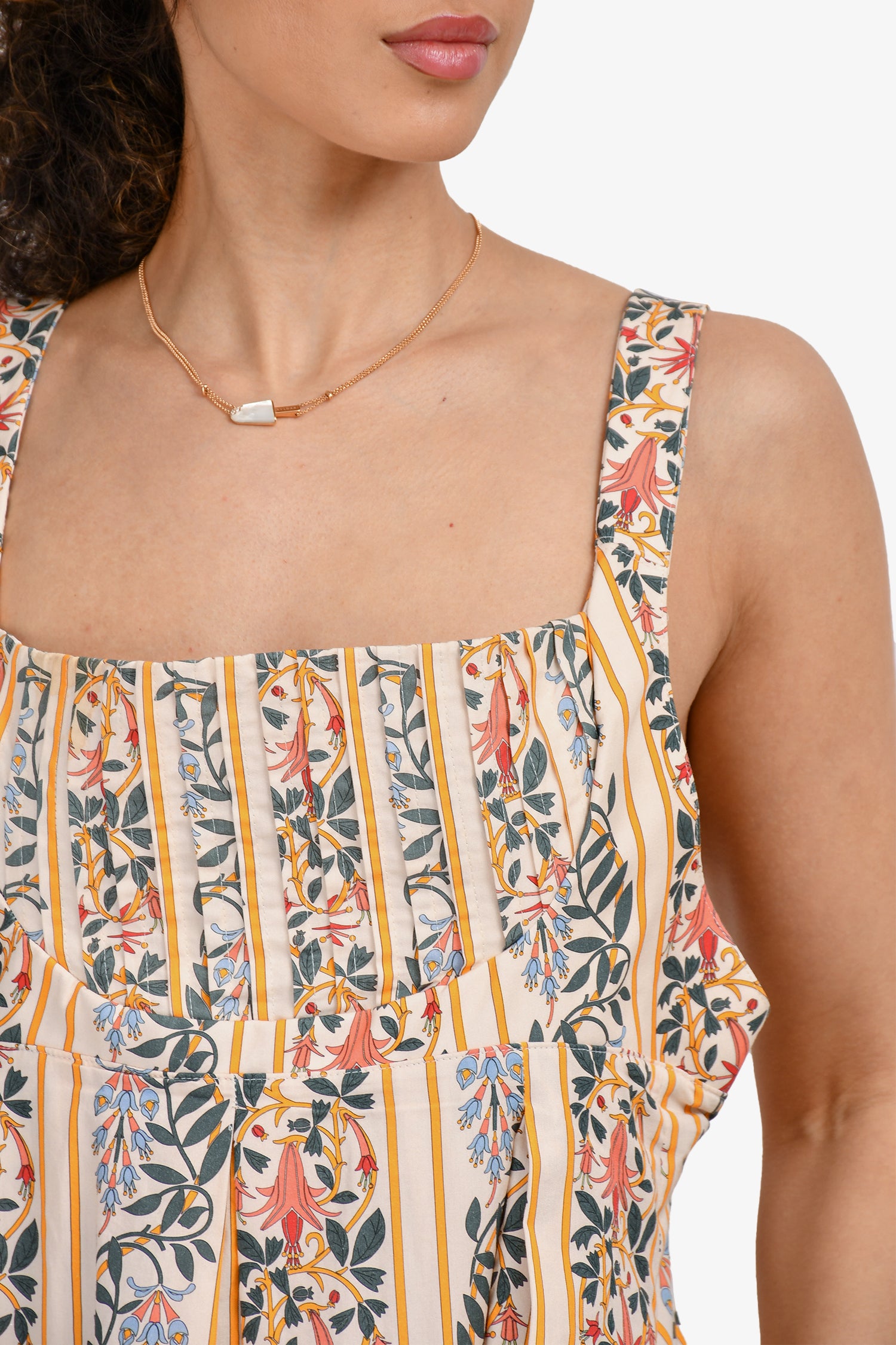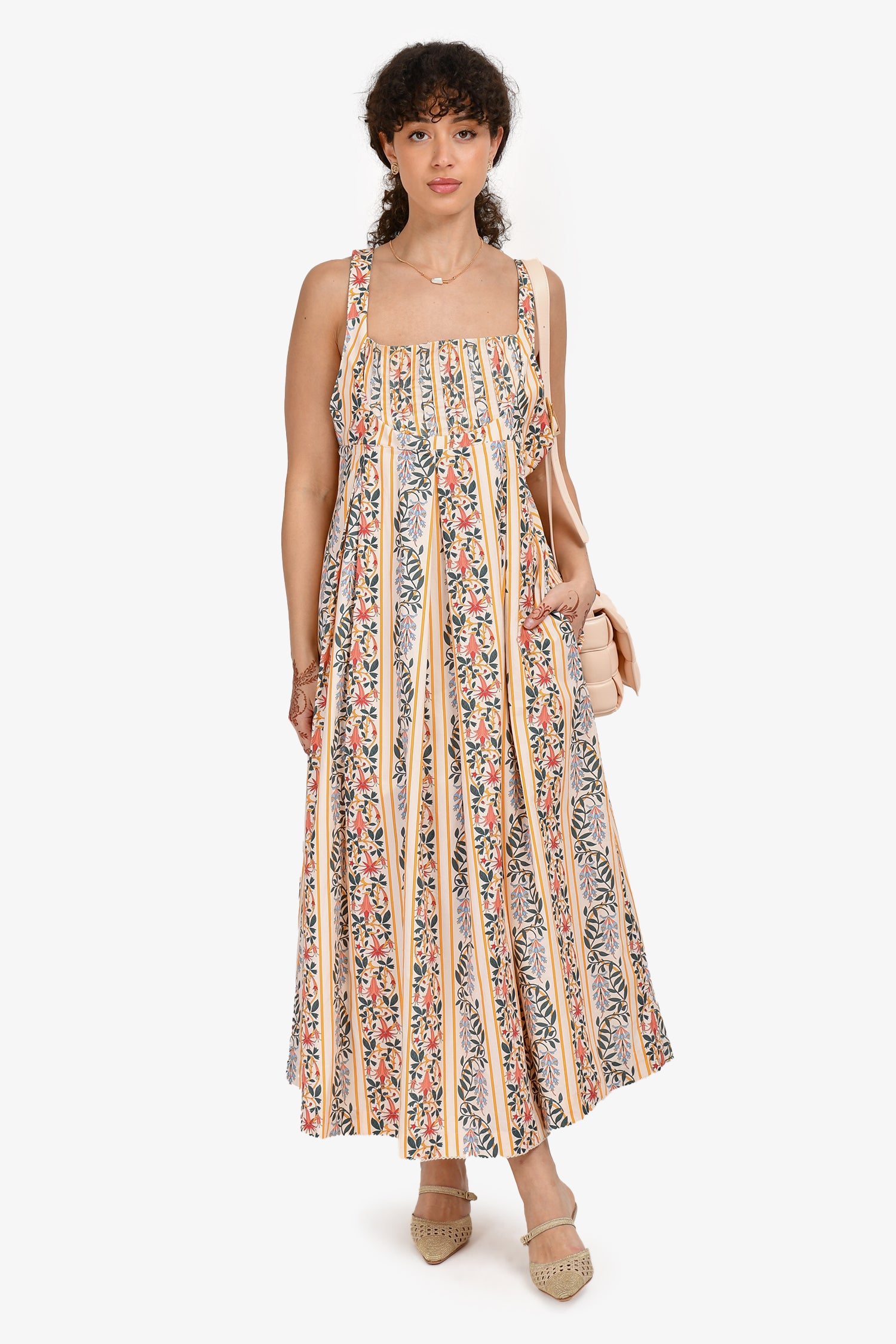 Refresh availabilityAgua by Agua Bendita Cream/Yellow Multicolour Pattern Cotton Maxi Dress. Rear zip-up closure. Sleeveless. Square neckline. 2 side slip pockets. Lined. Tonal stitching.