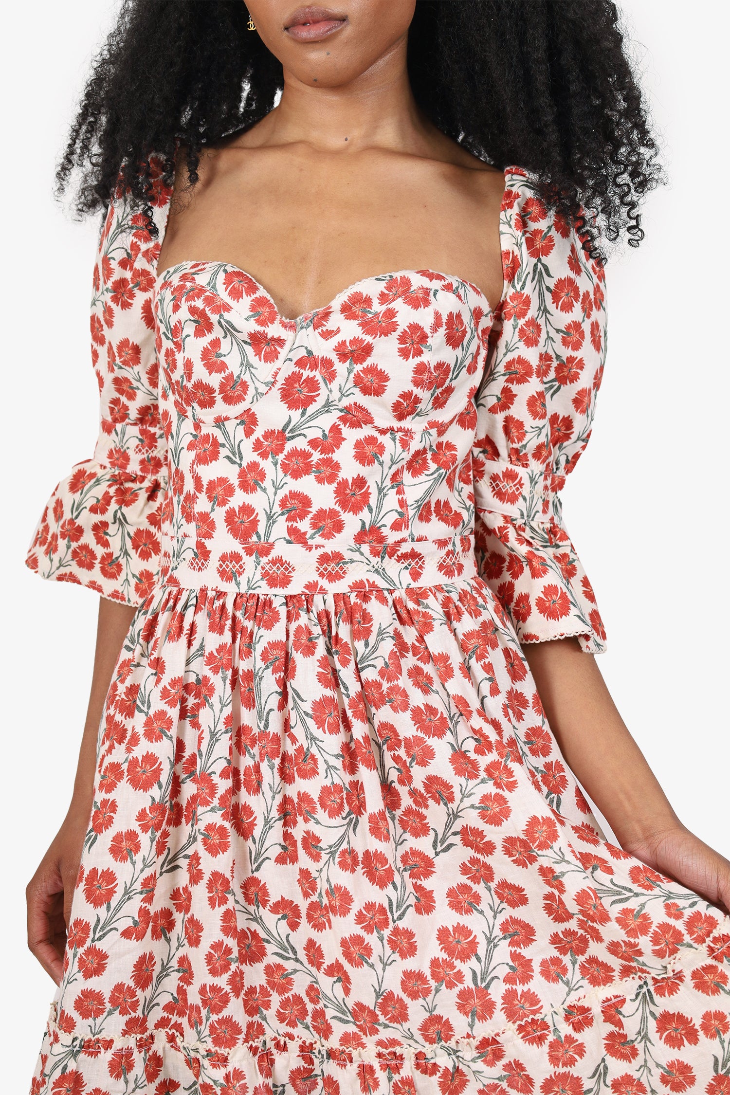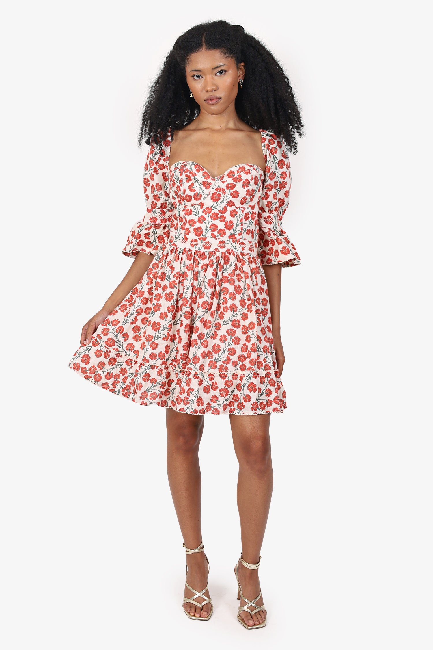Refresh availabilityAgua by Agua Bendita White/Red Floral Print Mini Dress. Slip-on. Bustier neckline. Scalloped-hem trimming at neckline and bottom hem. Rear zip and hook closure. Built-in underwire. Attached lined interior. Tonal stitching.