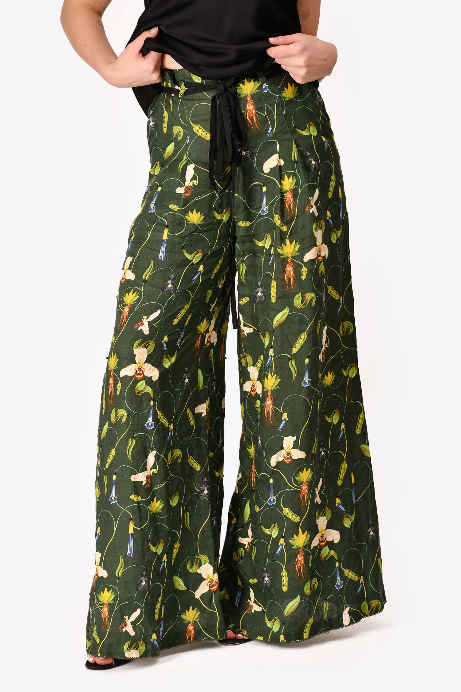 Agua by Aquabendita X Gucci Vault Green Linen Floral Printed Pants Size S