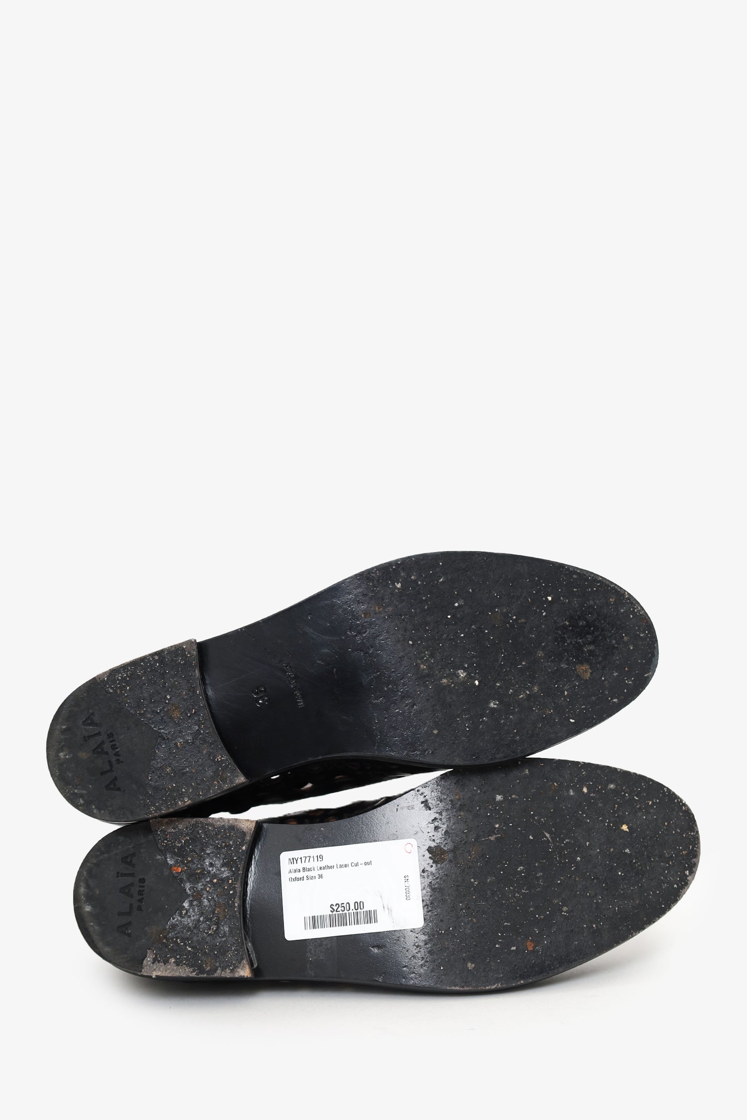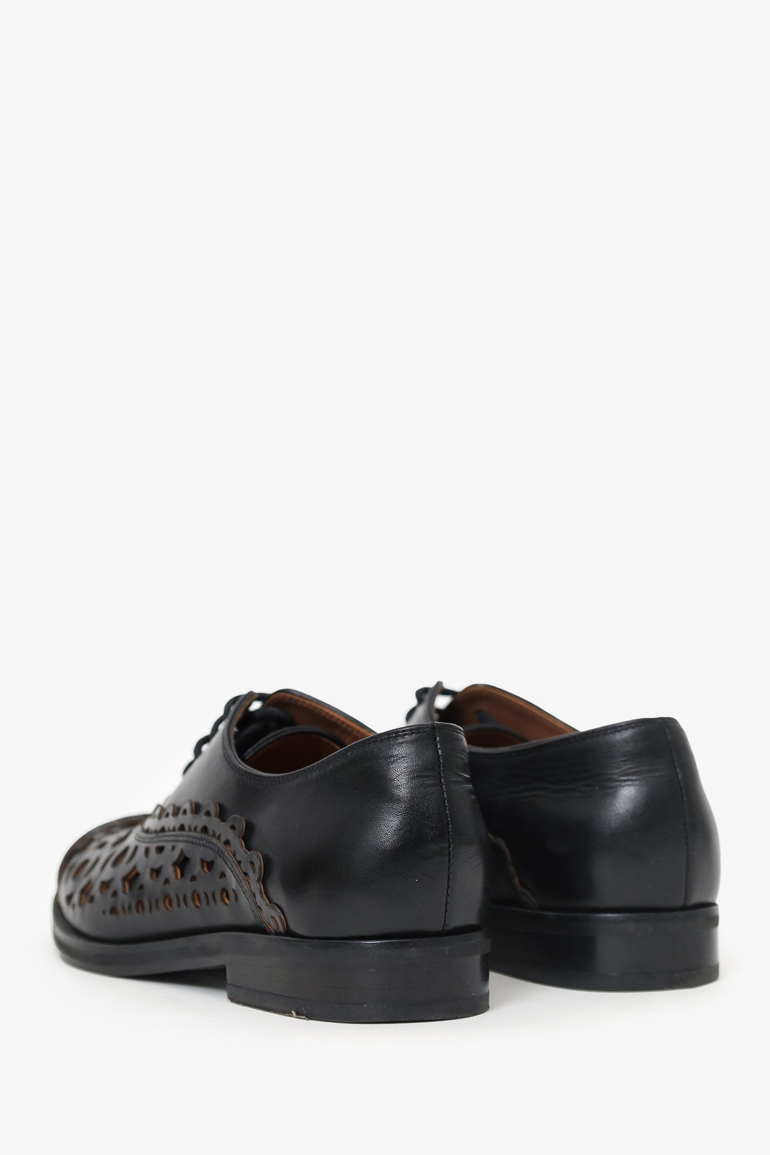 Alaïa Black Leather Laser Cut-out Oxford Size 36