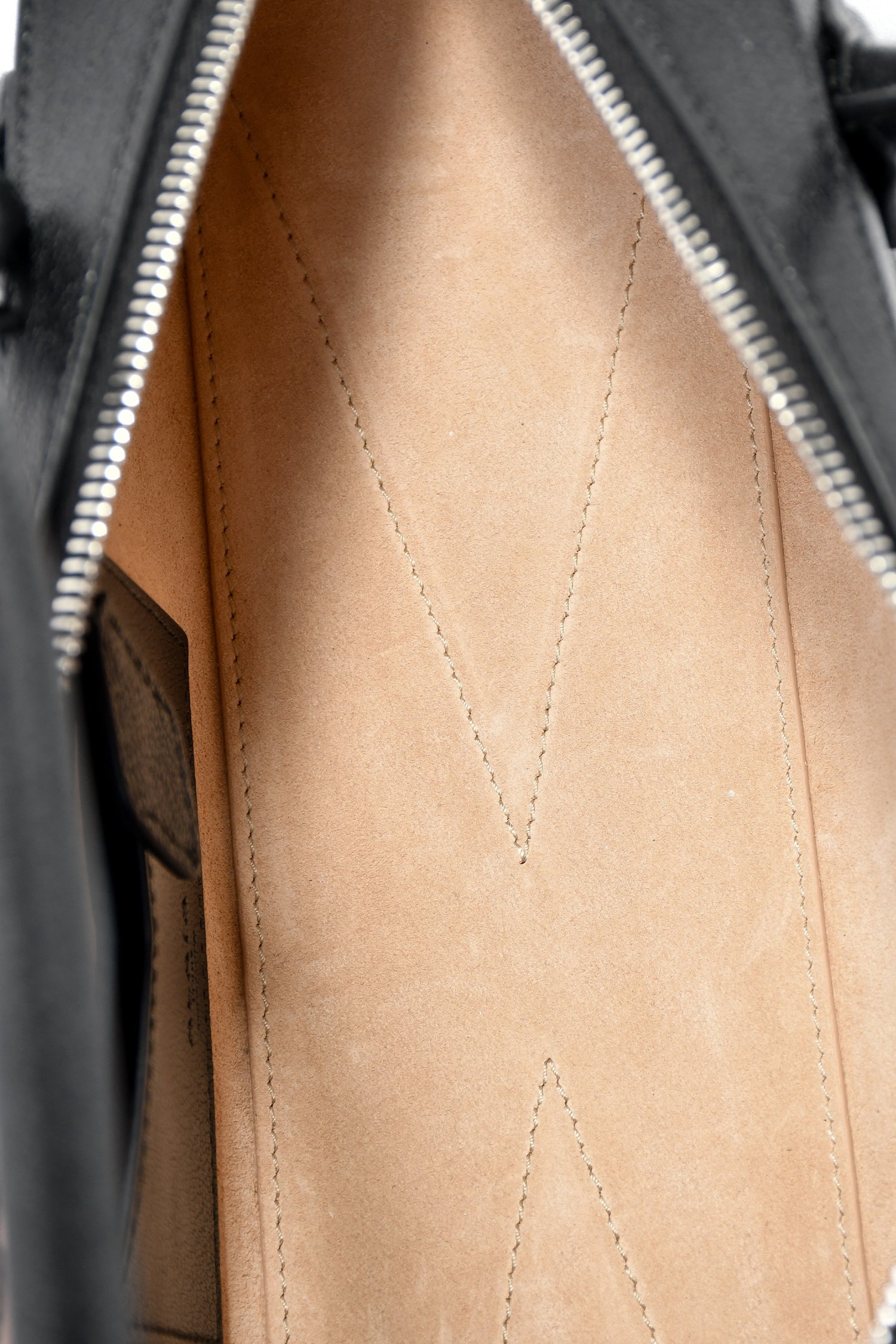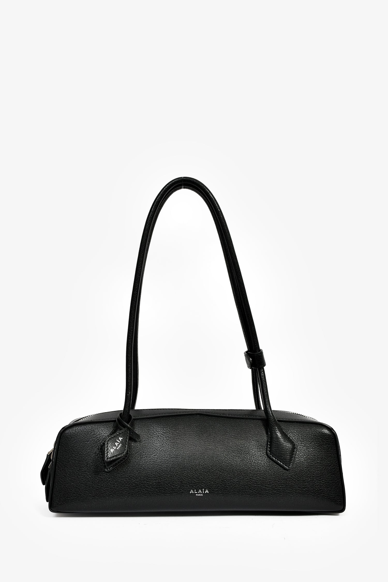 Refresh availabilityAlaia Black Leather East West 'Le Teckel' Medium Shoulder Bag. Top zipper. Dual shoulder straps. Suede-lined interior with a card holder. Silver-tone hardware. Tonal stitching.