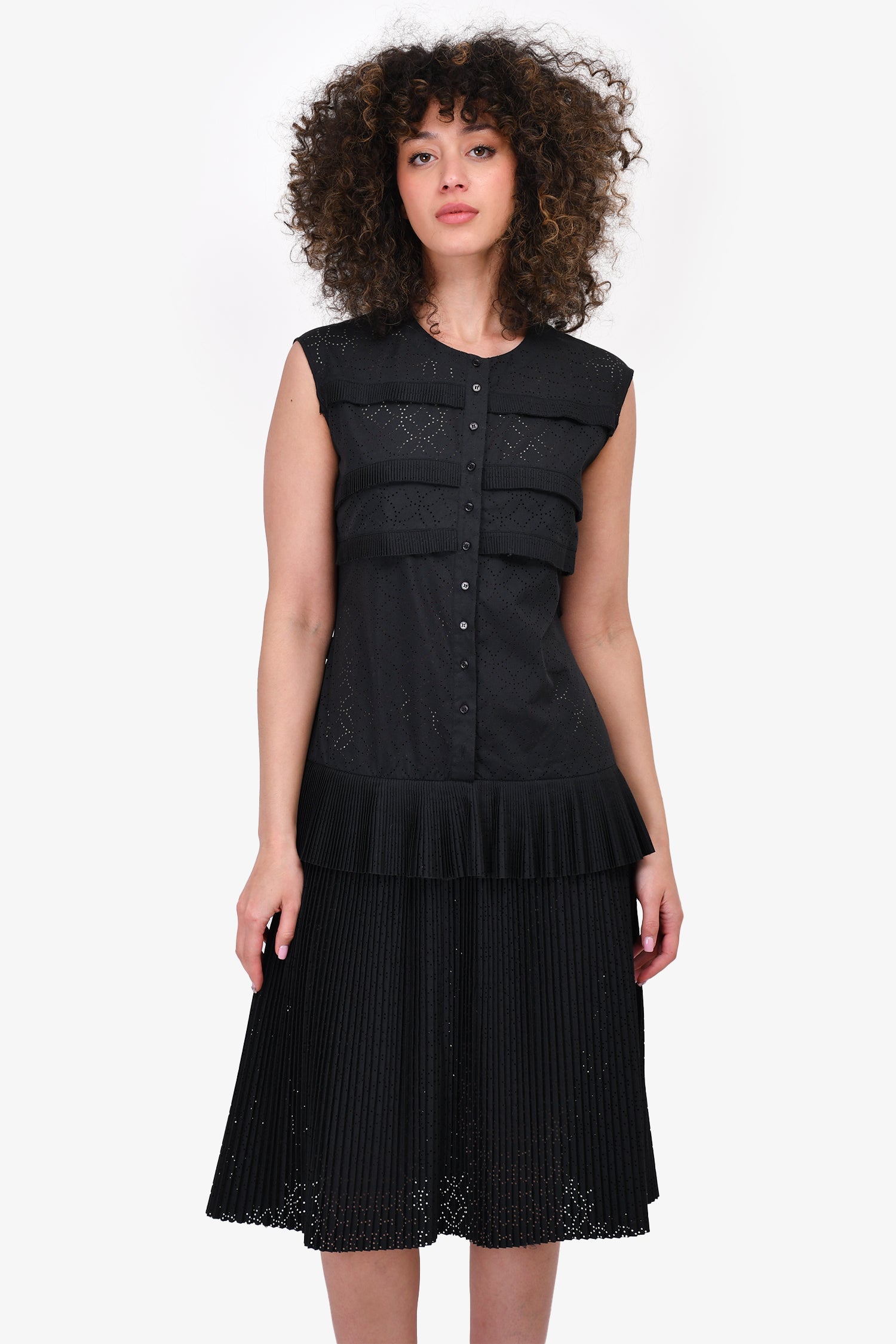 Refresh availabilityAlaia Black Pleated Sleeveless Maxi Dress. Front button up closure. Unlined Tonal stitching.