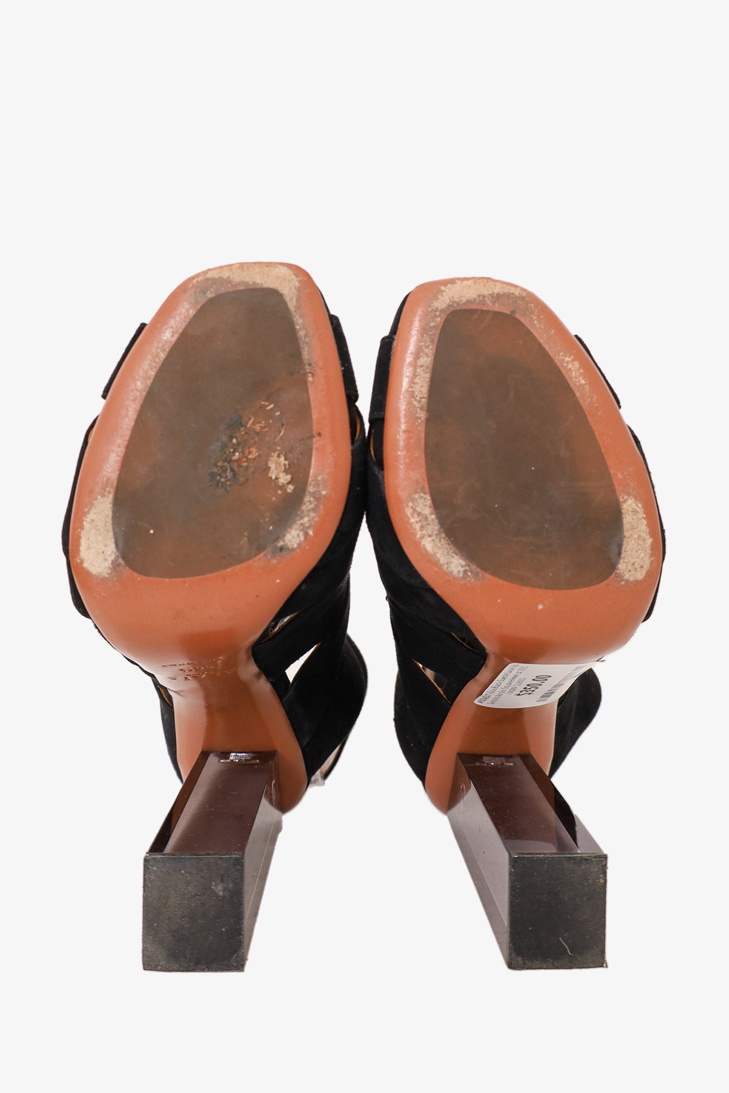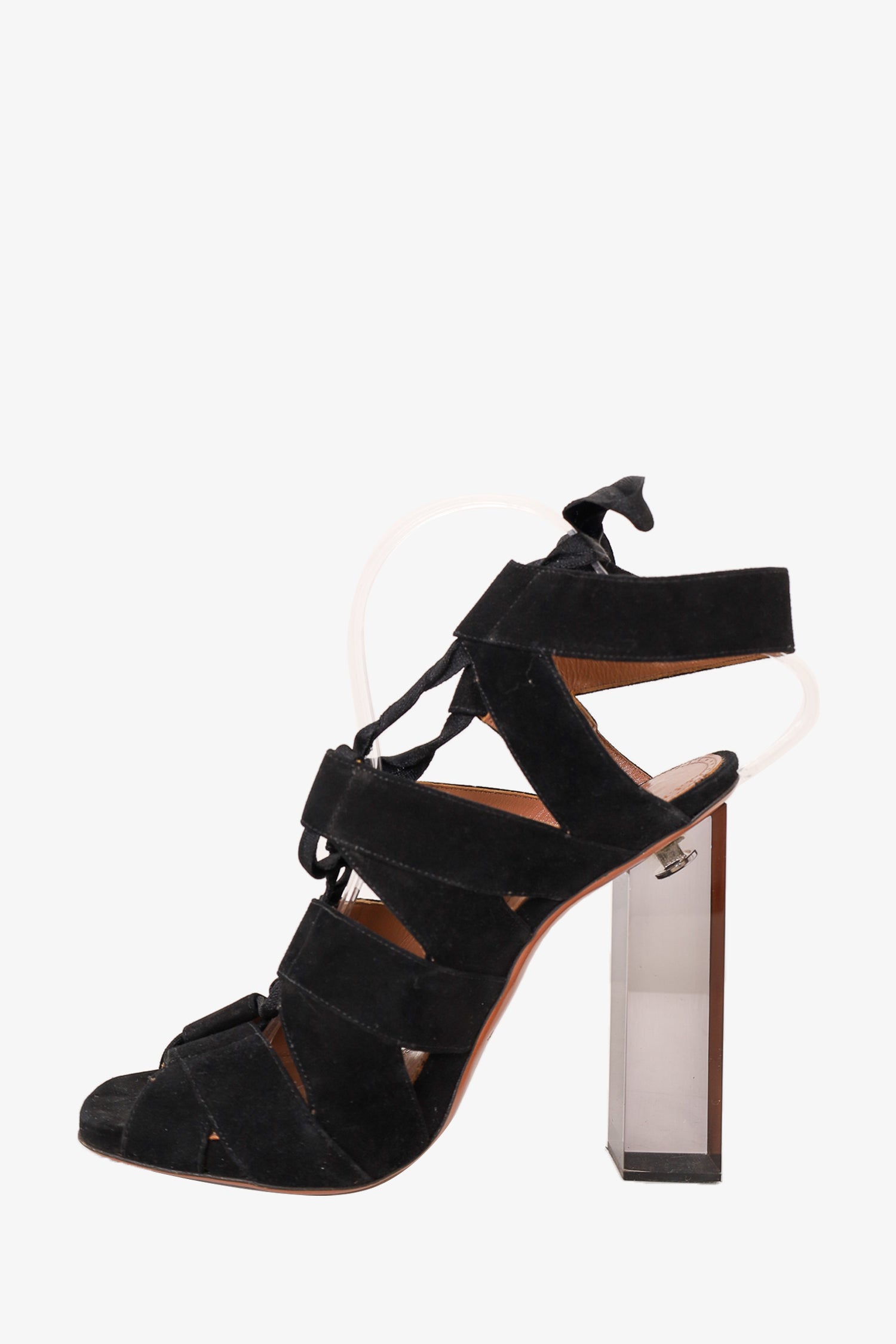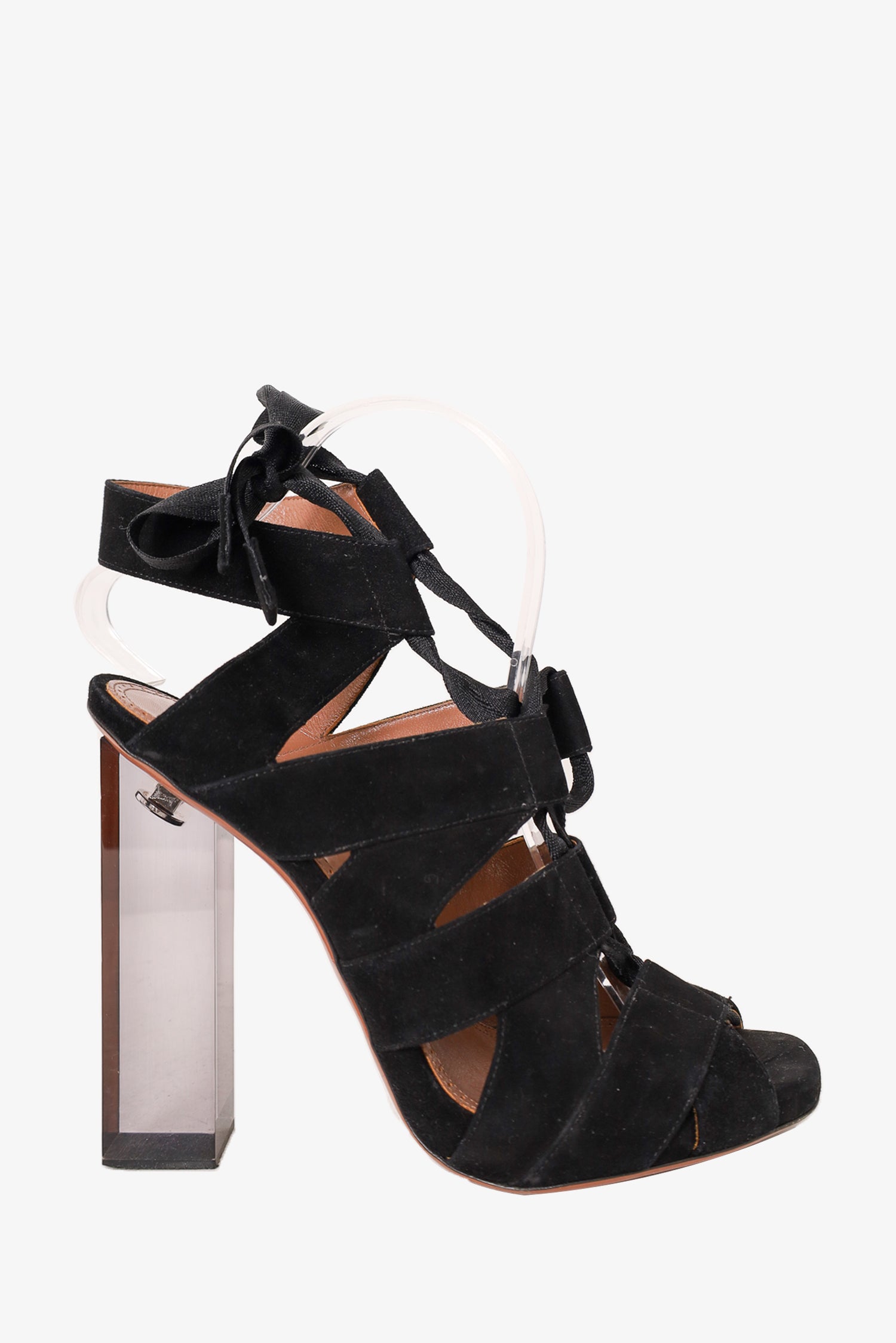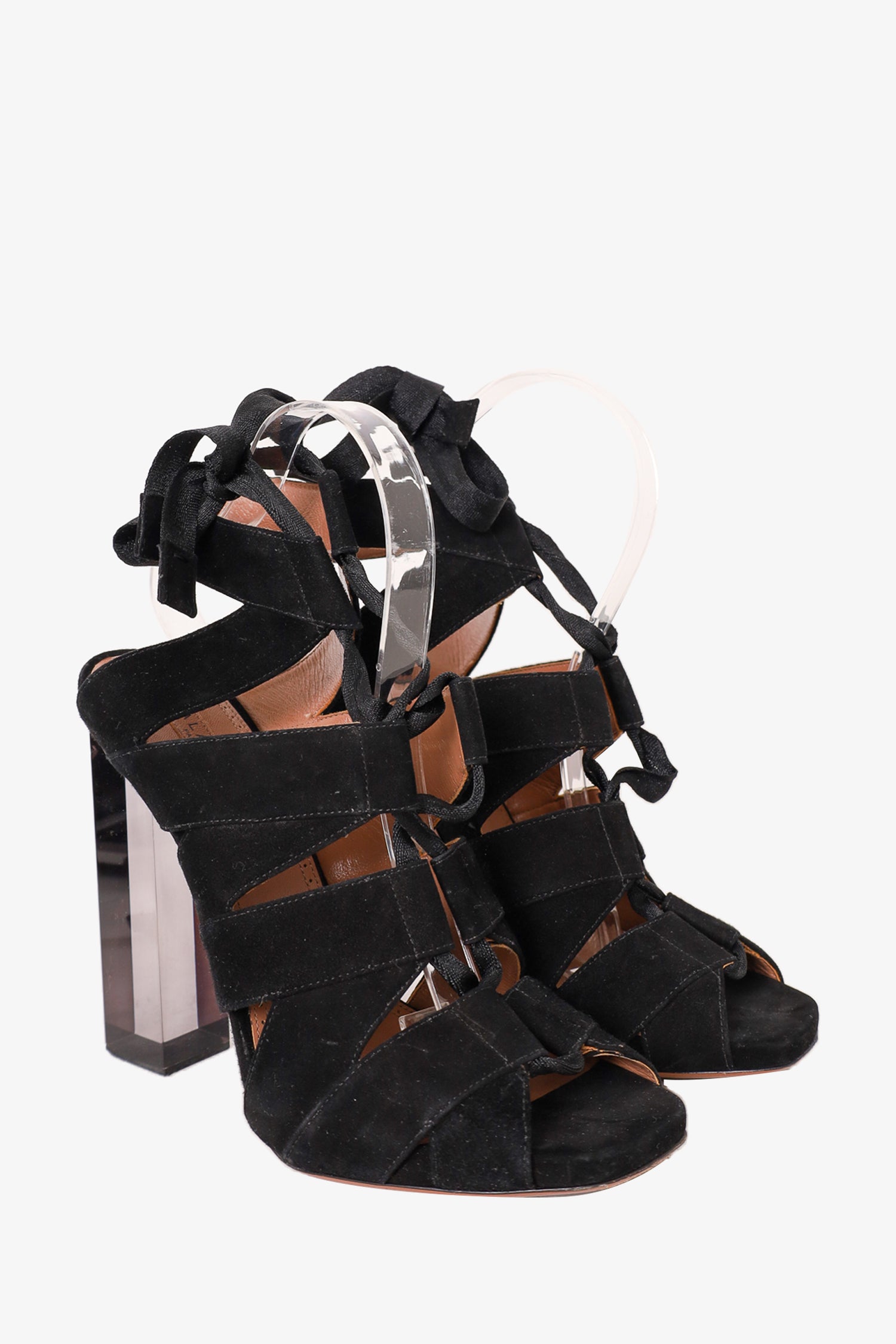 Alaïa Black Suede Lace Up Sandals Acrylic Square Heel Size 39.5