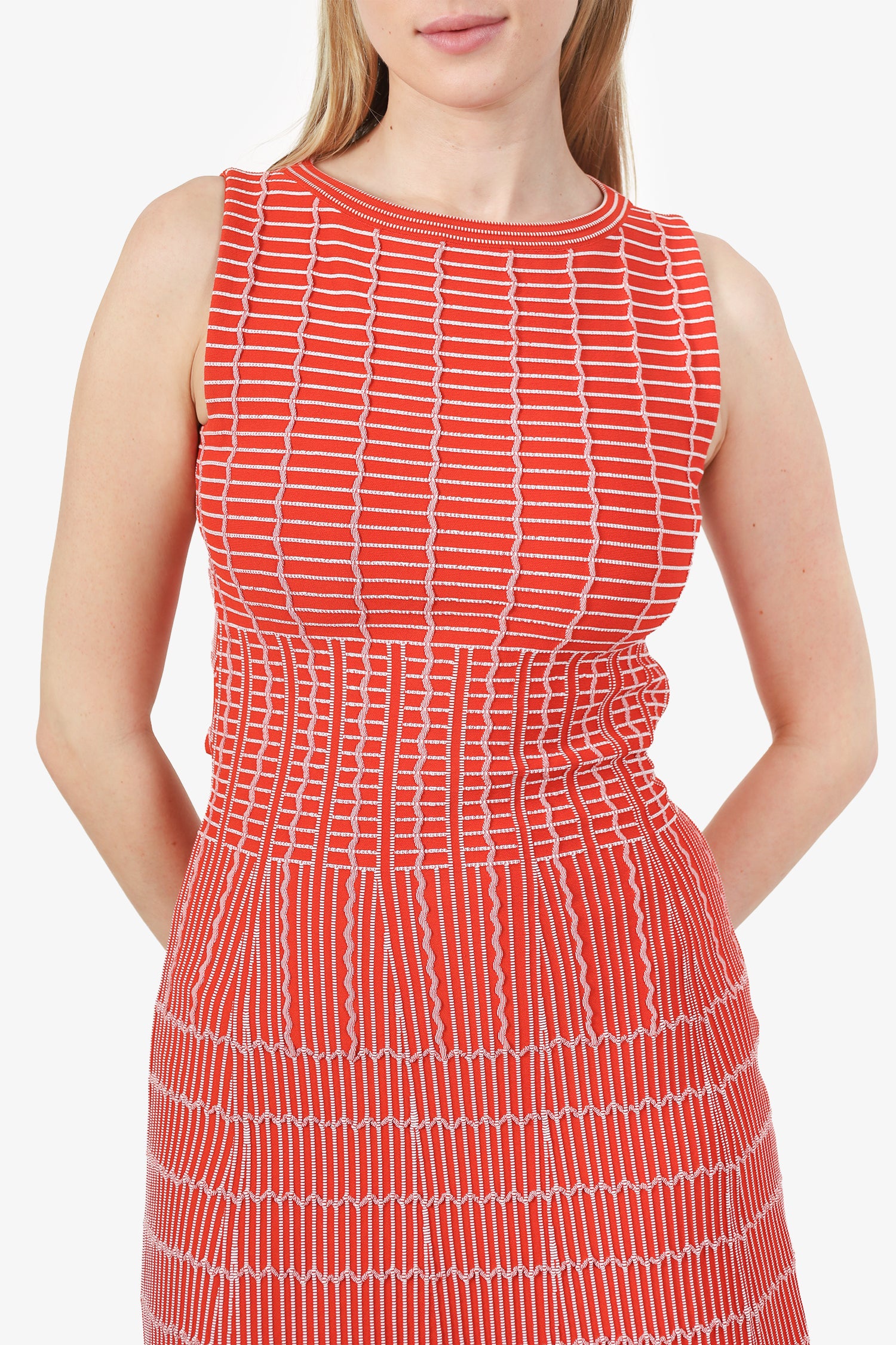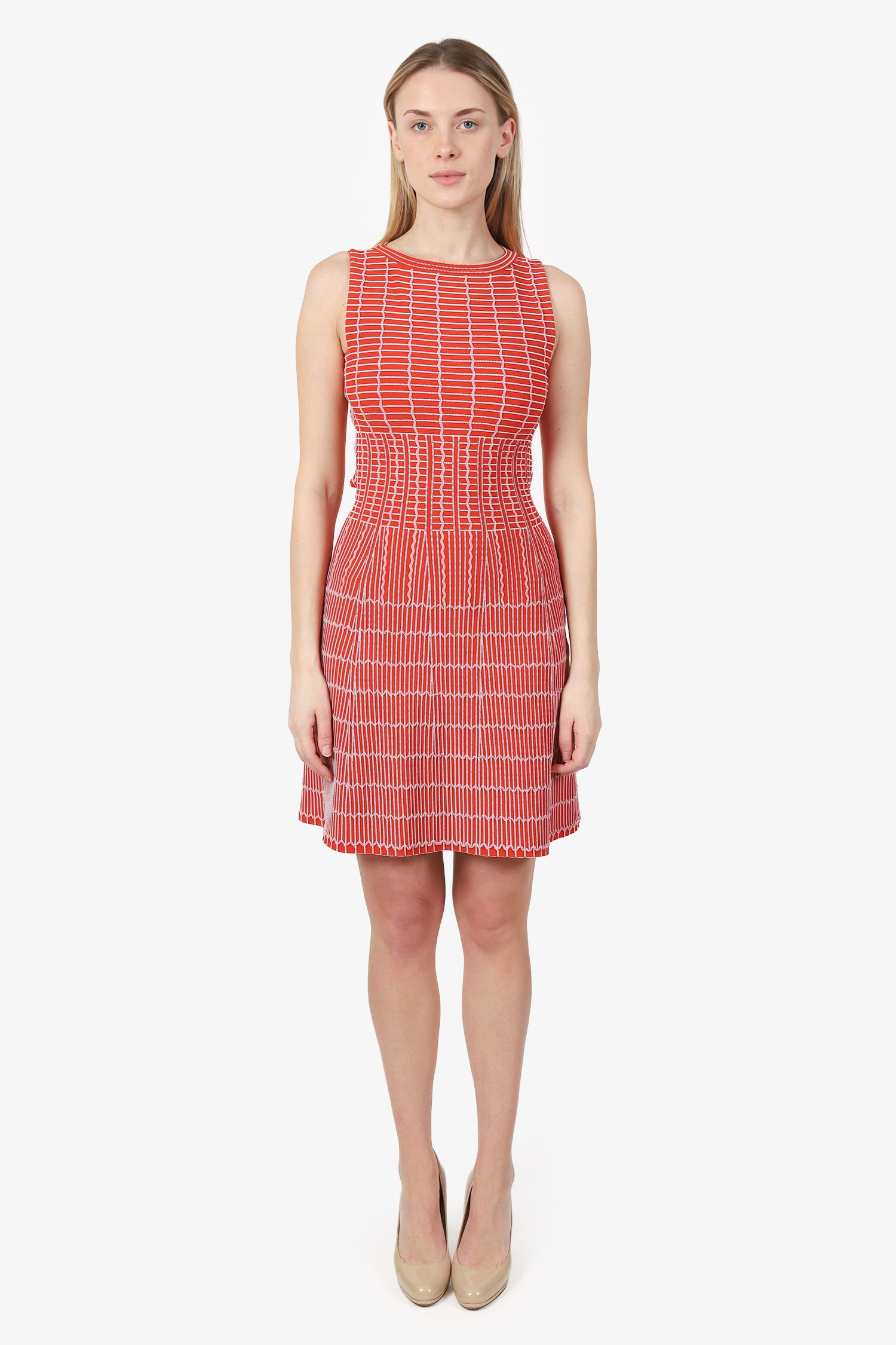 Refresh availabilityAlaïa Orange Patterned Mini Dress With Cut Out Back. Round neckline. Tonal stitching.