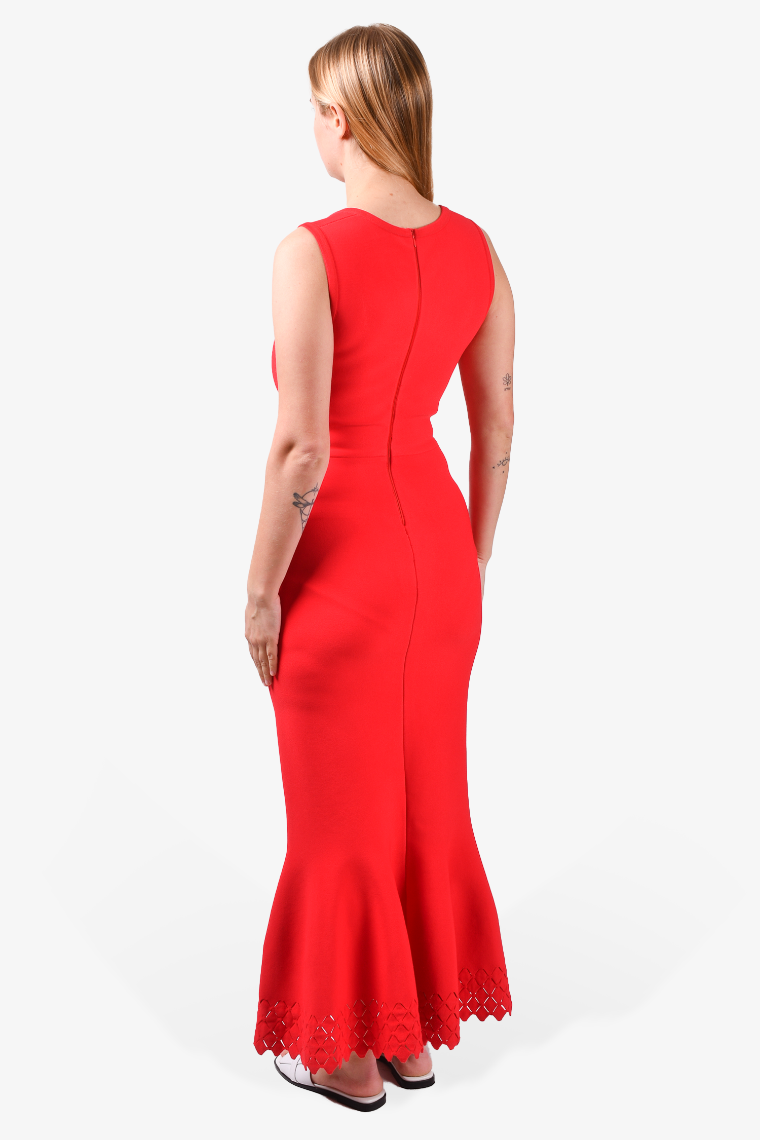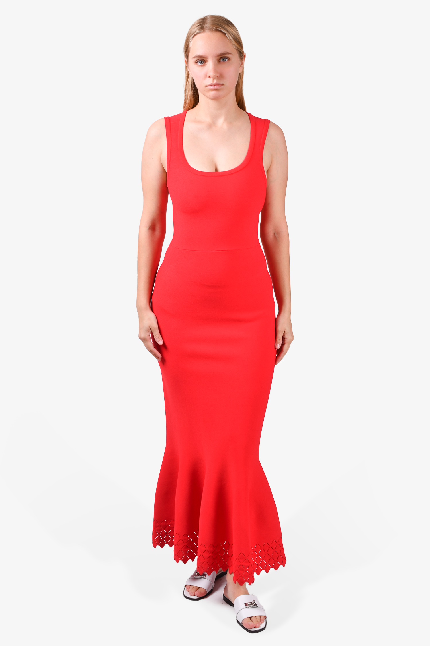 Alaïa Red Knit Sleeveless Lasercut Hem Gown Size 38