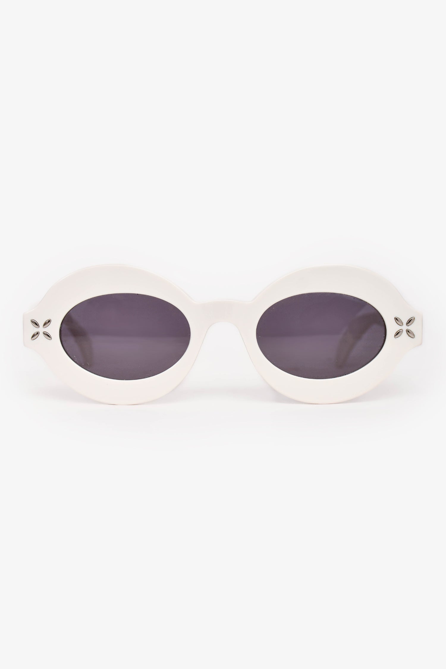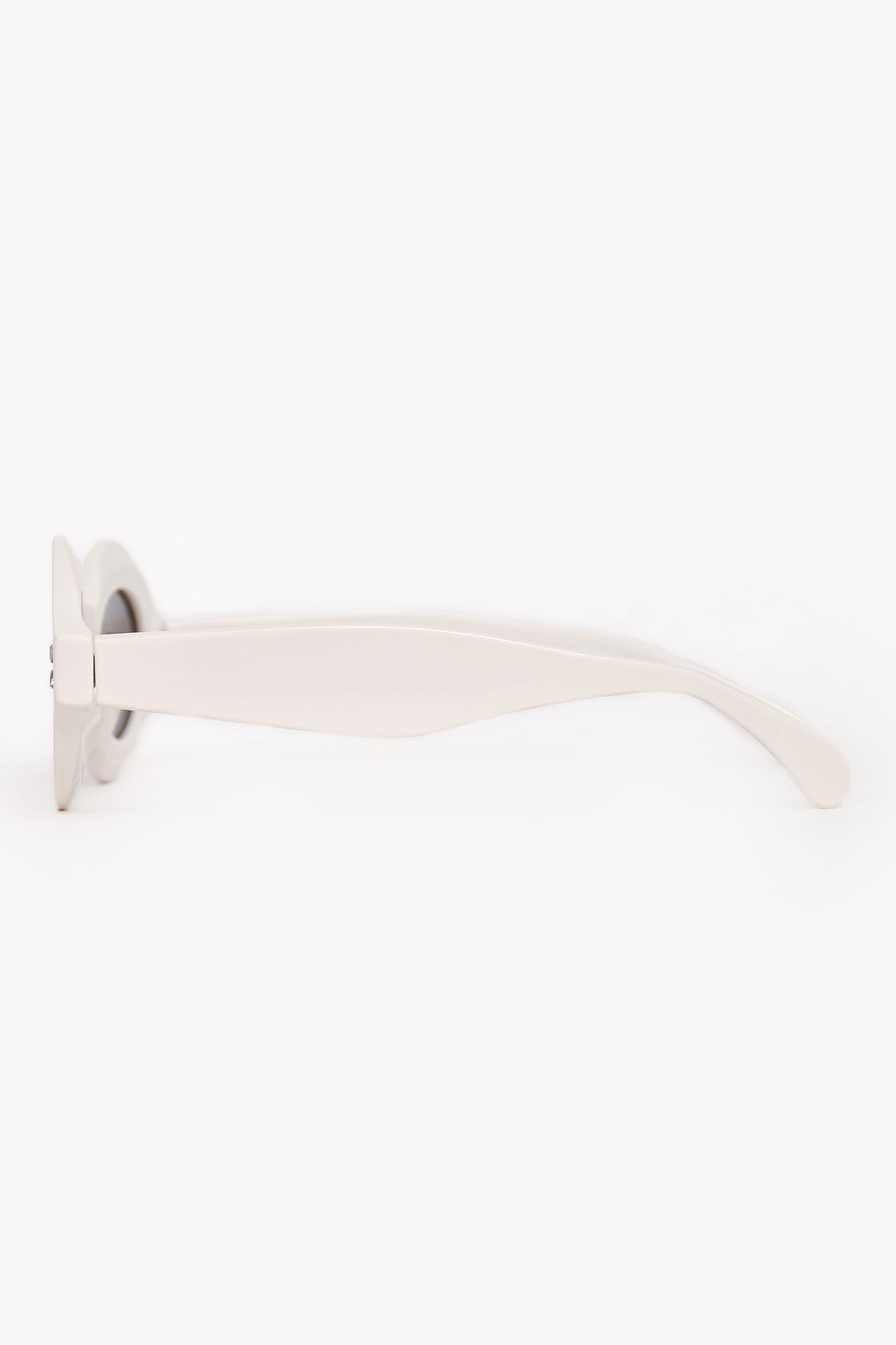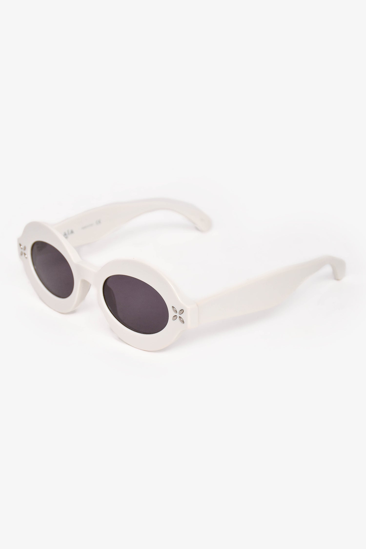Refresh availabilityAlaia White Acetate Sunglasses. Bold oversized square frame in glossy white acetate. Grey gradient lenses. Sculpted arms with logo detail at temples.