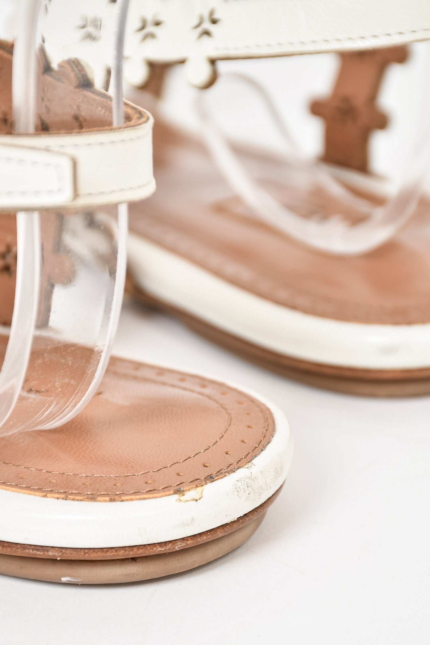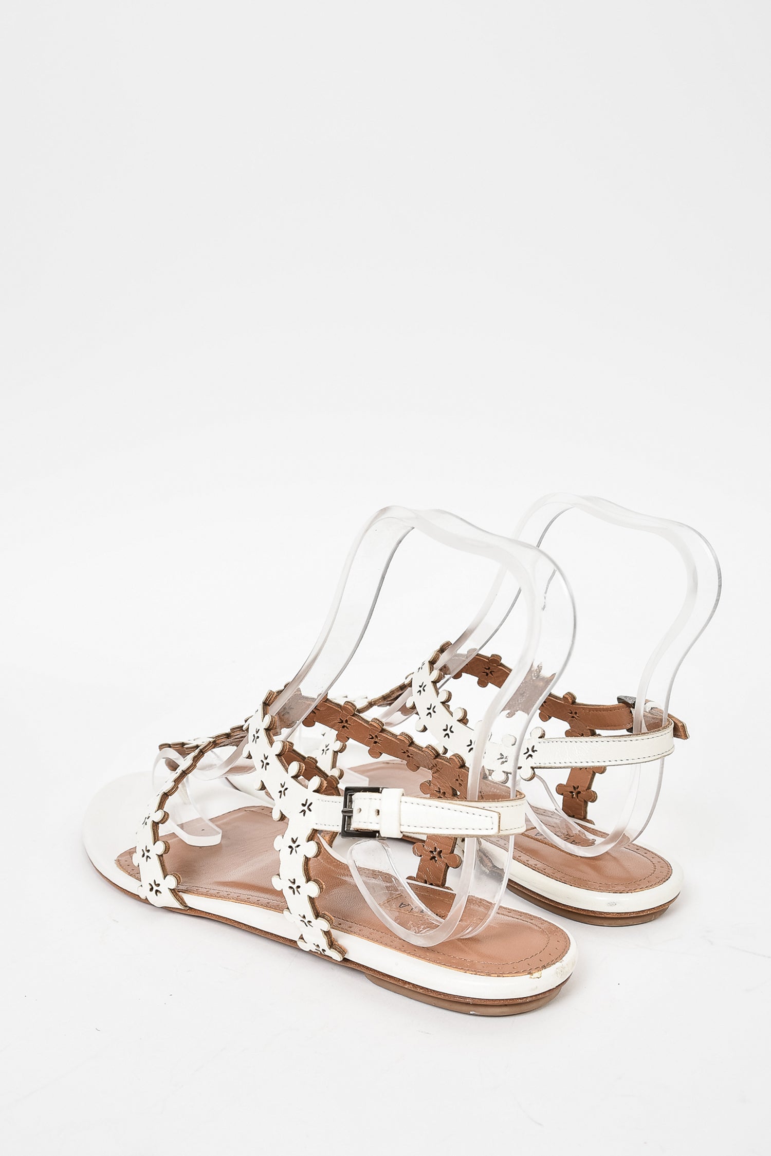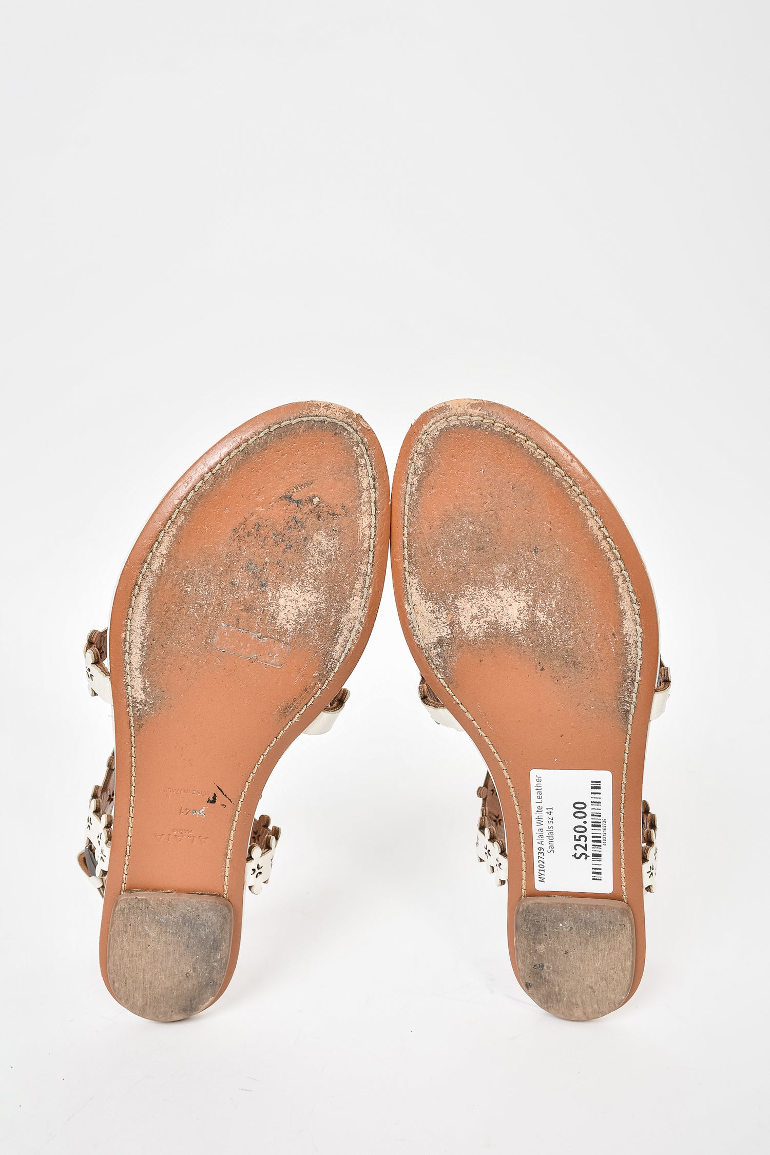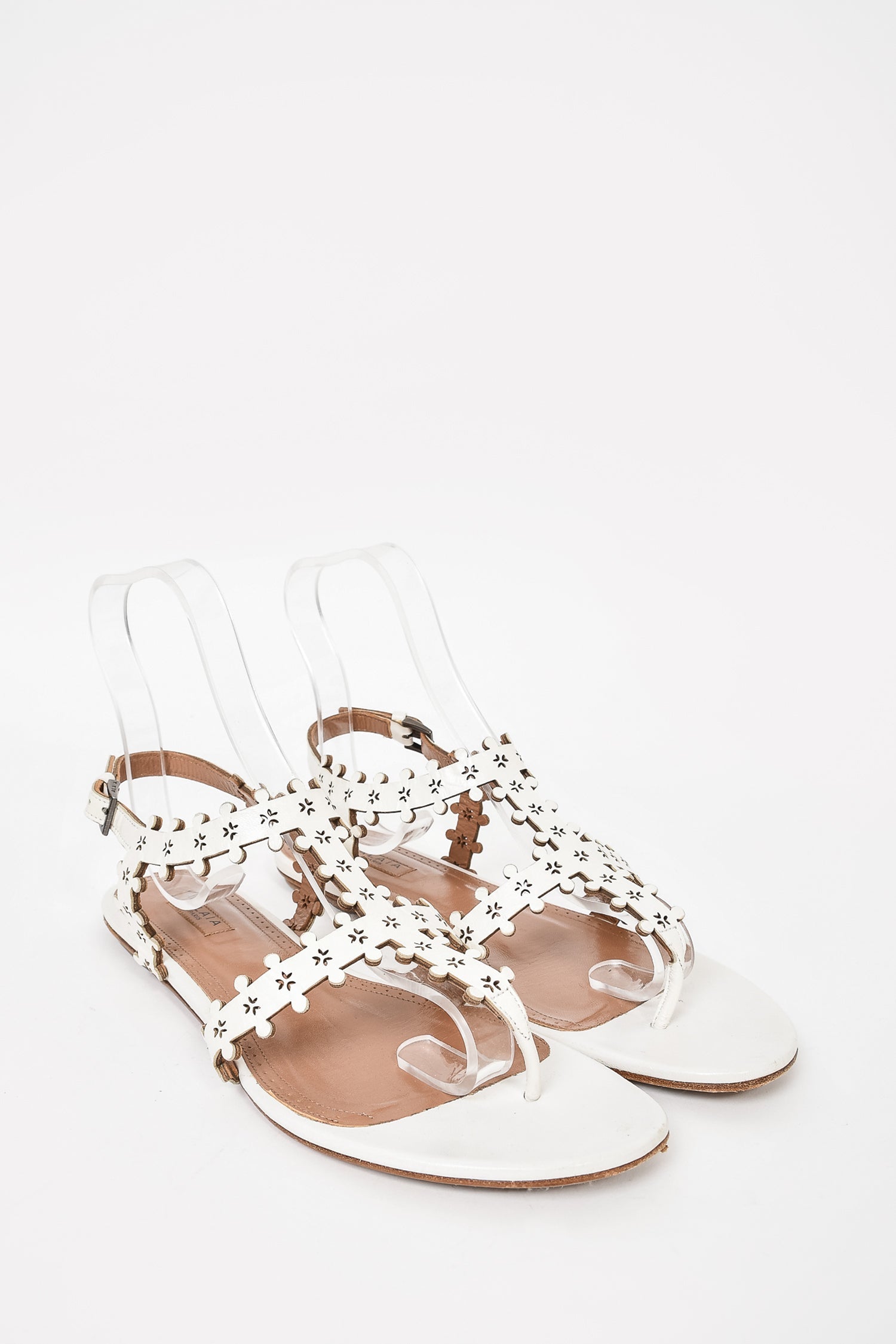 Alaia White Leather Sandals. Open toe. Ankle strap with buckle closure. Tonal stitching.