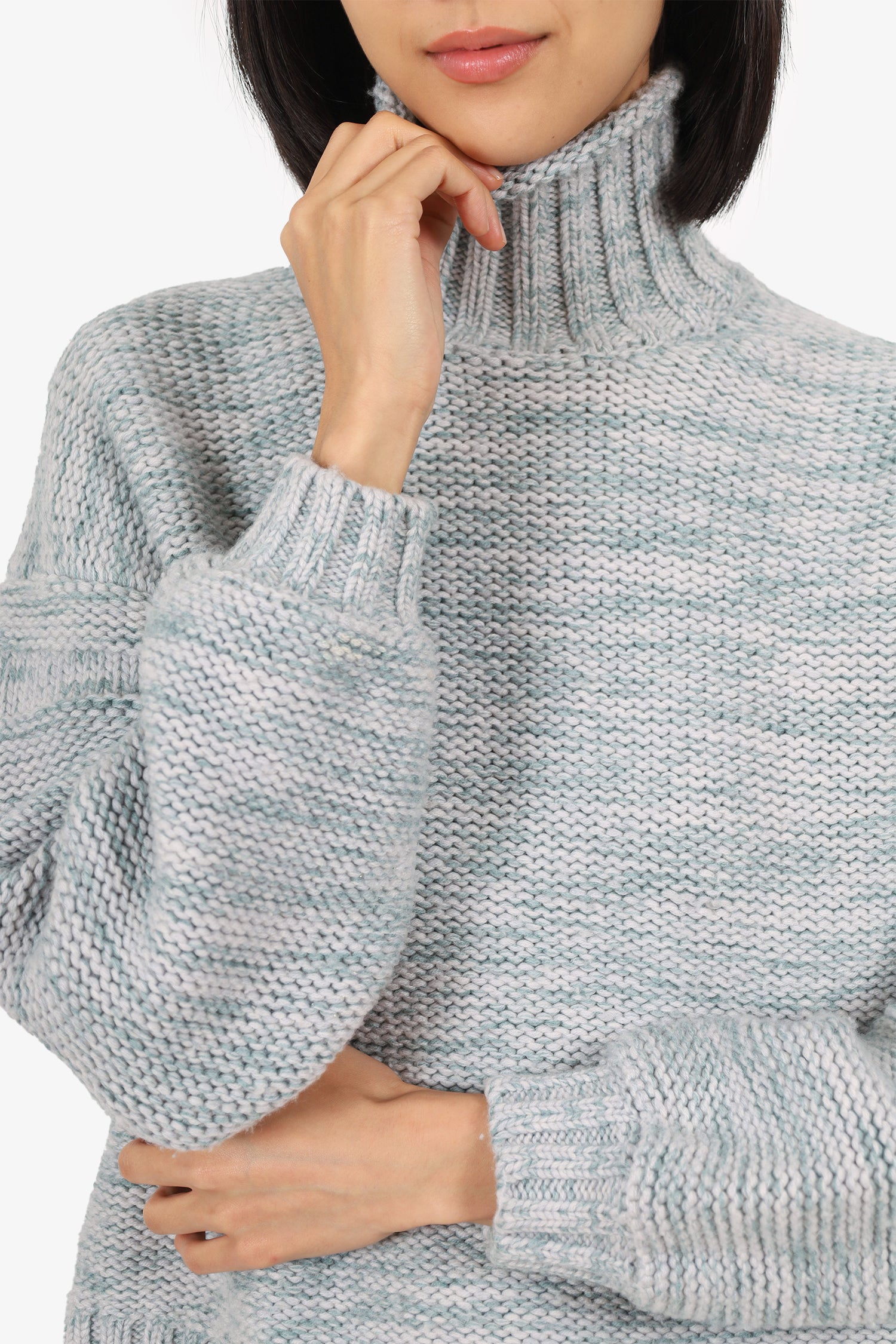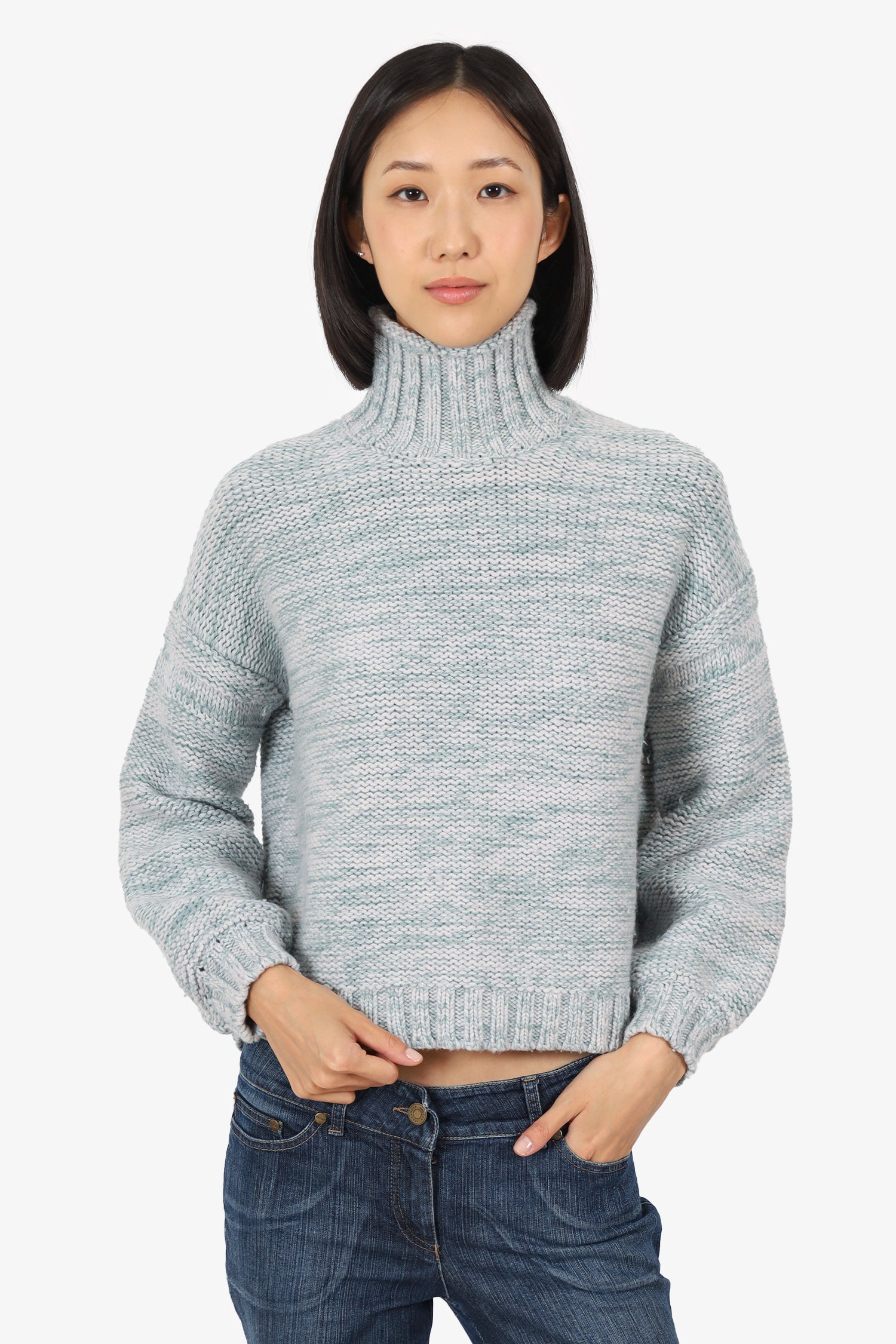 Refresh availabilityAlex Mill Blue/Green Wool/Cashmere Chunky Knit Turtle Neck Sweater. Pull-on. Turtle-neckline. Tonal stitching.