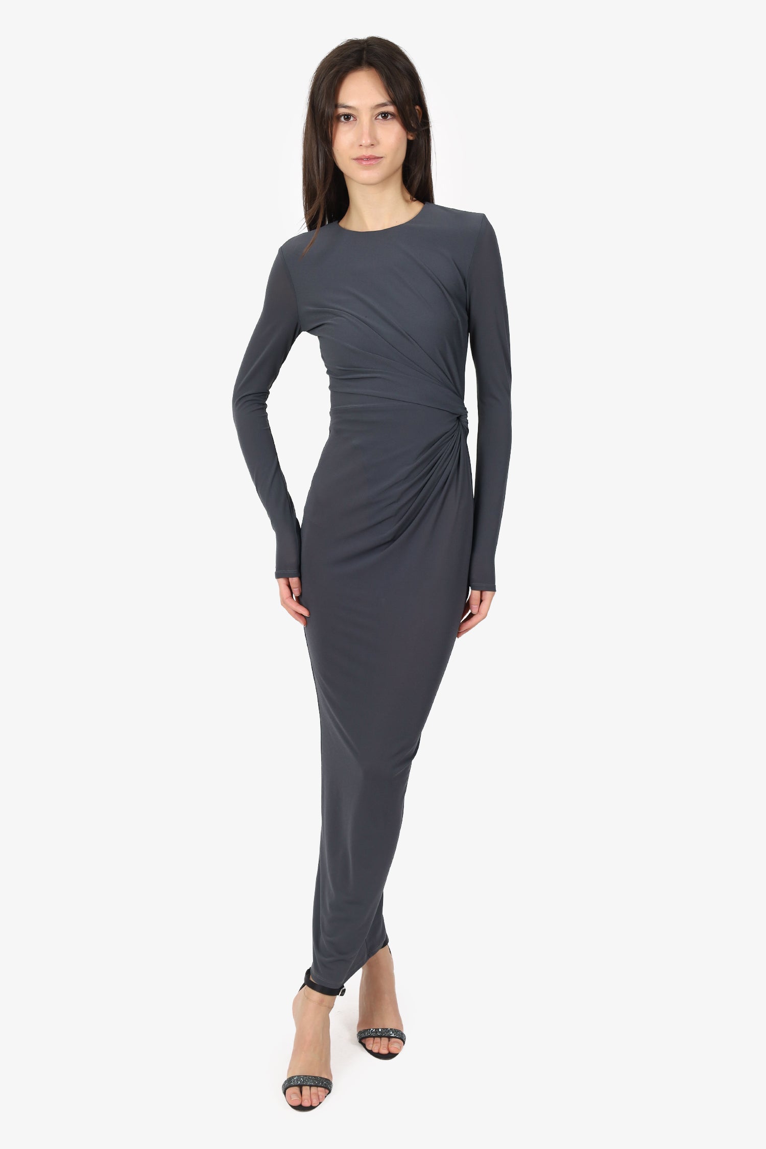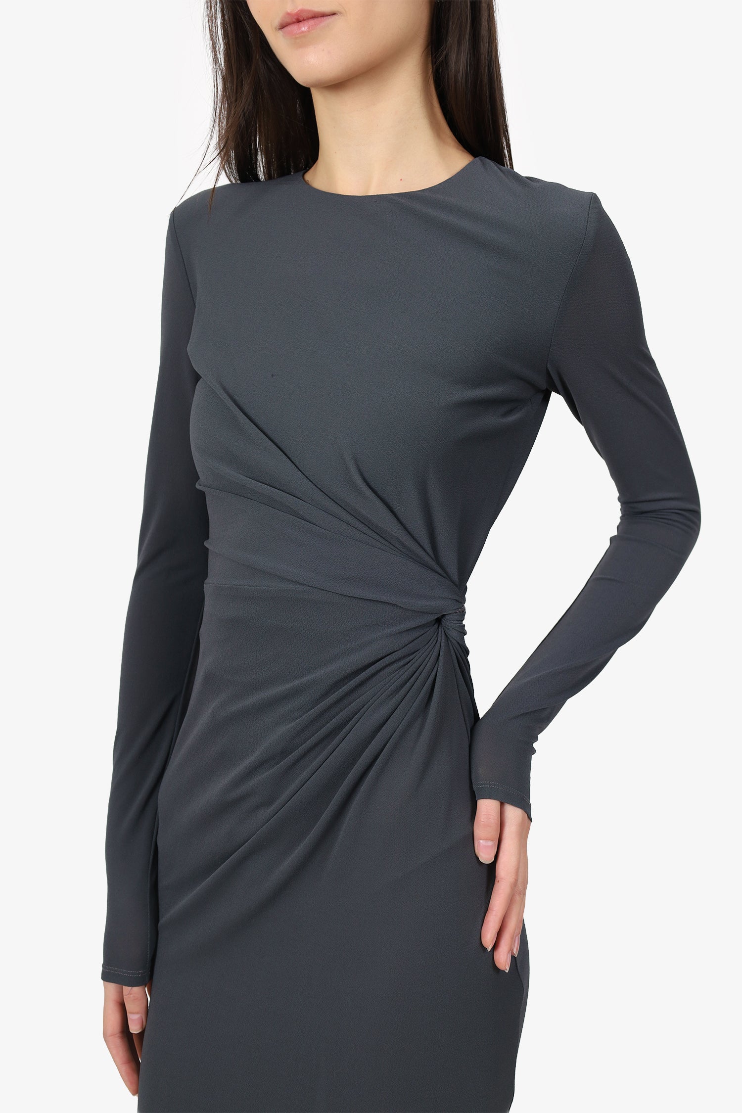 Alex Perry Grey Long Sleeve Ruched Front Bodysuit Sheer Dress Estimated Size XS