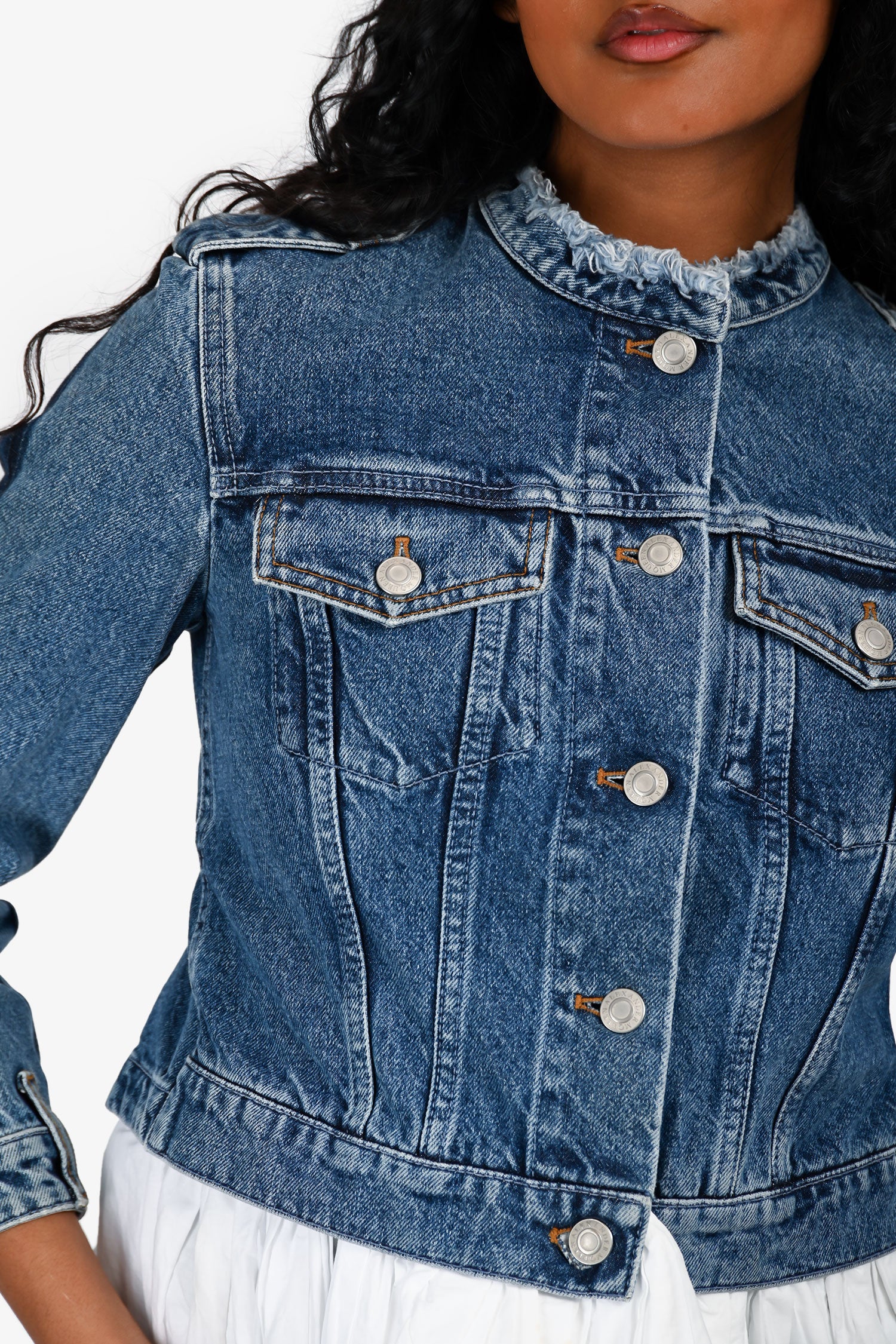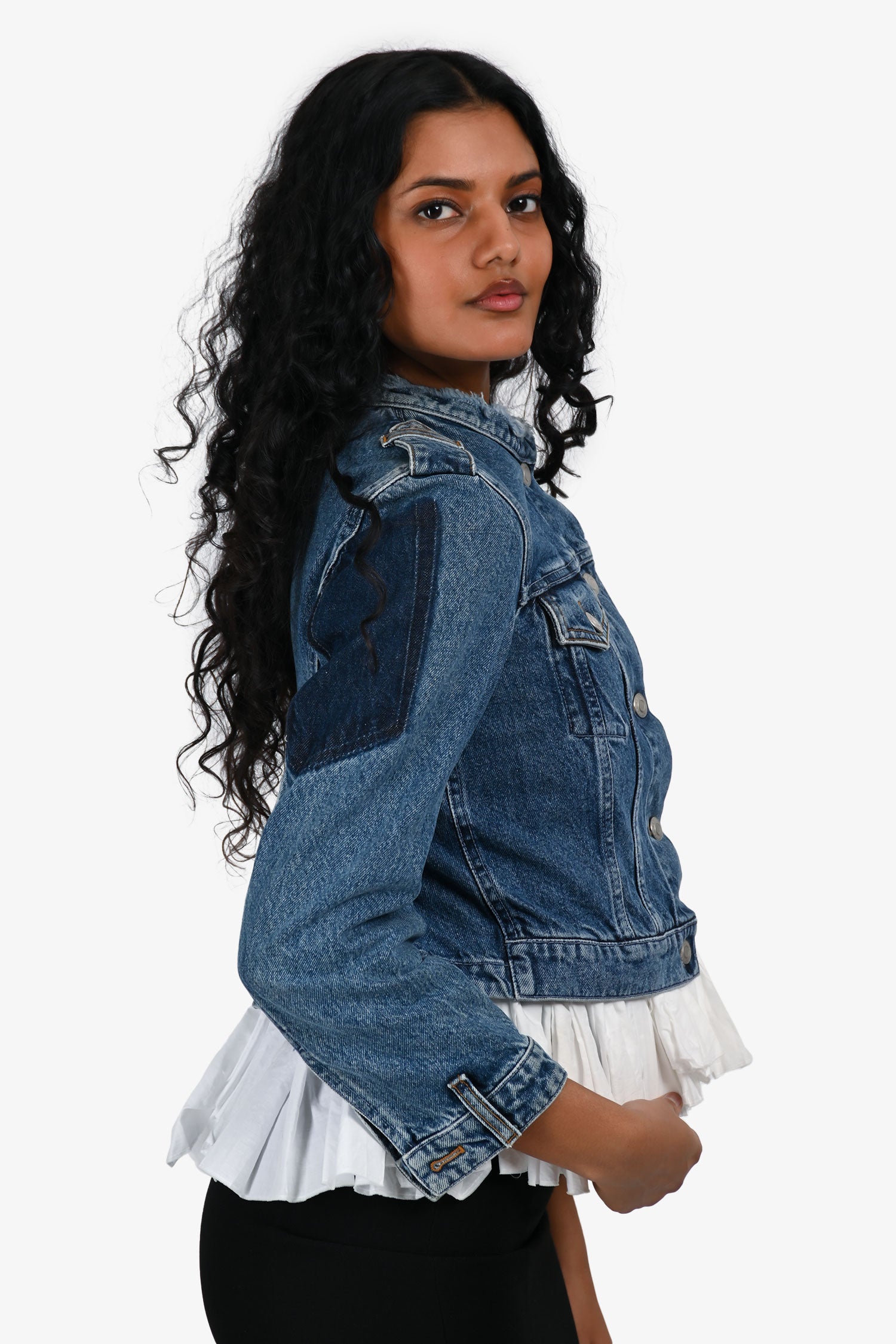 Refresh availabilityAlexander McQueen 2017 Blue Denim Ruffled Removable Hem. Front button-up closure. Button closure on the cuffs.