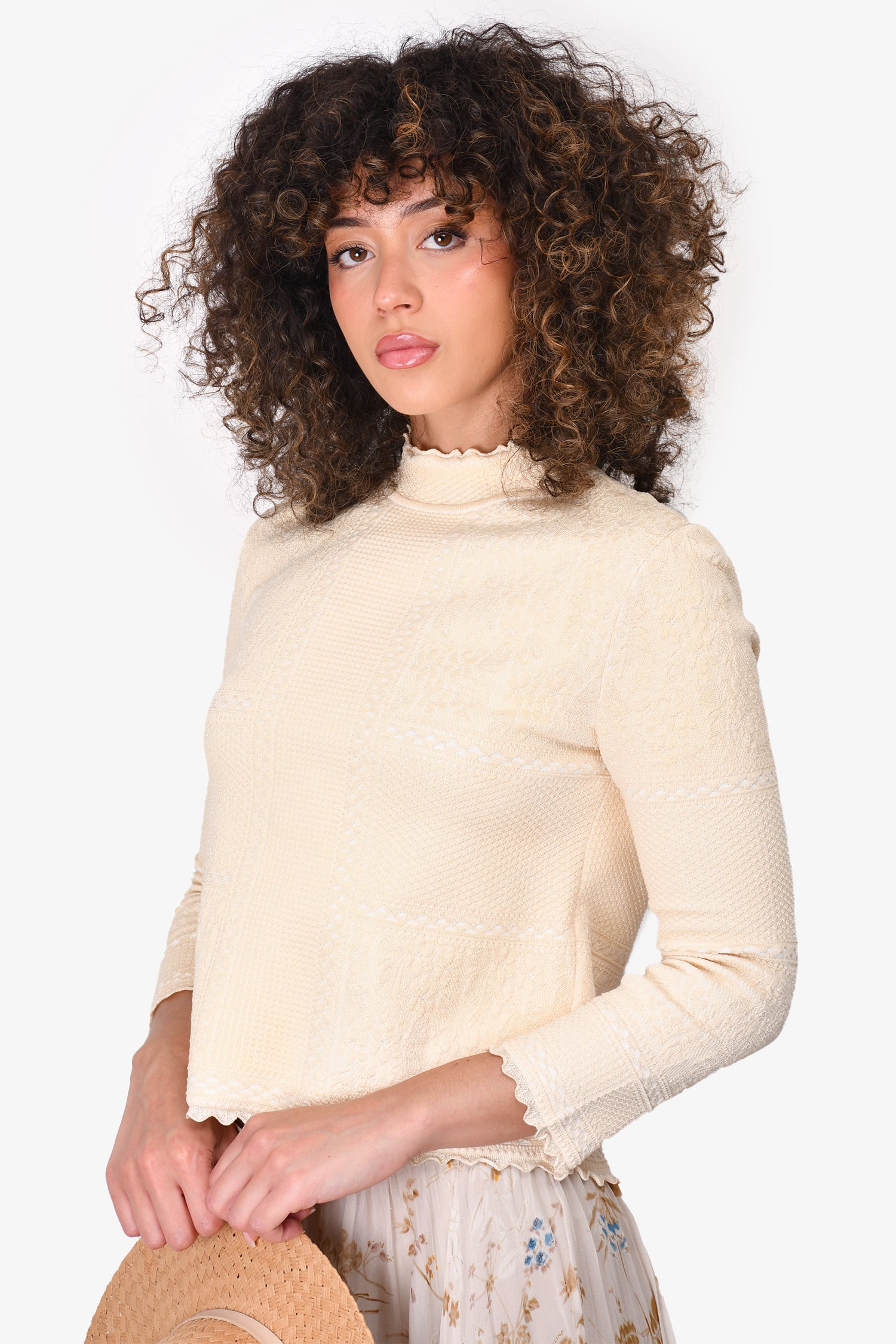 Alexander McQueen Beige Lace Embroidery Long-Sleeve Top Size L