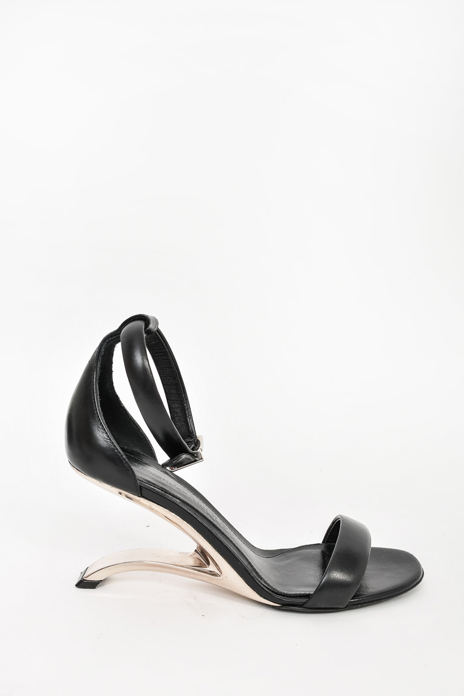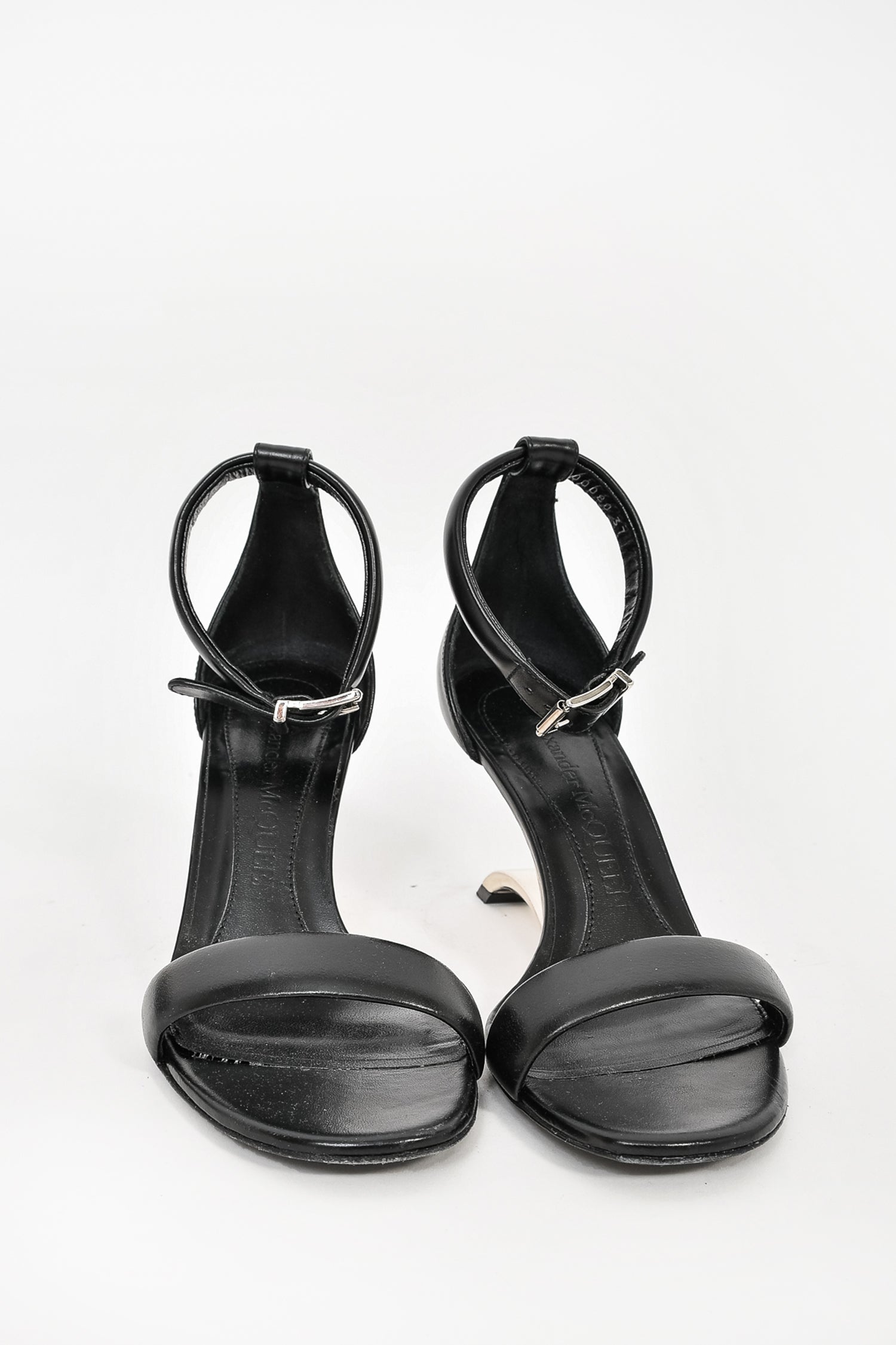 Alexander McQueen Black Leather 'Arc' Heeled Sandals Size 37