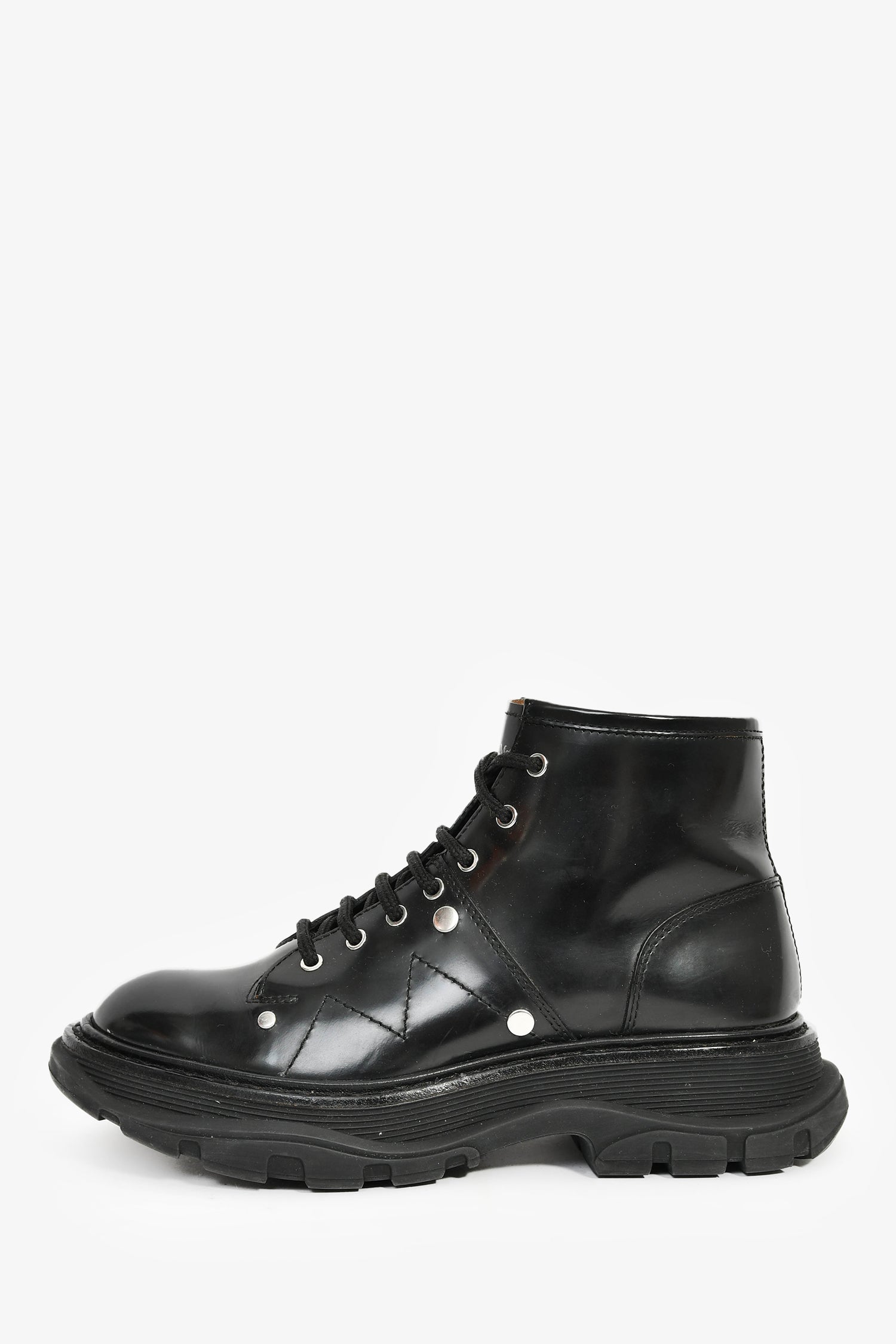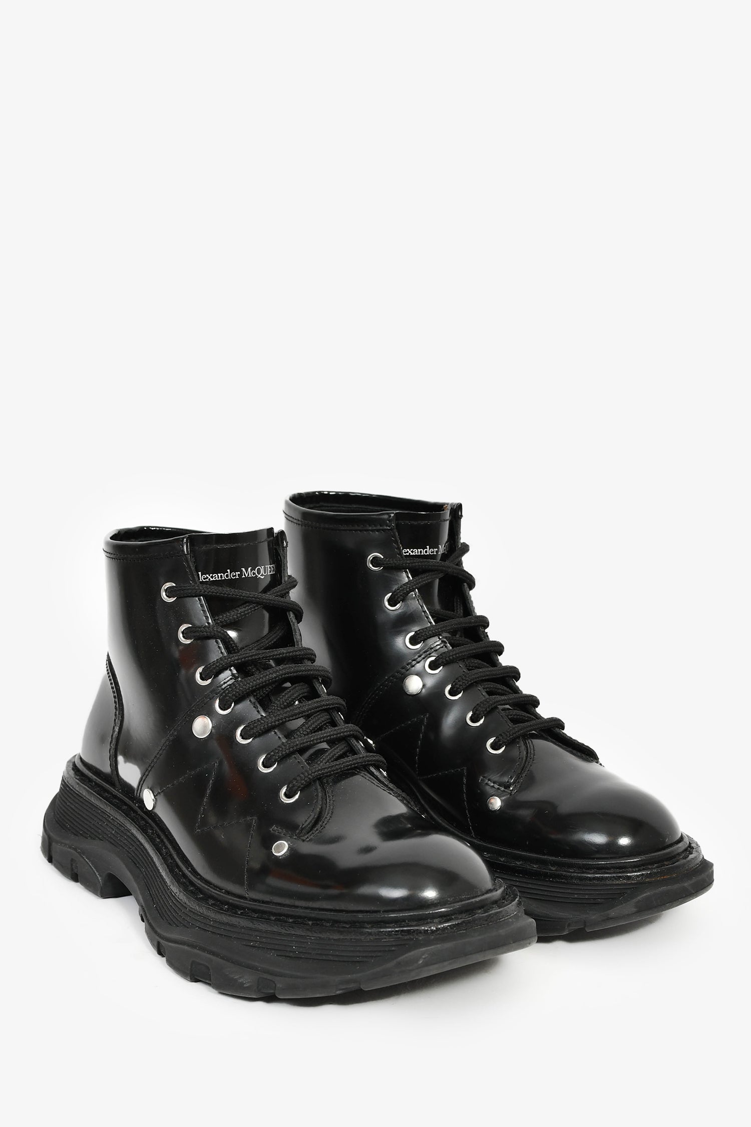 Alexander McQueen Black Rubber Combat Boots Size 36