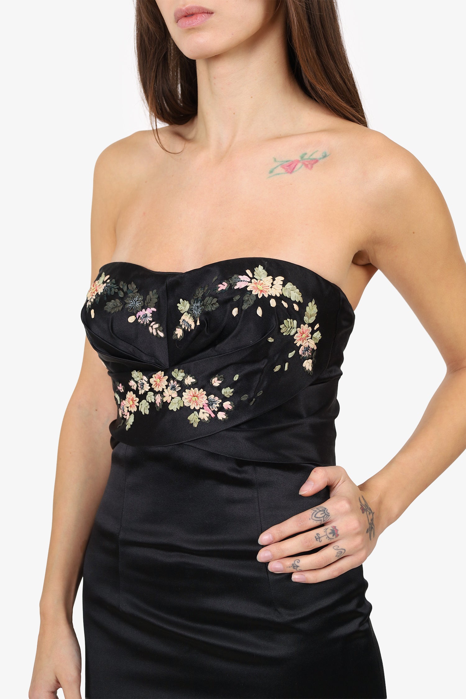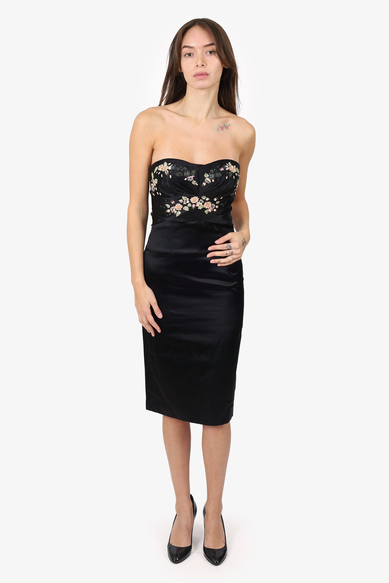 Refresh availabilityAlexander McQueen Black Silk Floral Embroidered Bustier Sleeveless Dress. Slip-on. Bustier neckline. Rear zip and hook closure. Built-in boning. Lined interior. Tonal stitching.