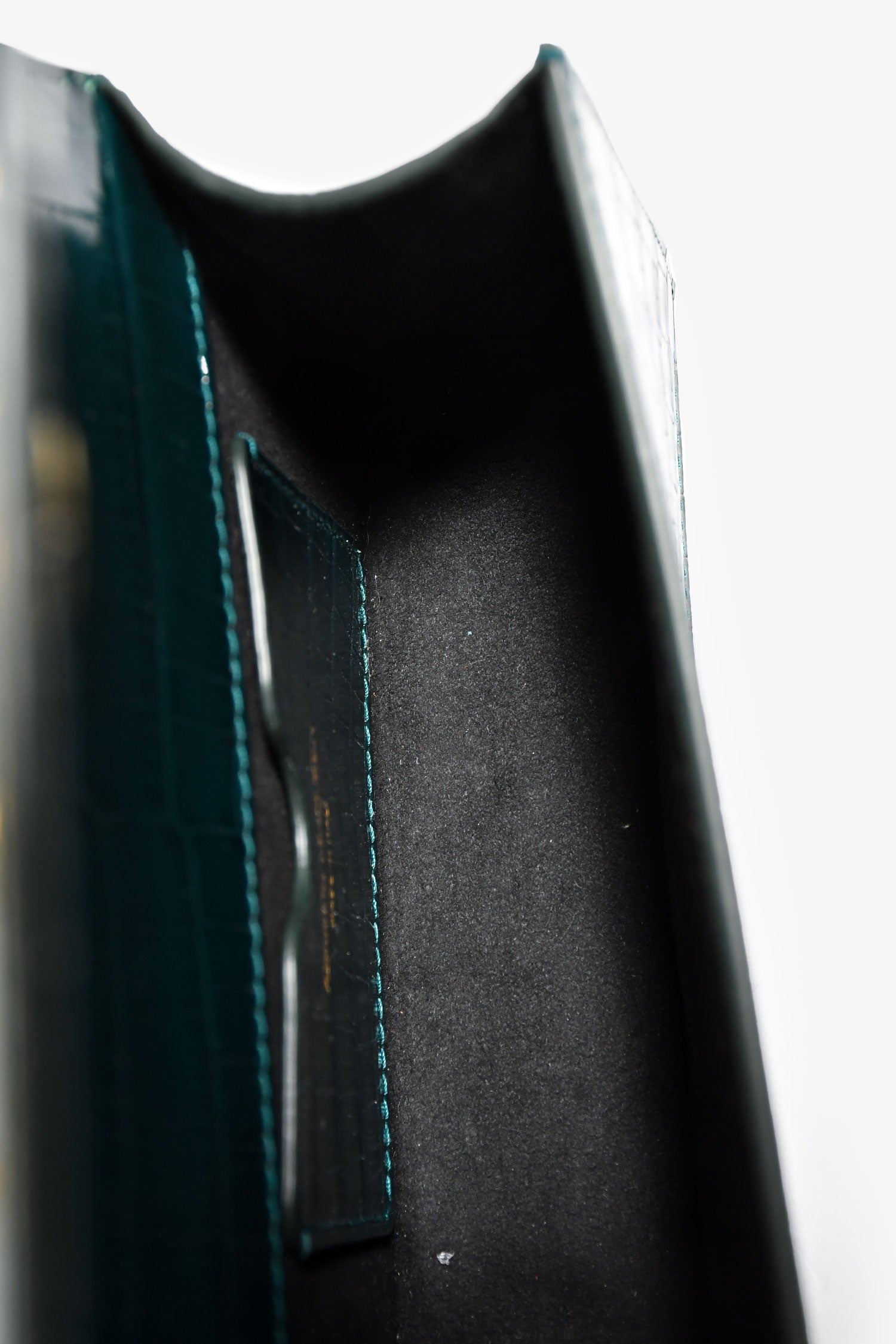 Alexander McQueen Green Croc Embossed Knuckle Shoulder Bag