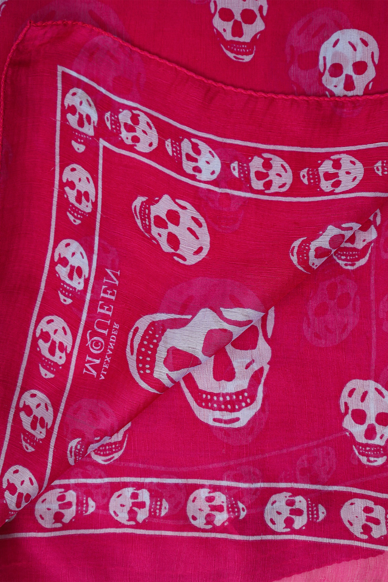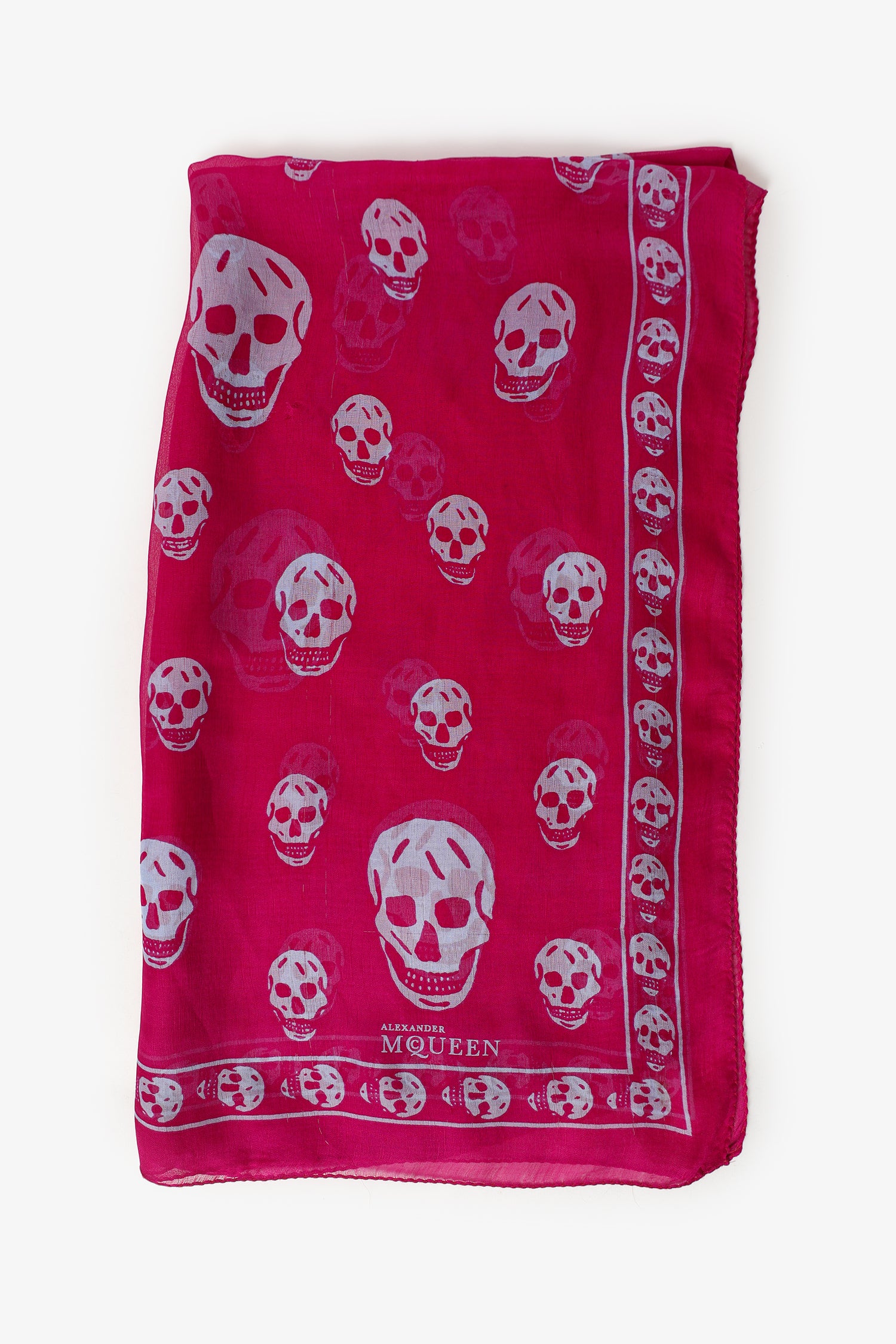 Refresh availabilityAlexander McQueen Pink Skull Printed Scarf. Tonal stitching.