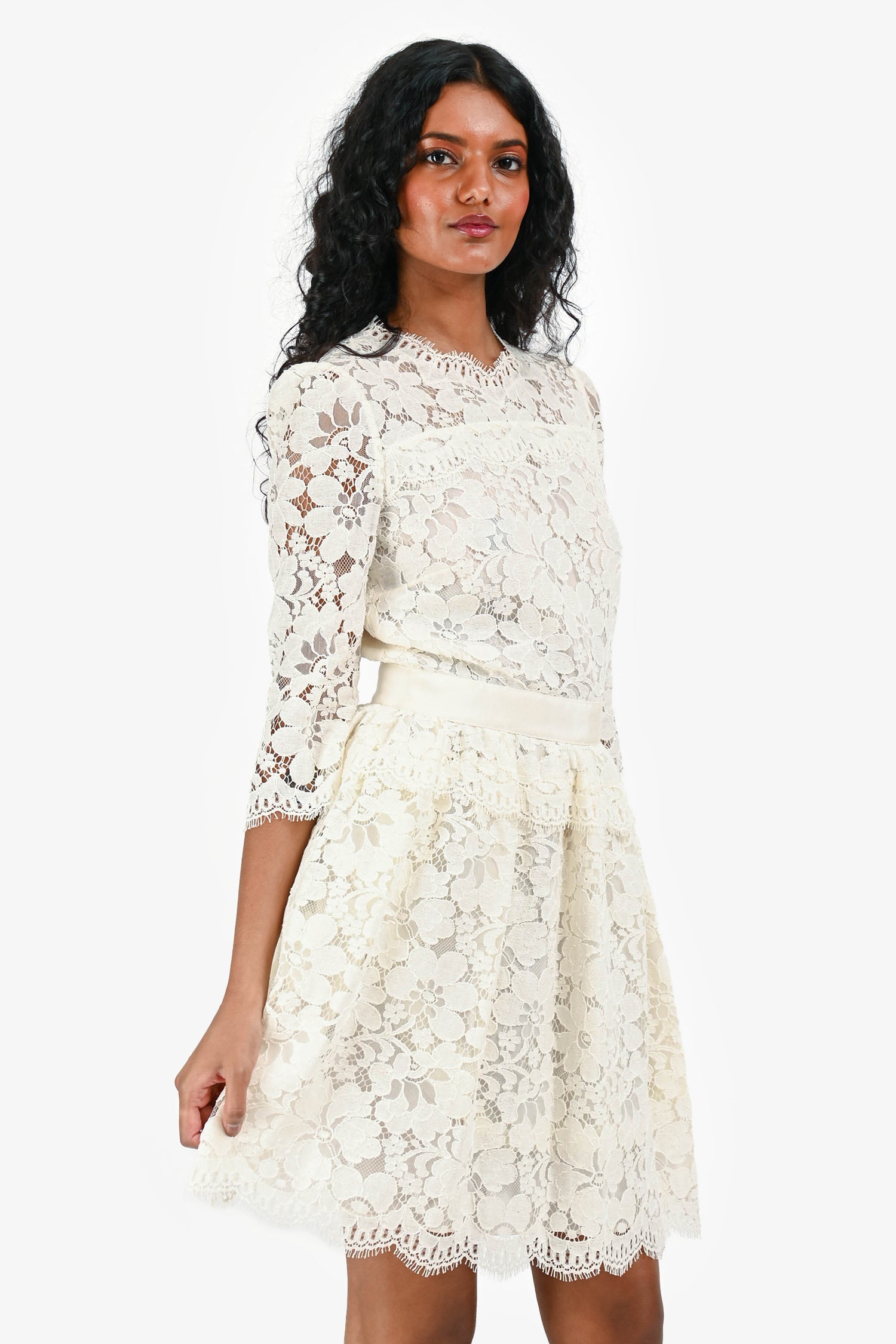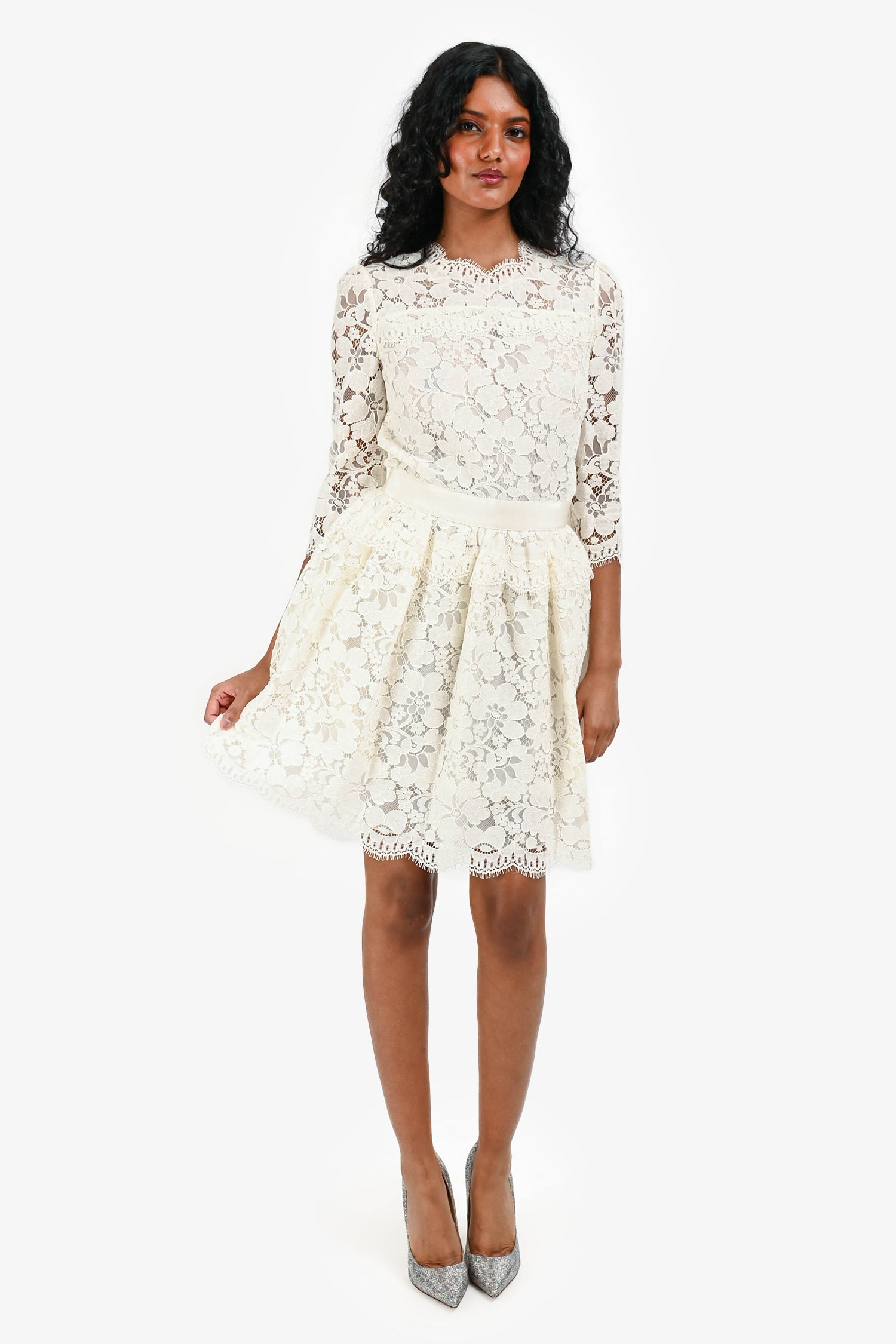 Refresh availabilityAlexander McQueen White Lace A-Line Dress. Grosgrain waistband. Concealed zipper. Lace-overlay. Long sleeves. Tonal stitching.