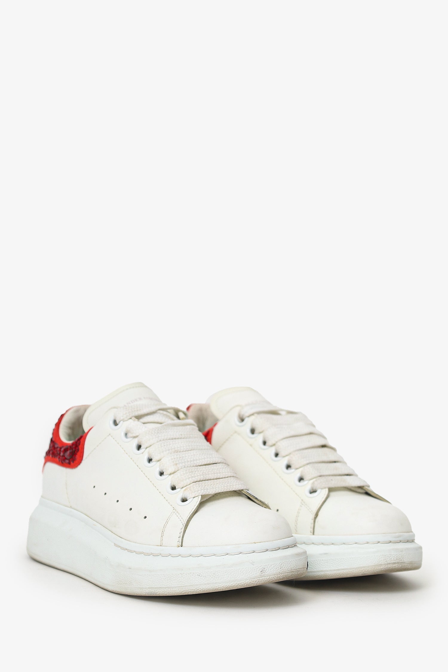Alexander McQueen White/Red Crystal Embellished Sneaker Size 36