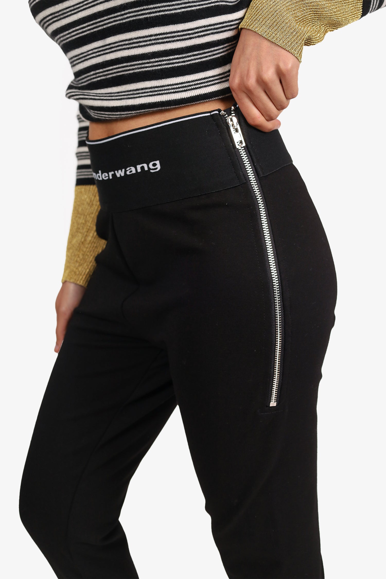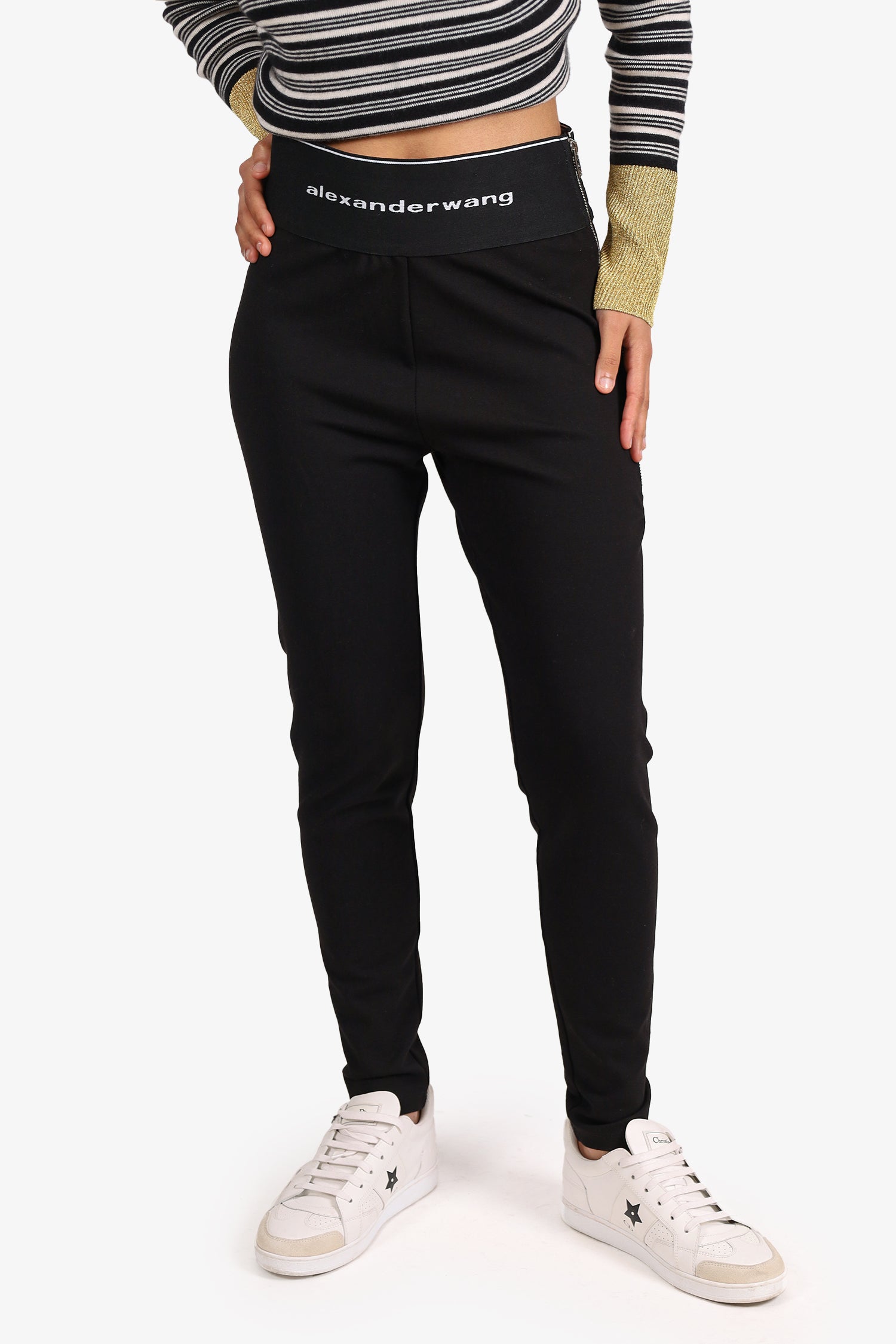 Refresh availabilityAlexander Wang Black Elastic Waist Band Leggings. Slip-on. Elasticated waistband. Side zip closure. Tonal stitching.