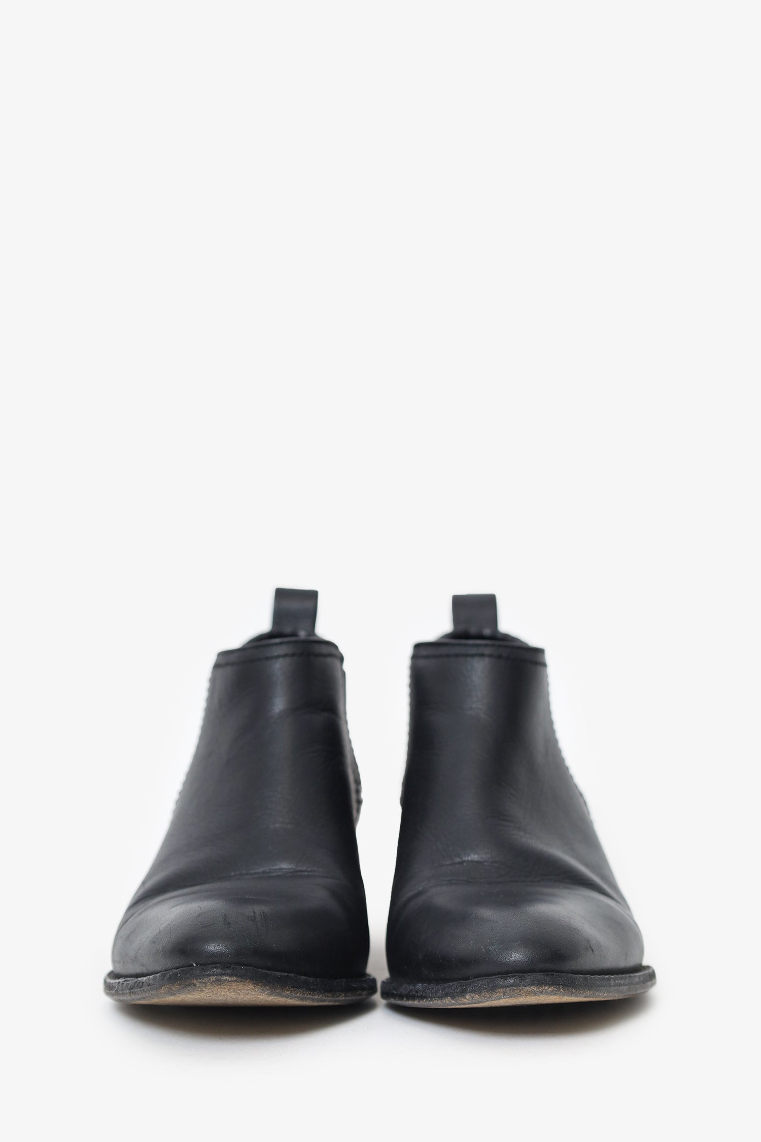 Size: 5.5 USHeel Height: 1.5" Condition: This item is in fair pre-loved condition with visible signs of wear to bottom sole. Creasing and scratches throughout exterior leather.