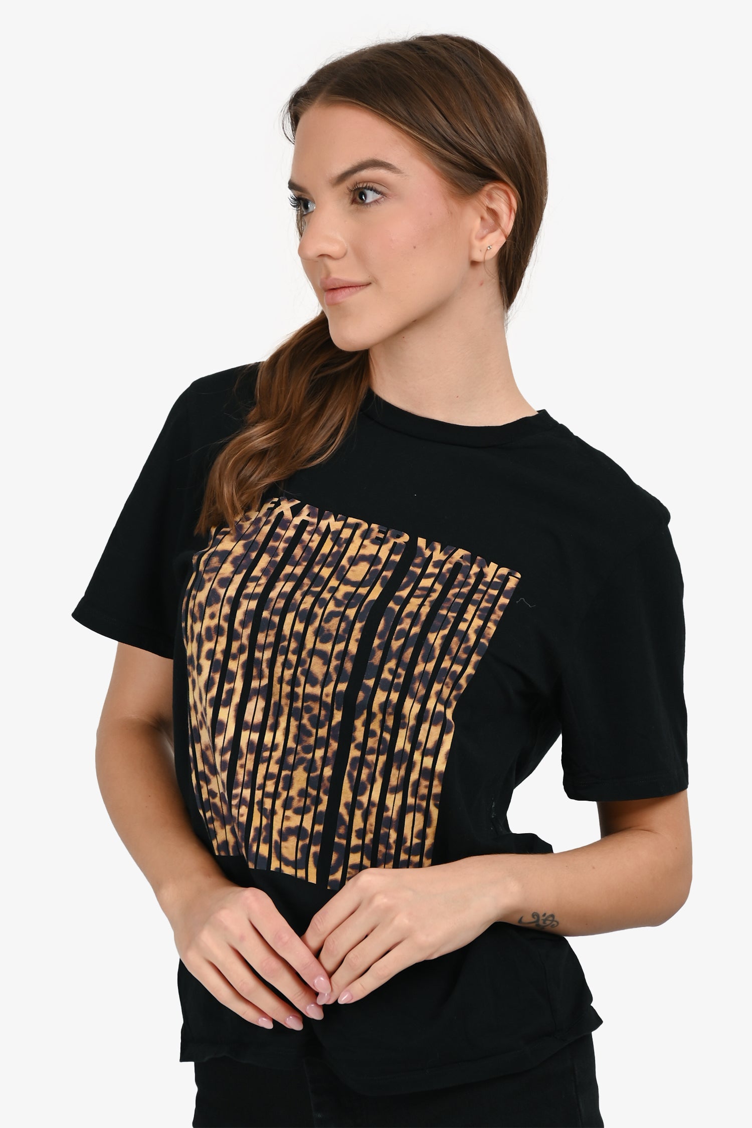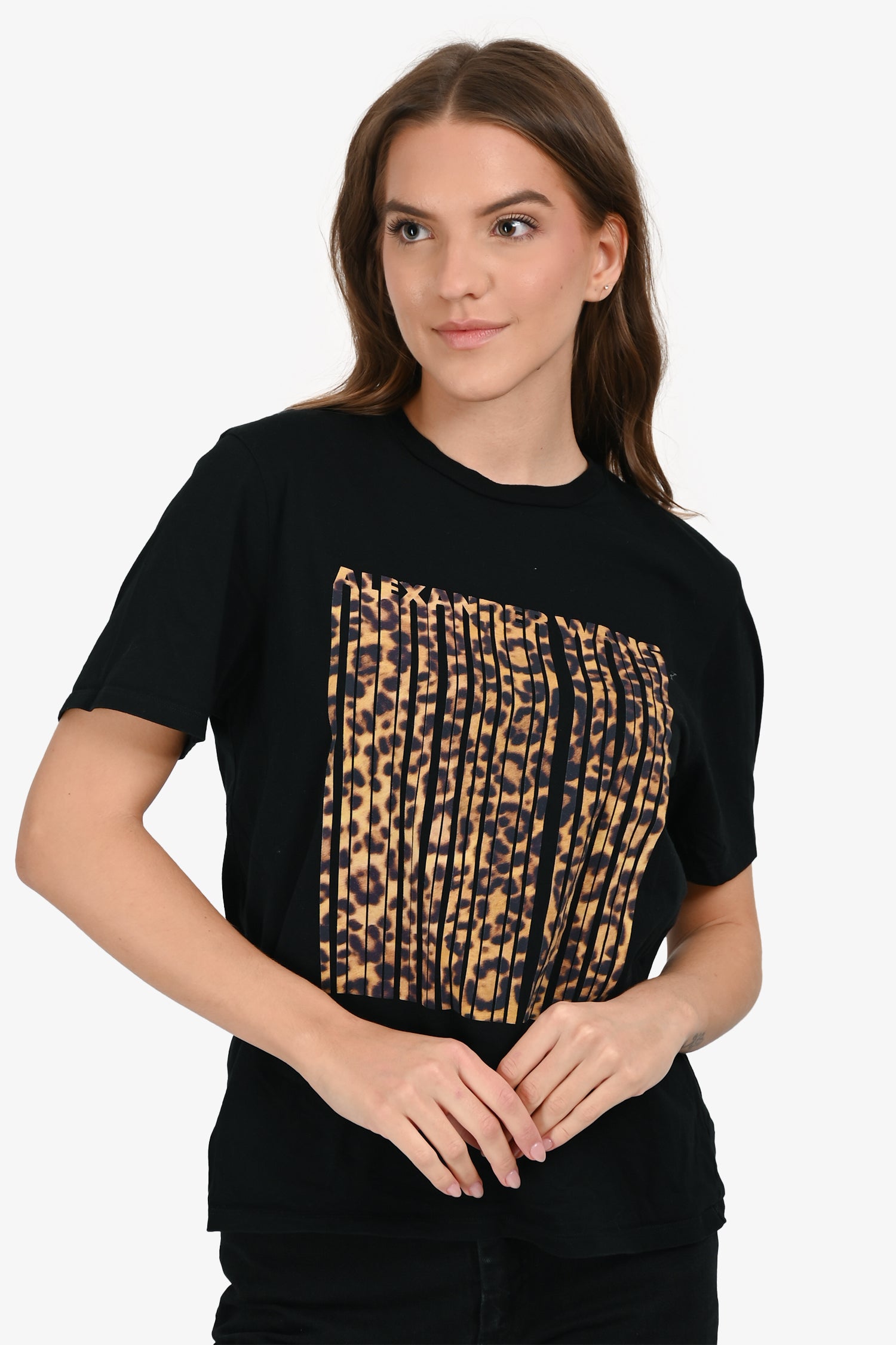 Alexander Wang Black Leopard Print Logo Short Sleeve T-Shirt Size S