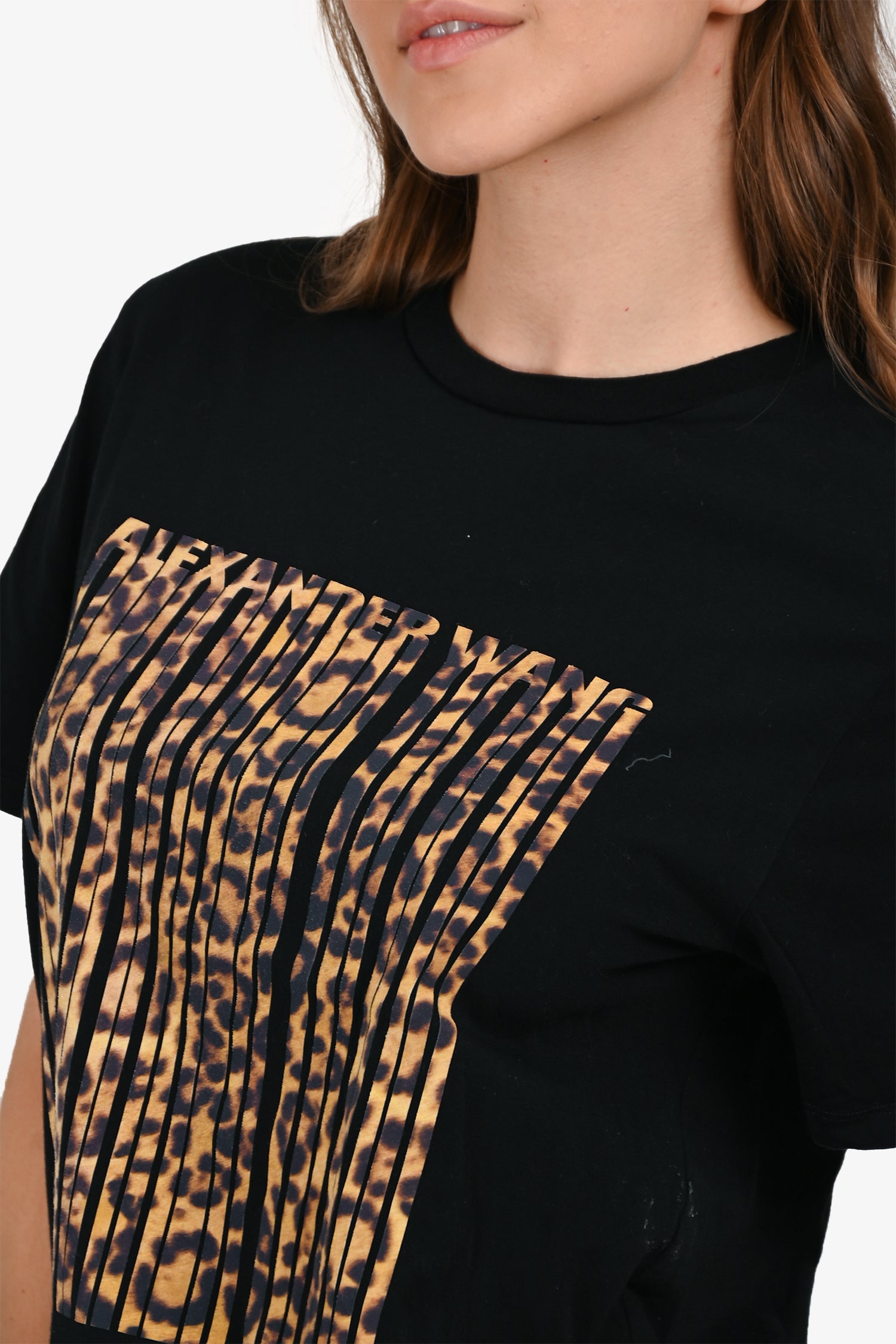 Refresh availabilityAlexander Wang Black Leopard Print Logo T-Shirt. Pull-on. Round neckline. Tonal stitching.