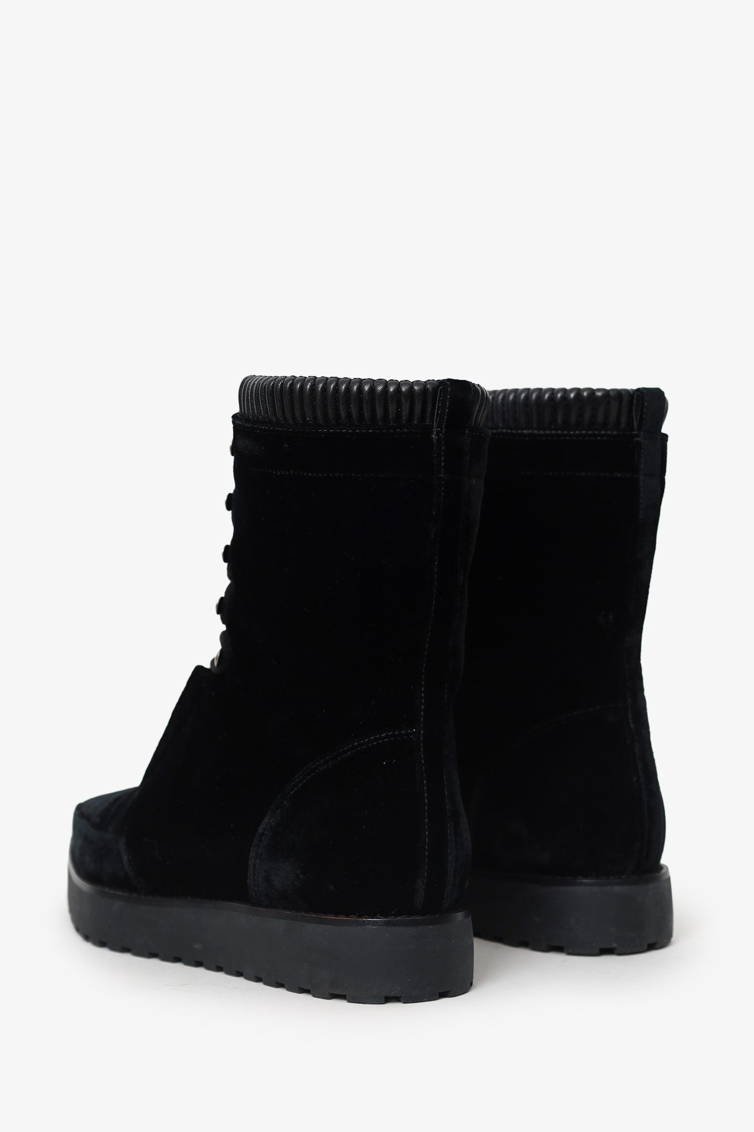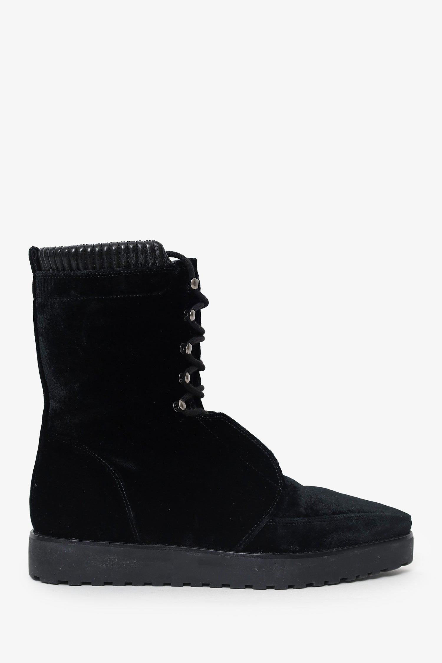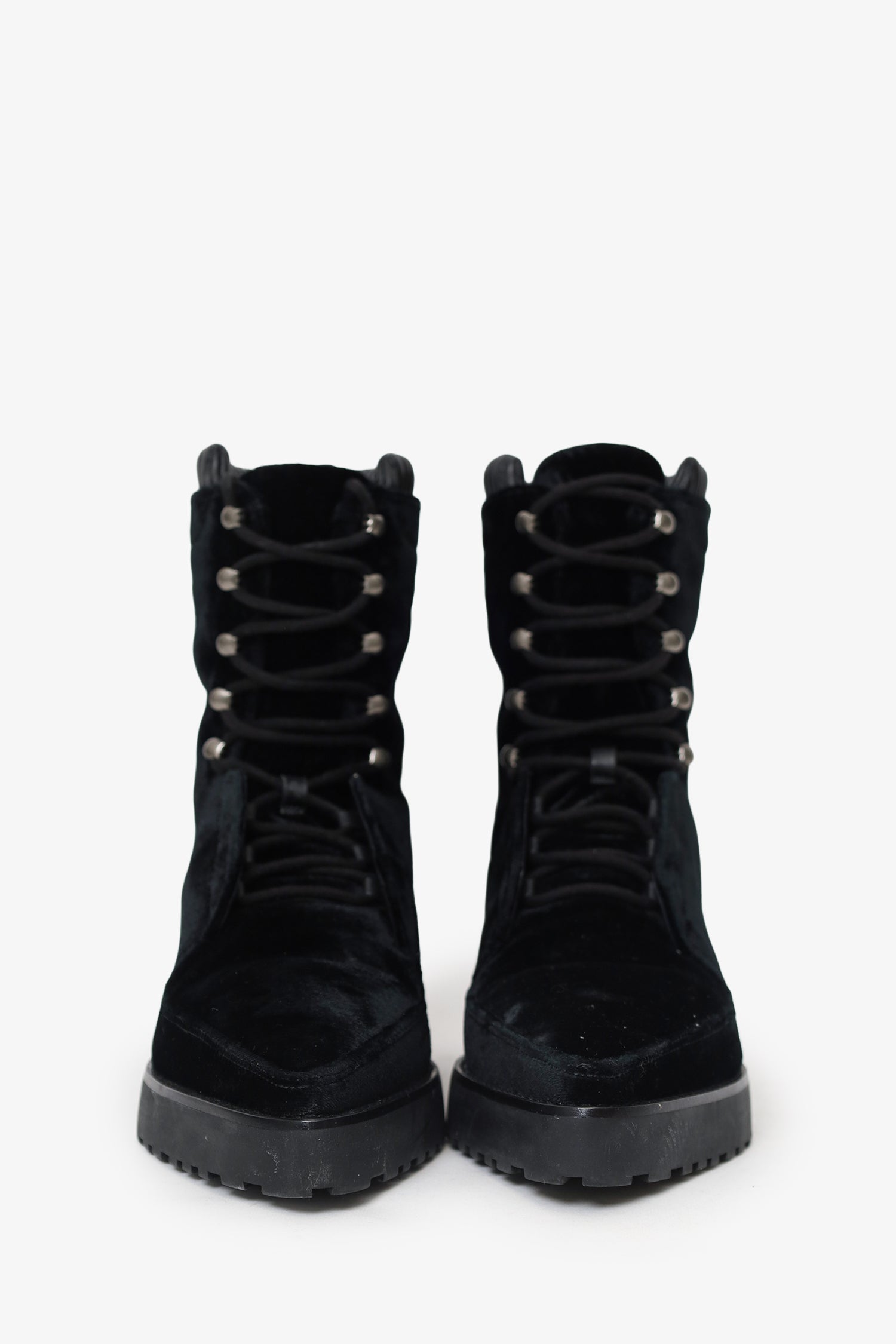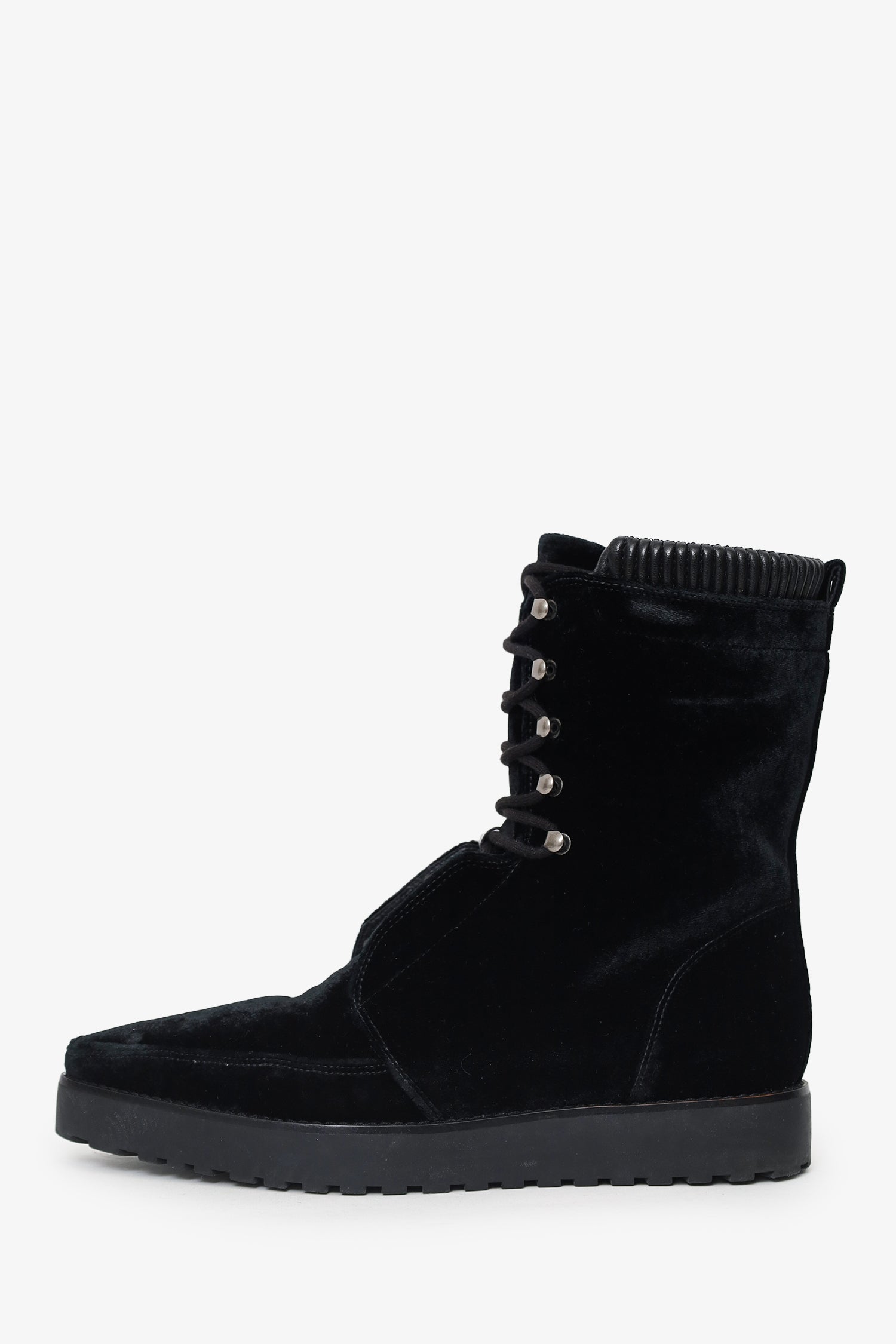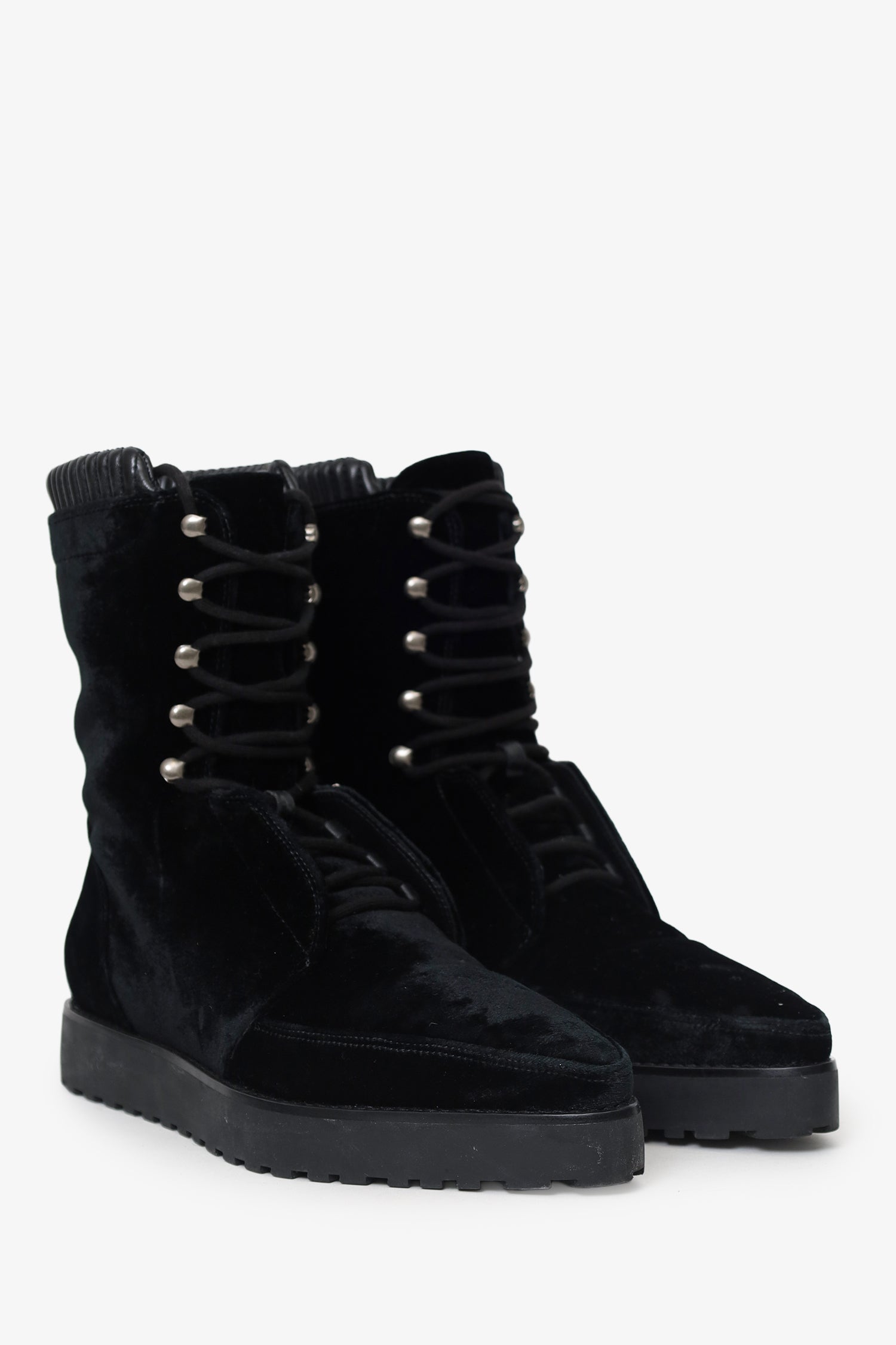 Refresh availabilityAlexander Wang Black Velvet Pointed Boots. Pull-on. Pointed toe. Front lace-up closure. Silver-tone hardware. Tonal stitching.