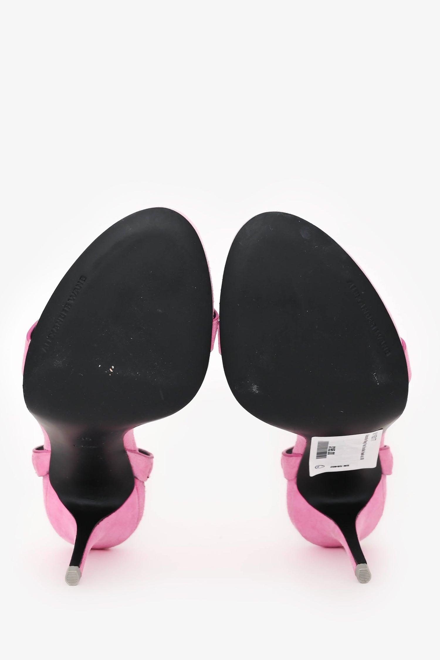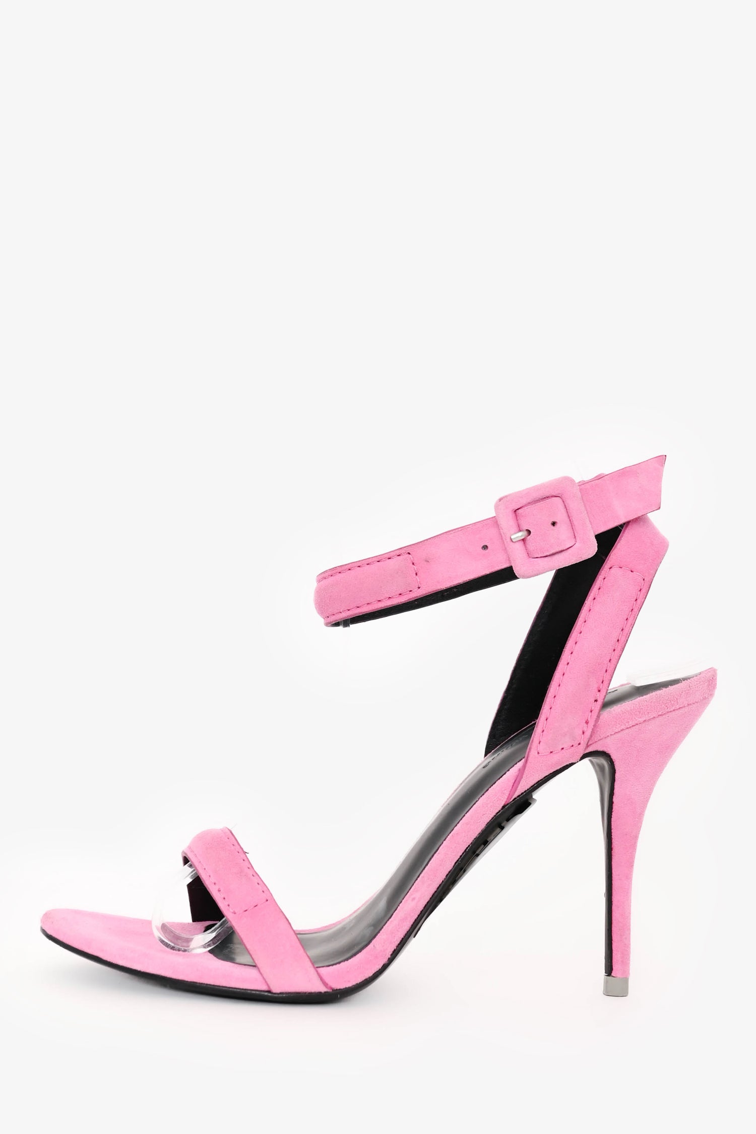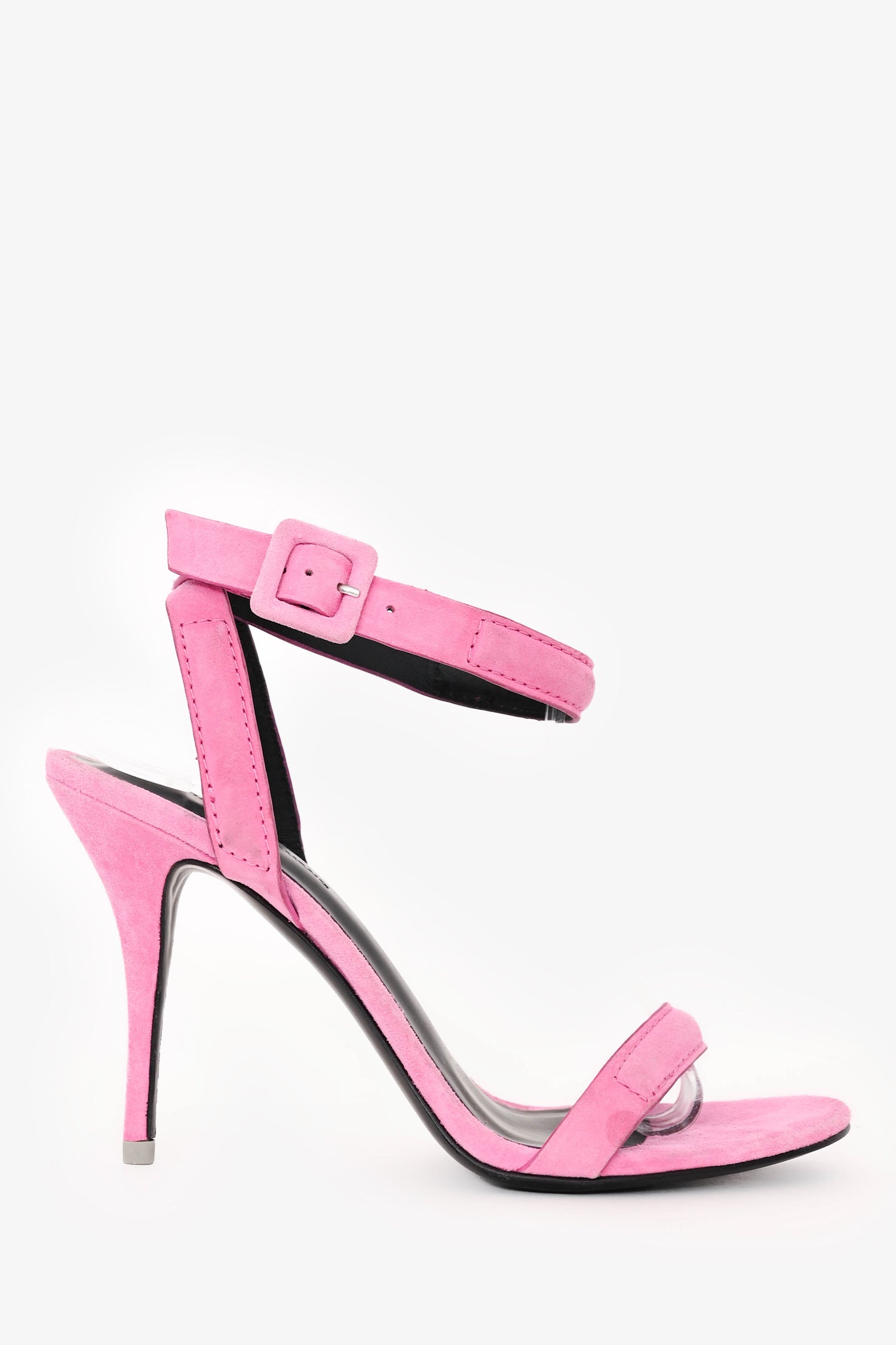Refresh availabilityAlexander Wang Pink Buckled Heels. Open toe. Adjustable buckle strap at ankle. Tonal stitching.