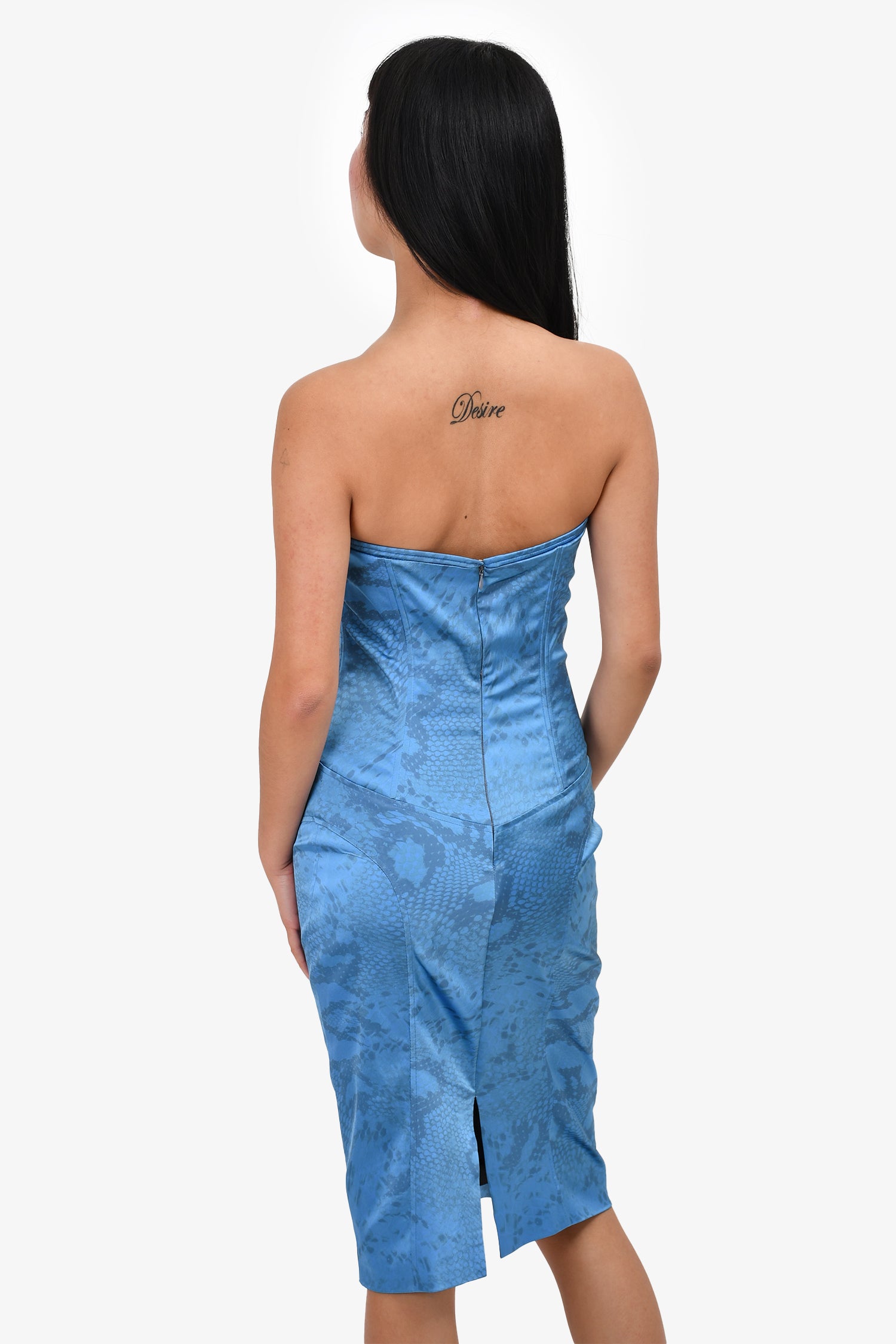 Alexis Blue Snake Printed Strapless Midi Dress Size L