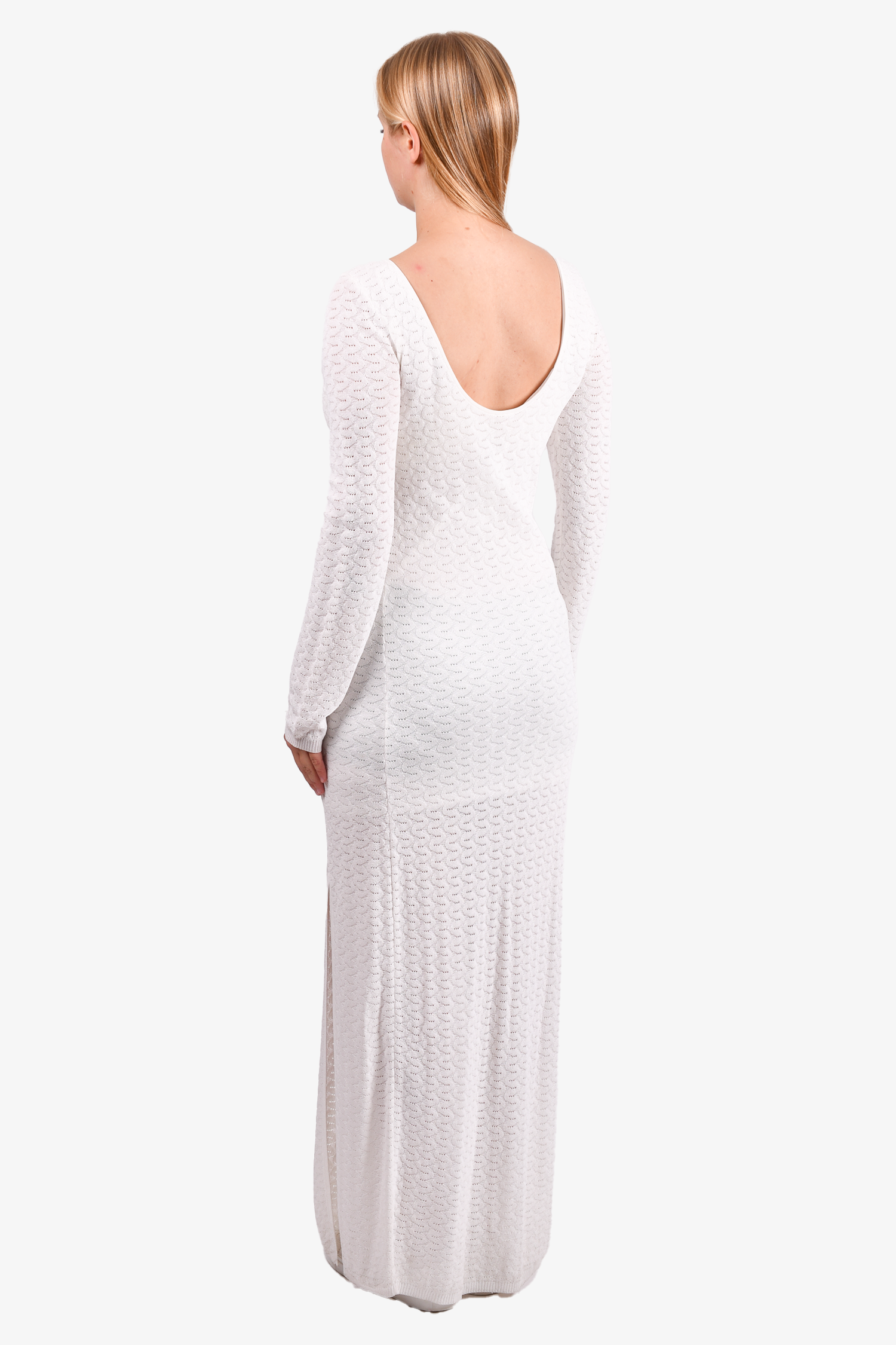 Refresh availabilityAlexis White Knit Pattered Slit Maxi Dress. Round neck. Pull-on. Lined. Tonal stitching.