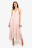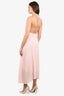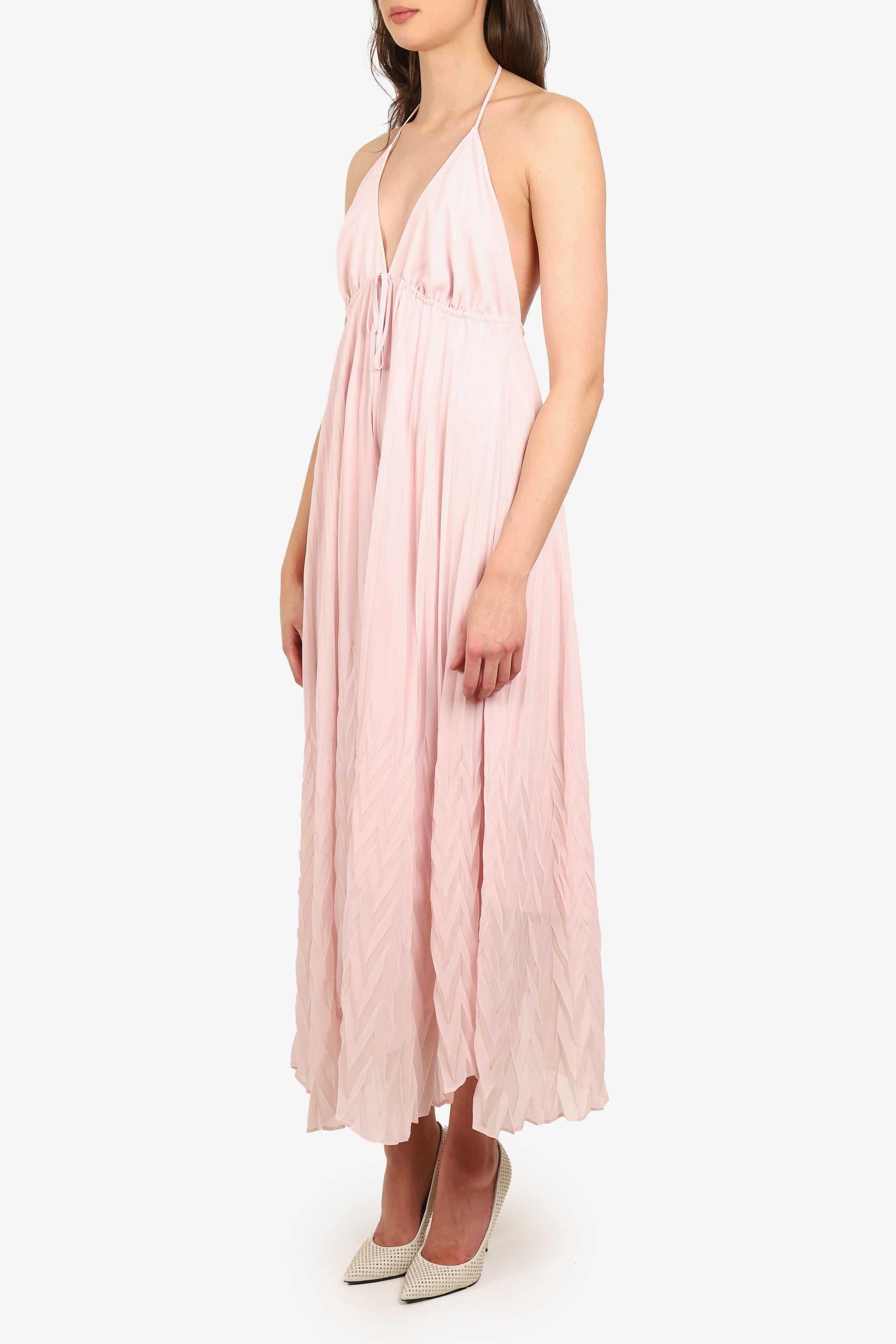 Alice + Olivia Pink Pleated Dress. Halterneck. Open back. Lined. Tonal Stitching.