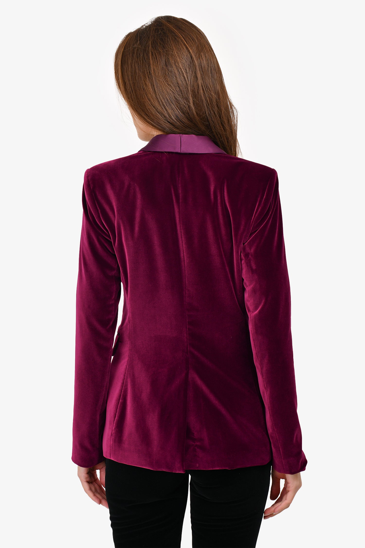 Refresh availabilityAlice + Olivia Purple Velvet Blazer With Satin Collar. Shoulder pads. One front button closure. Tonal stitching.