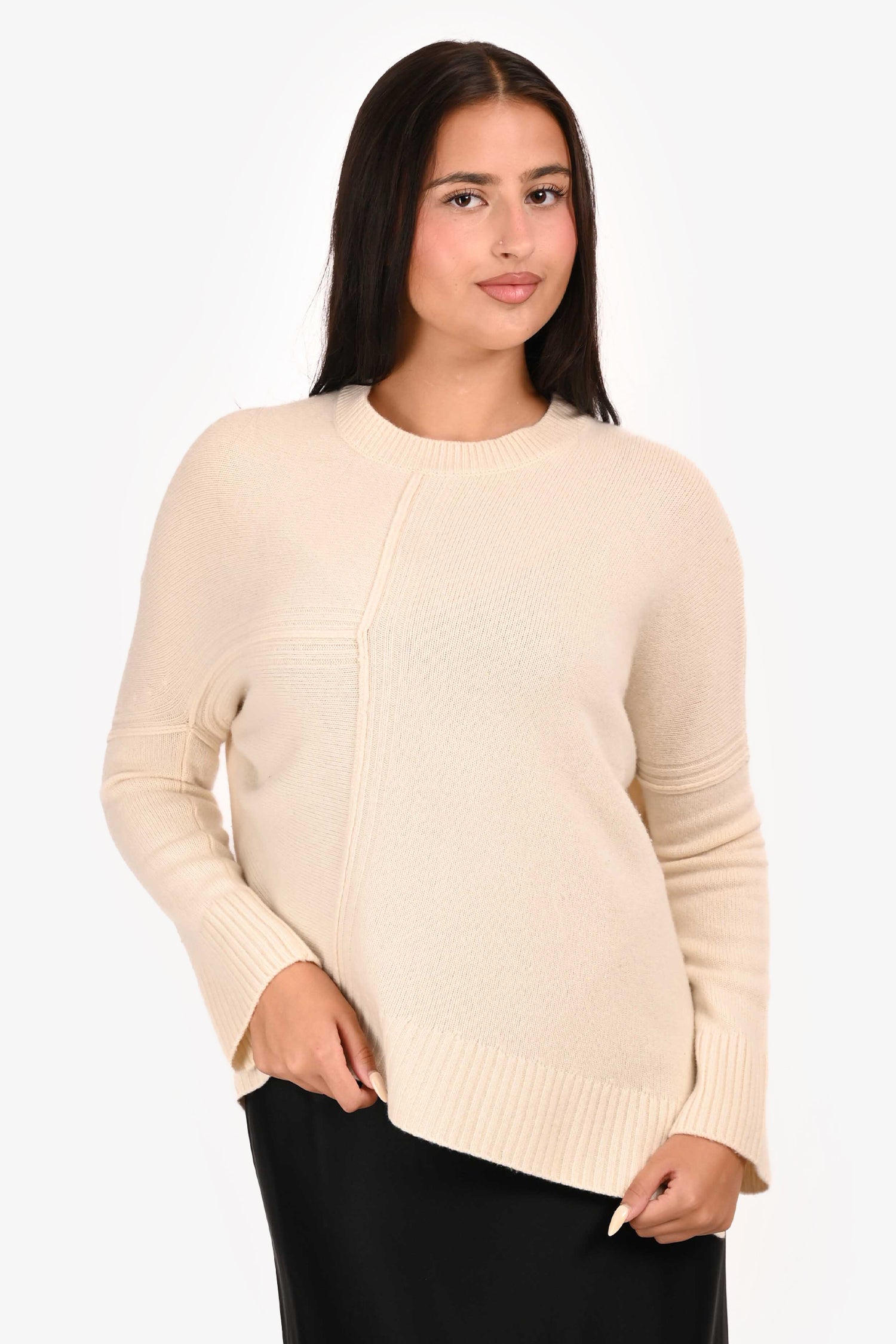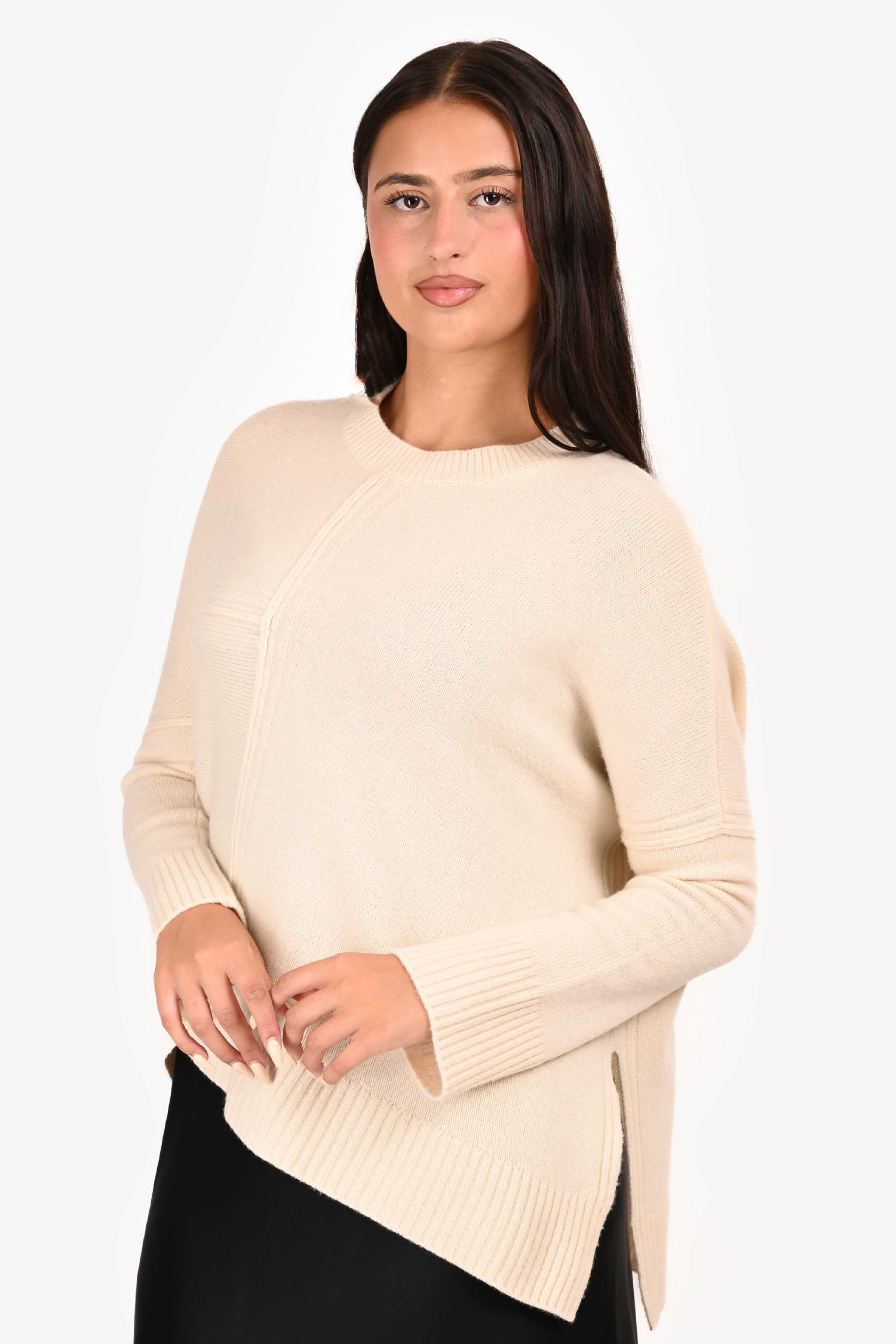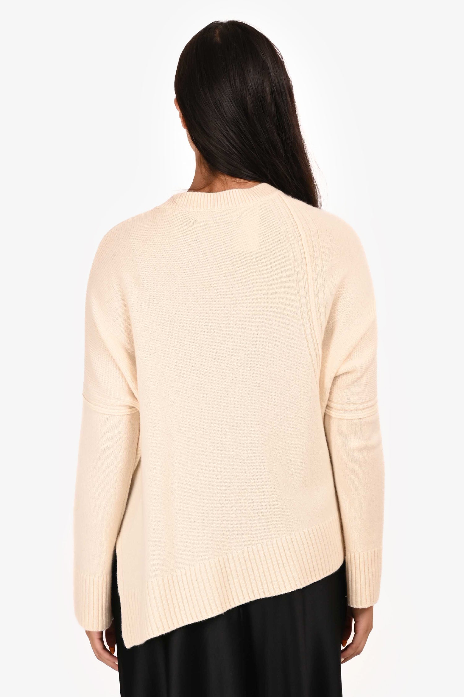Refresh availabilityAllsaints Cream Cashmere Knit Sweater. Asymmetrical hem detail. Side slit. Tonal stitching.