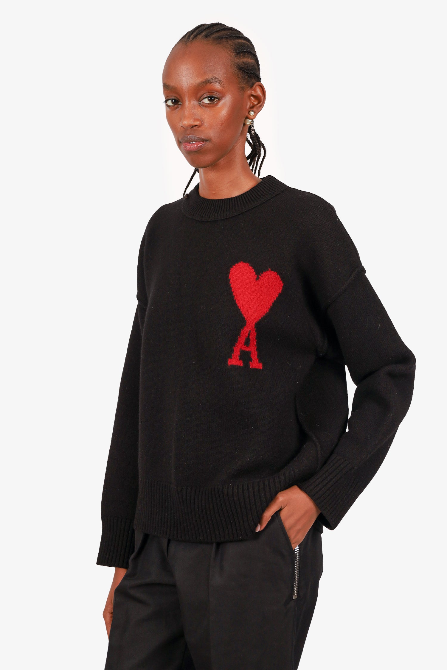 Ami Black Wool Heart Logo Sweater Size S (As Is)