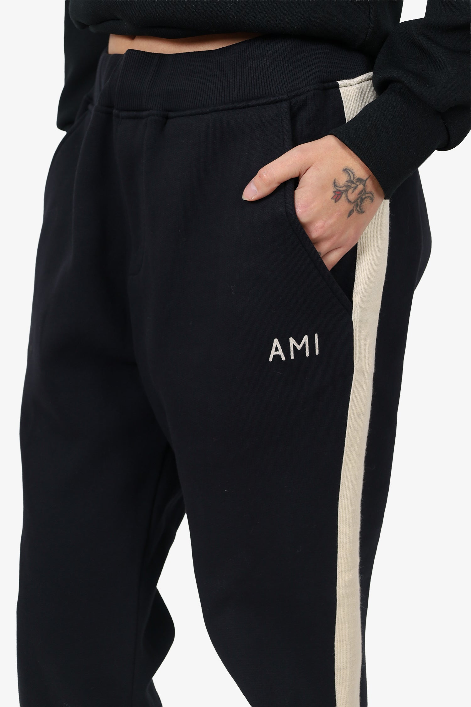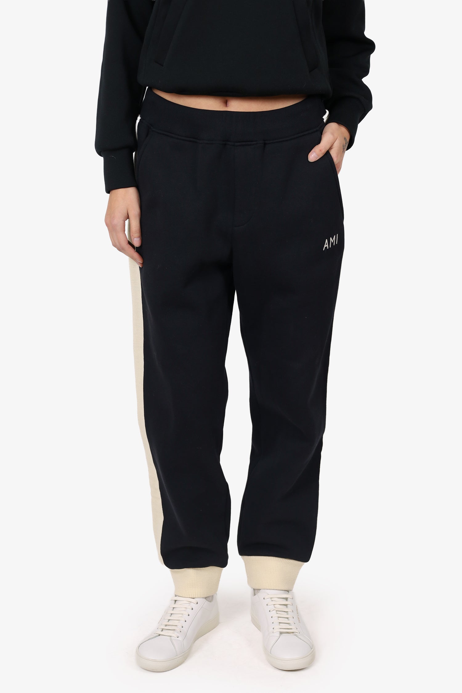 Refresh availabilityAmi Black/Cream Joggers. Slip-on. Elasticated waistband with drawstring closure. 2 exterior side slip pocket. Tonal stitching.